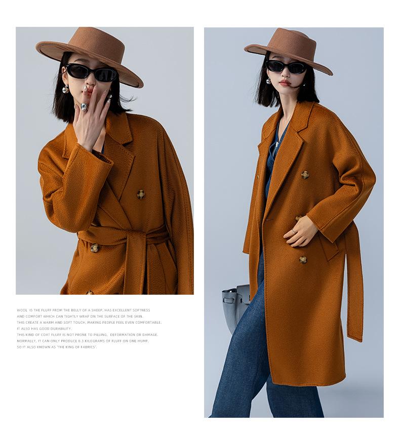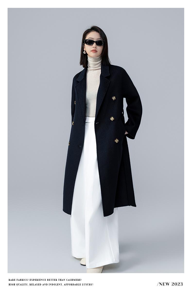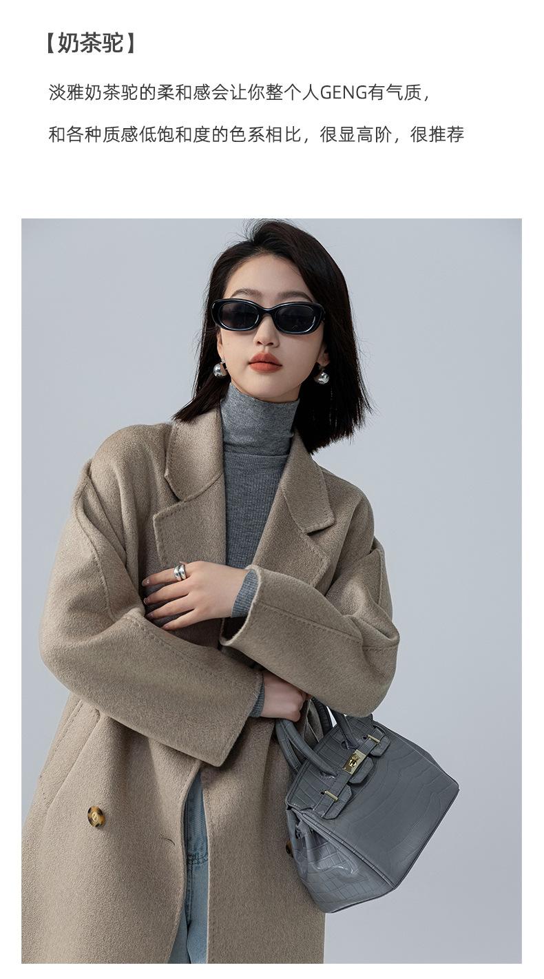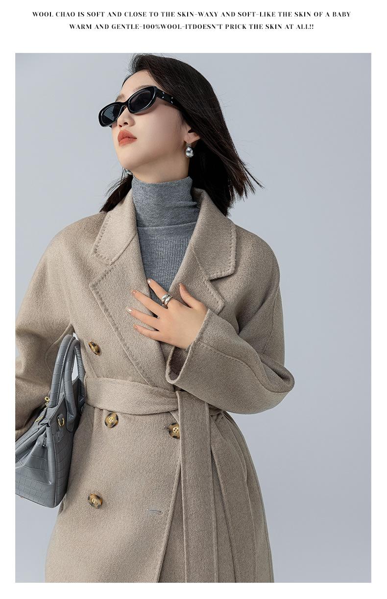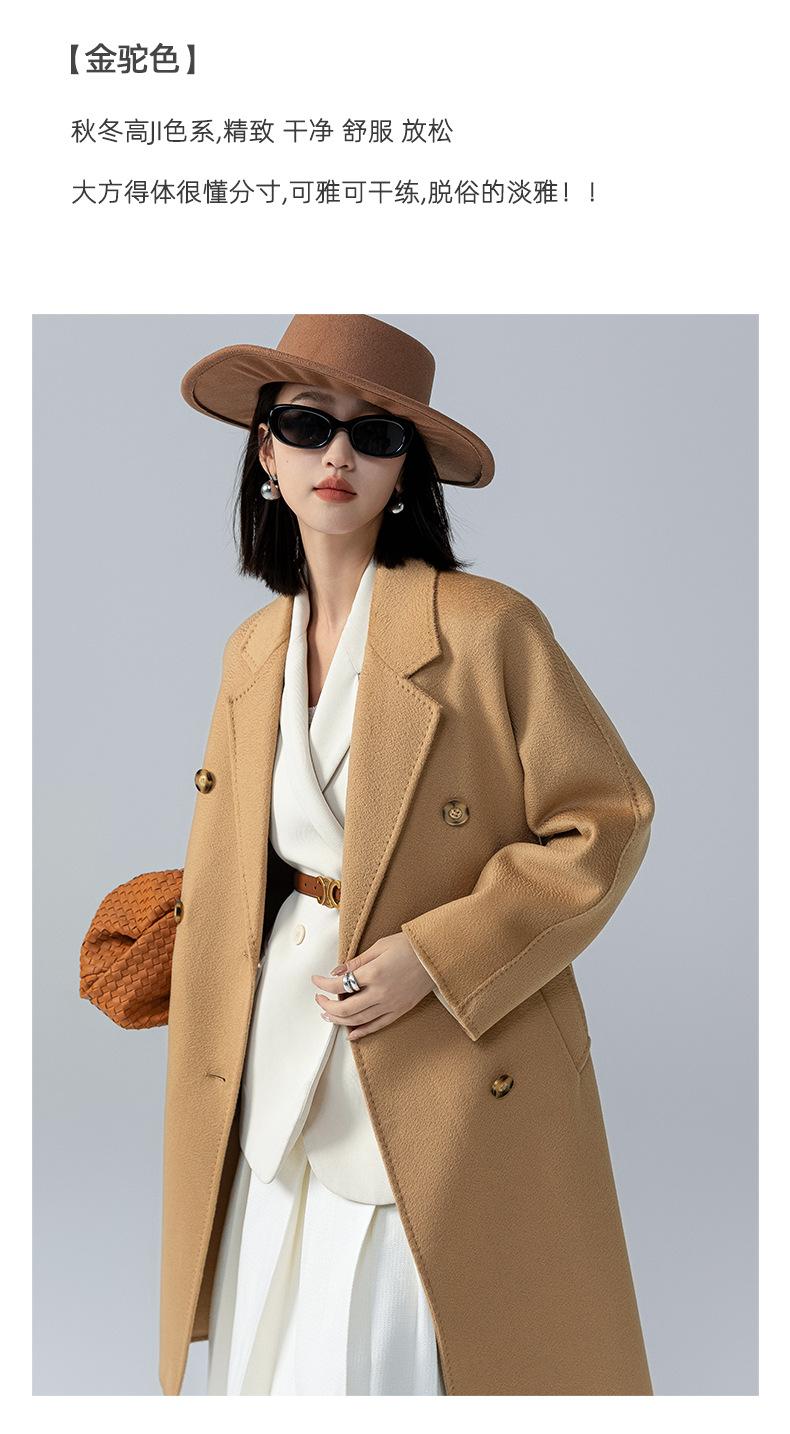 24 nuevos abrigos de lana de doble botonadura, gruesos y de longitud media, abrigos de cachemir con ondulación de agua de doble cara para mujer