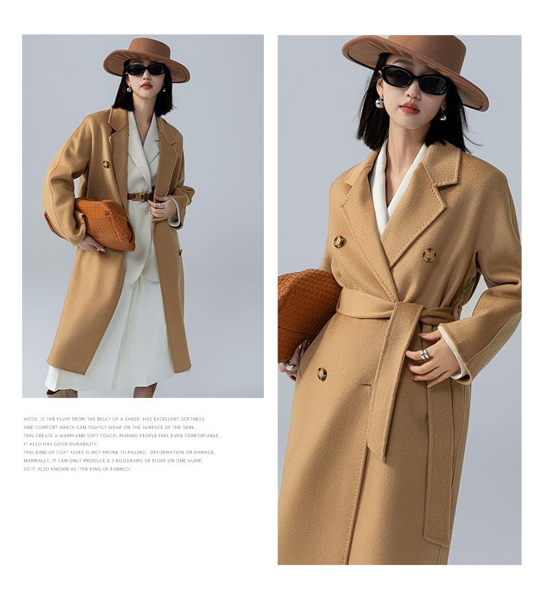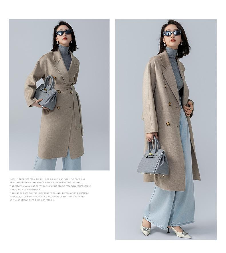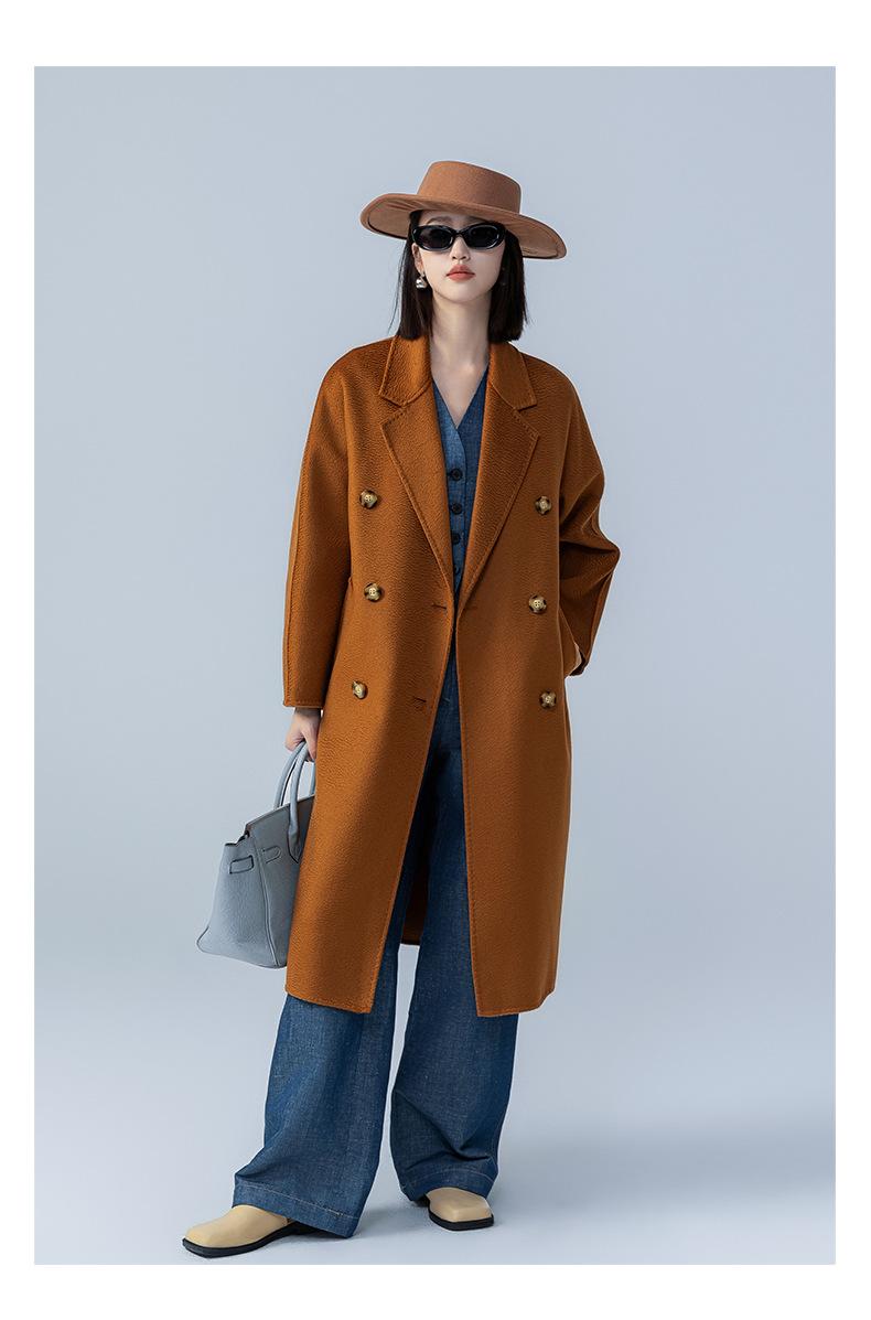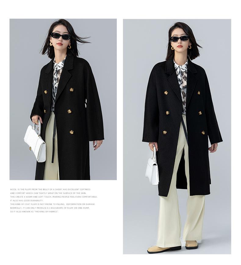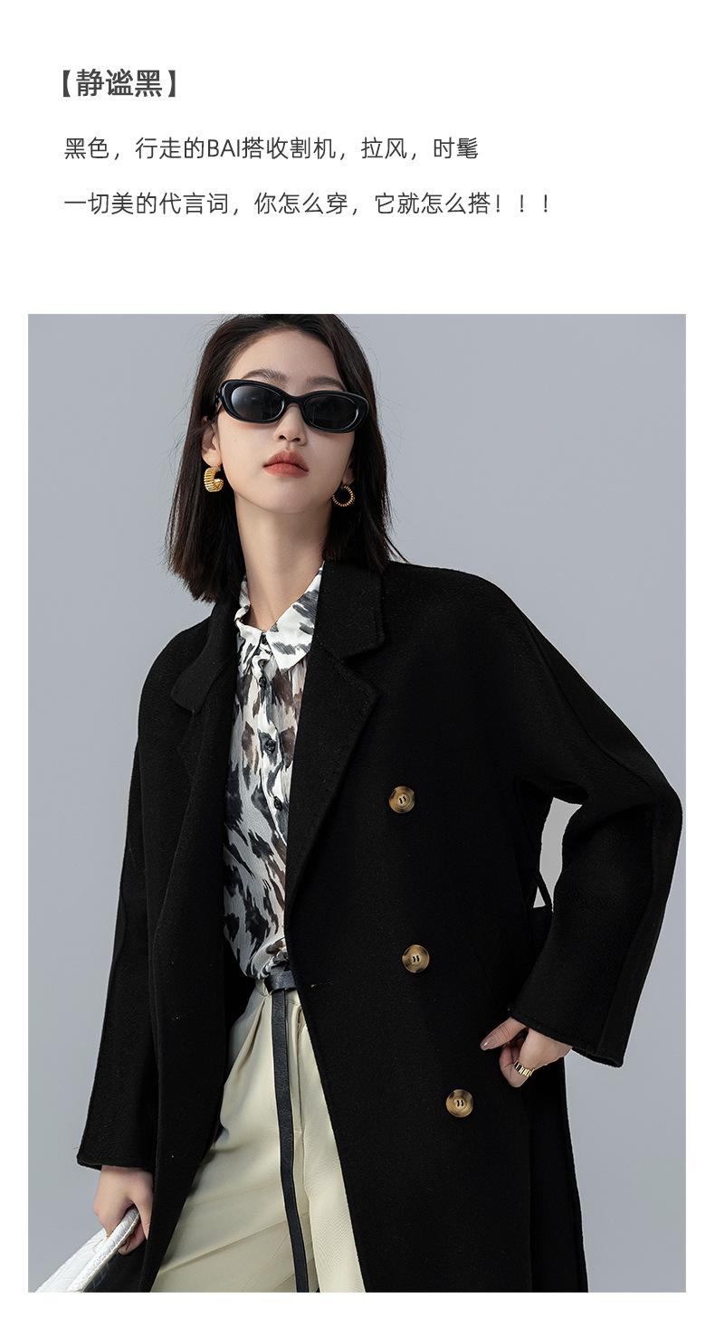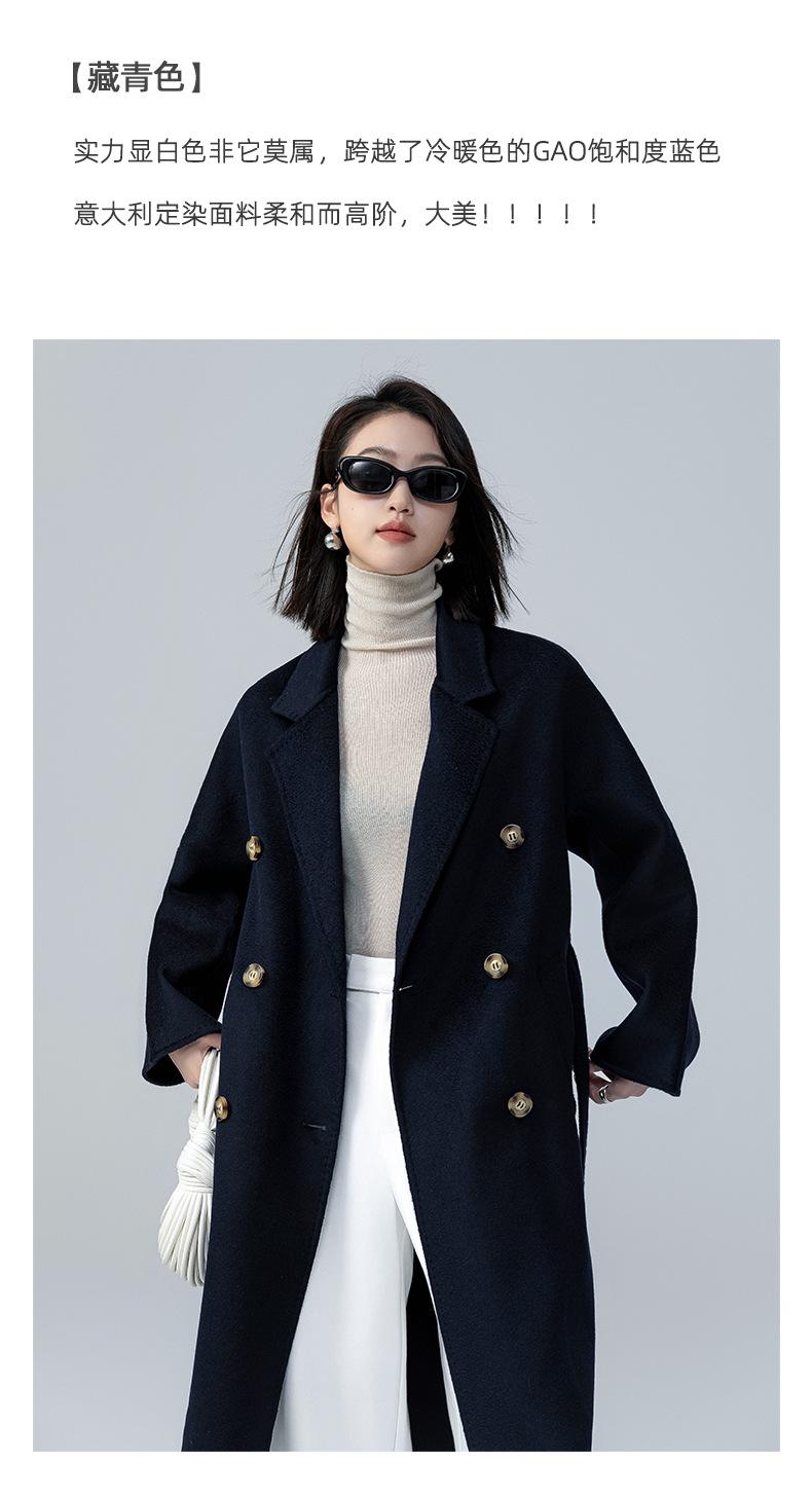 24 nuevos abrigos de lana de doble botonadura, gruesos y de longitud media, abrigos de cachemir con ondulación de agua de doble cara para mujer