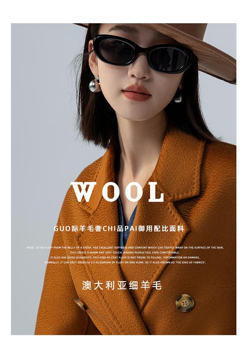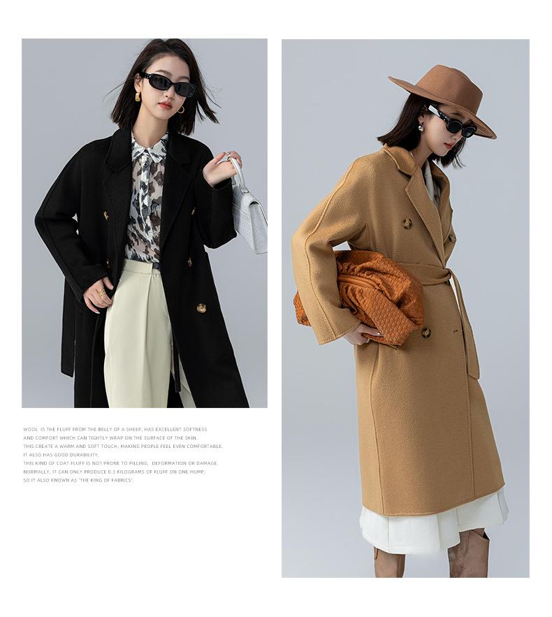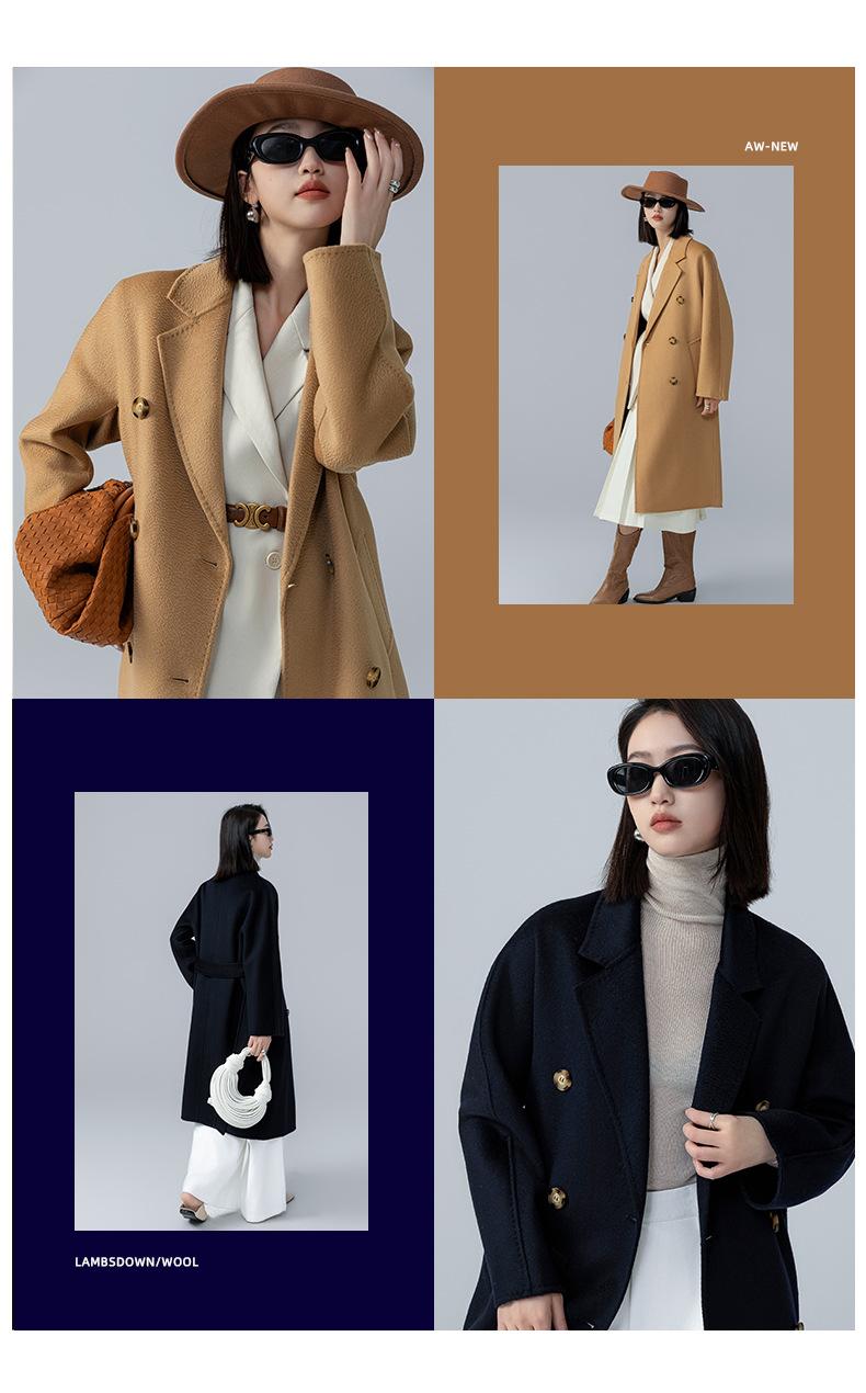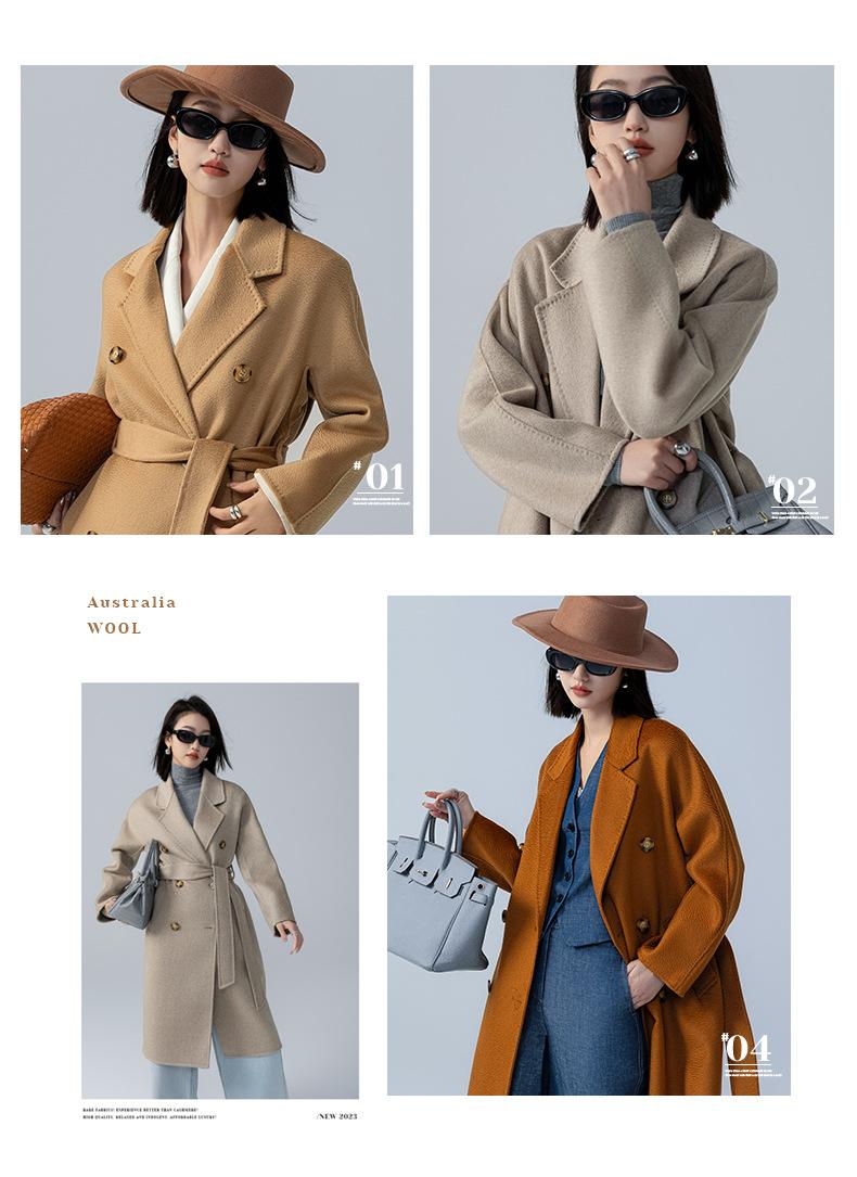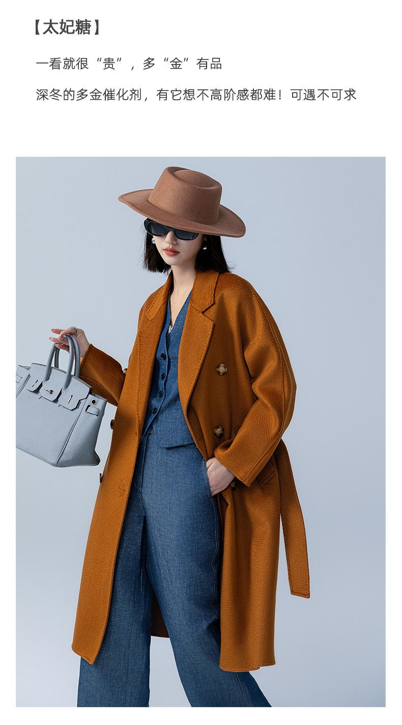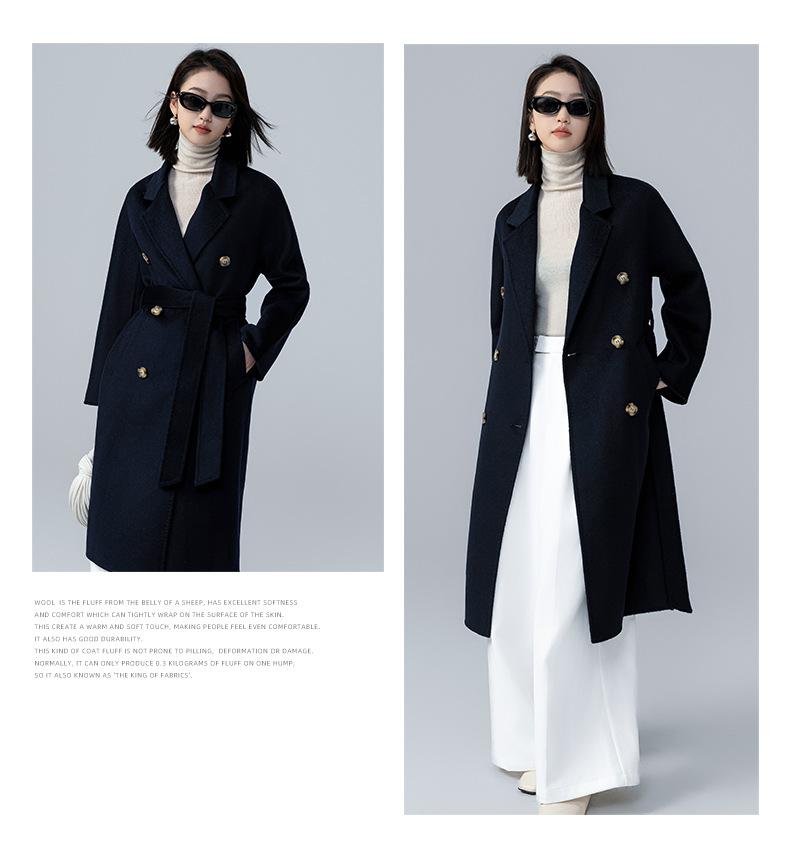 24 nuevos abrigos de lana de doble botonadura, gruesos y de longitud media, abrigos de cachemir con ondulación de agua de doble cara para mujer