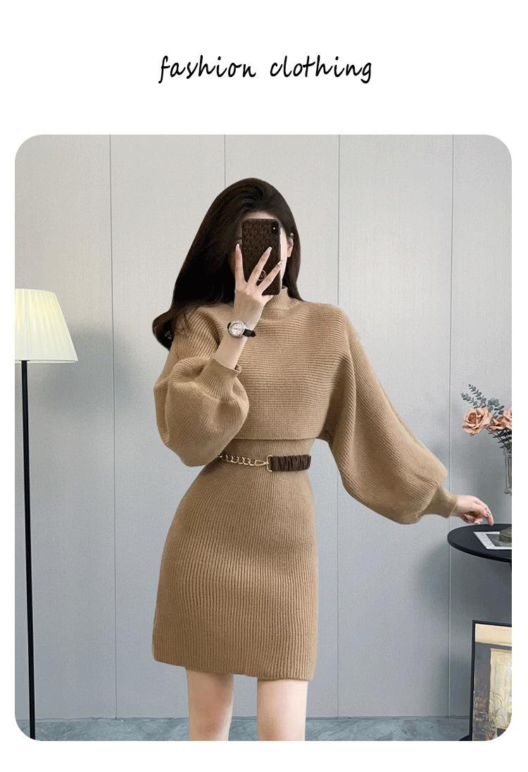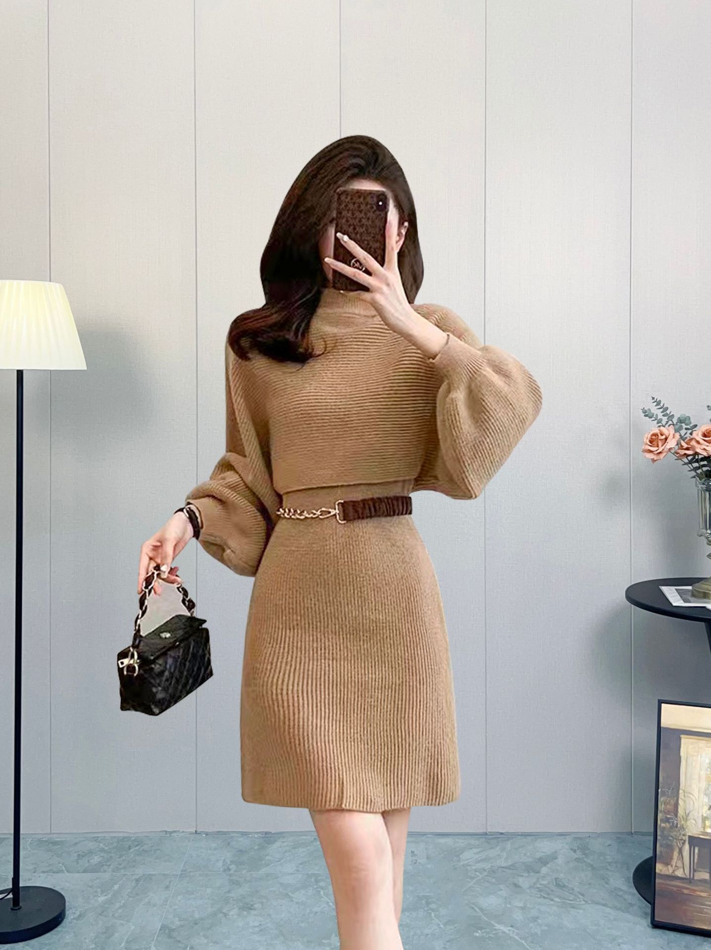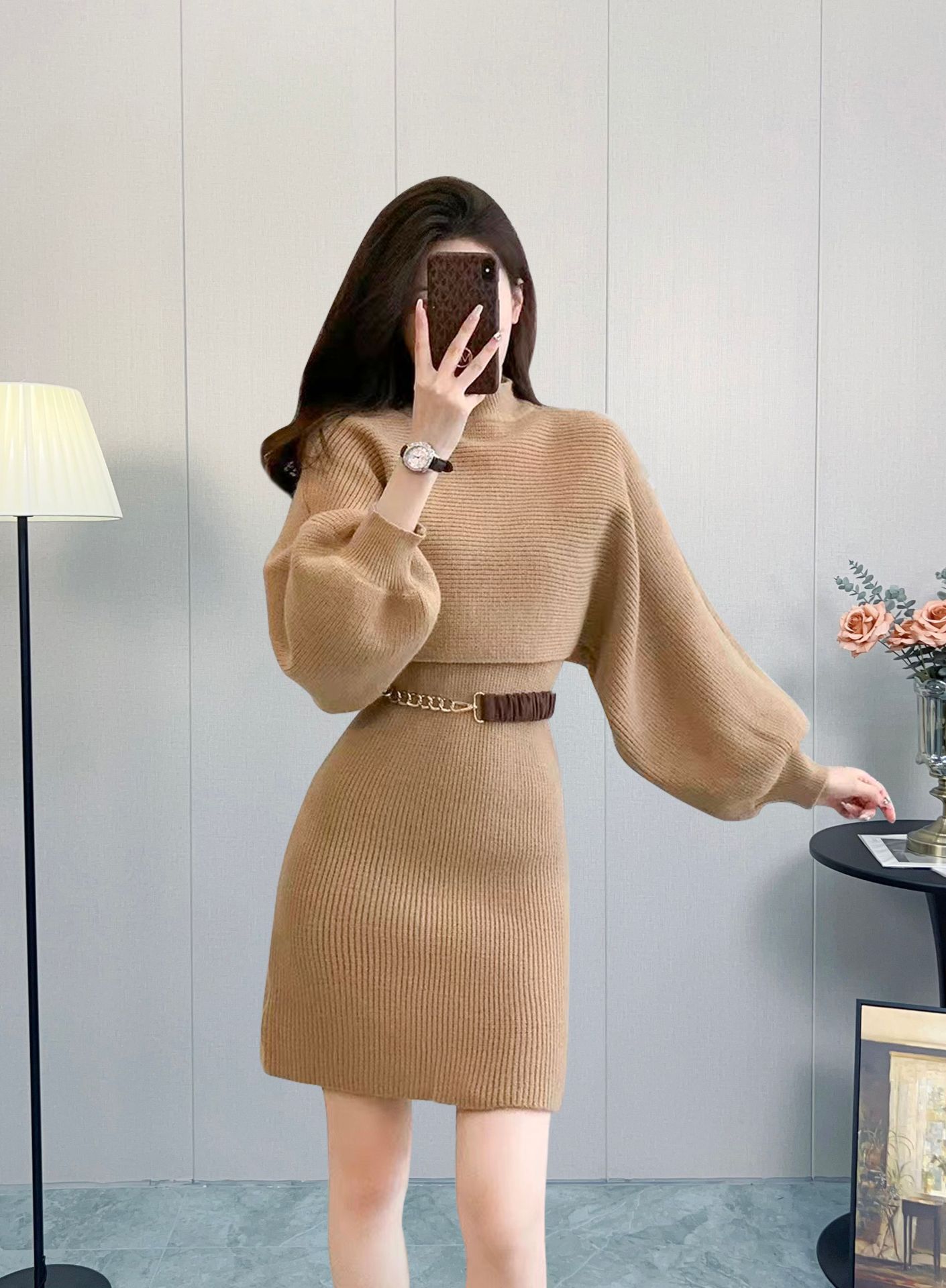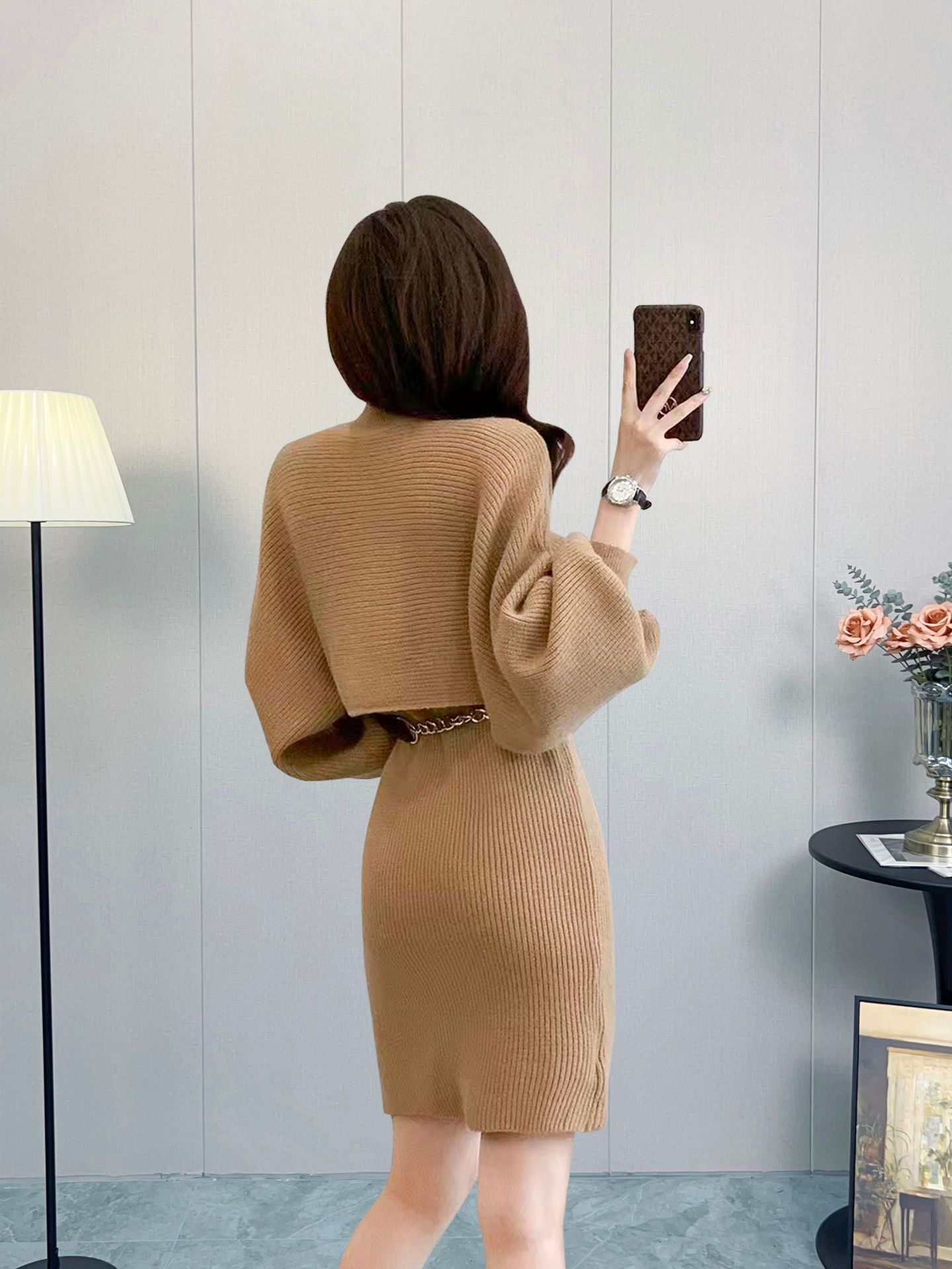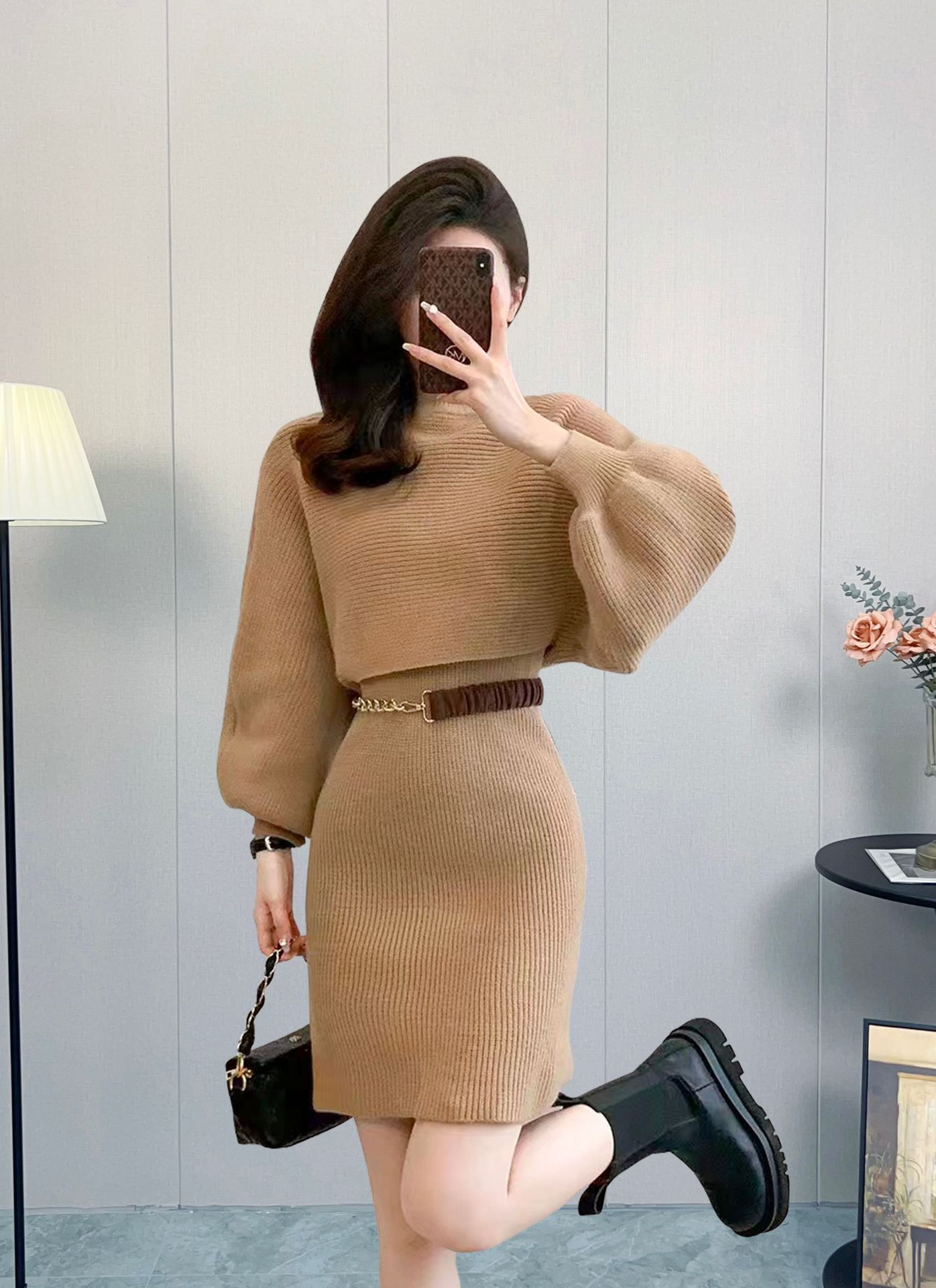 Conjunto de Dos Piezas Vestido de Punto Otoño e Invierno Diseño Sense of Design Elegante Francés Versátil Look Adelgazante Suéter y Falda