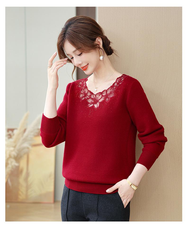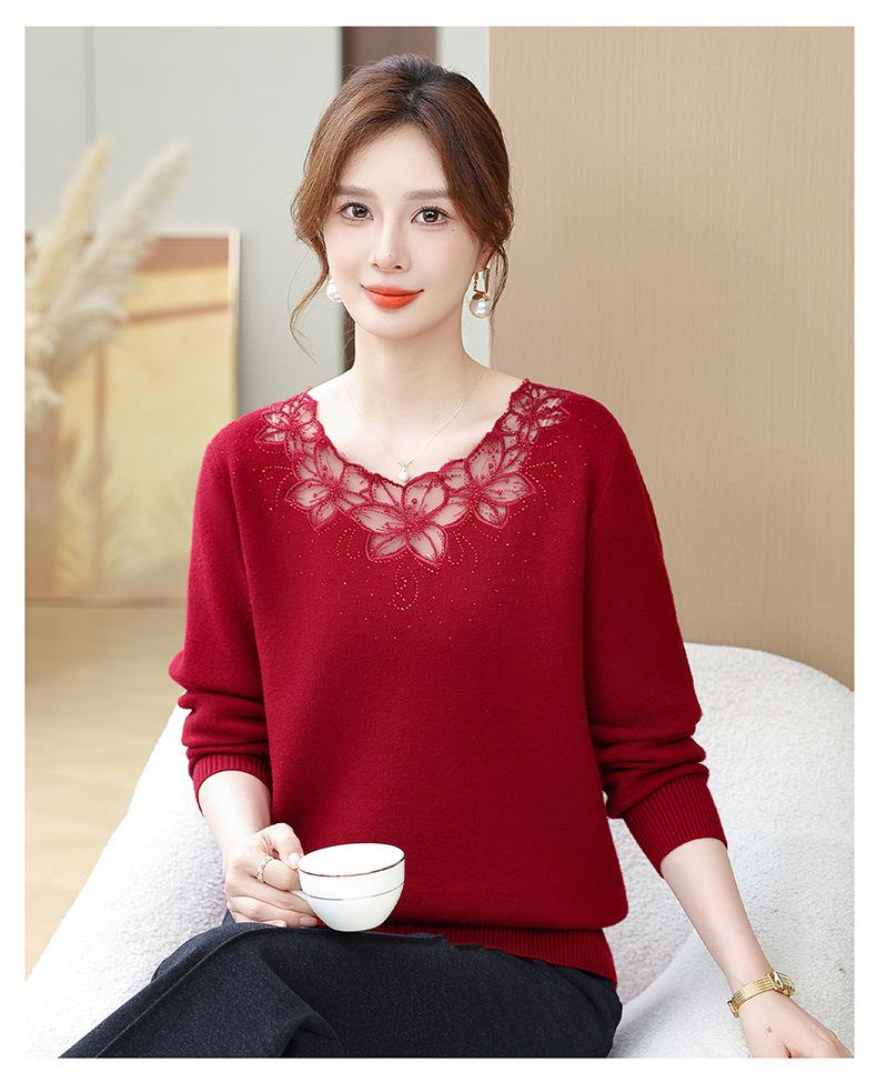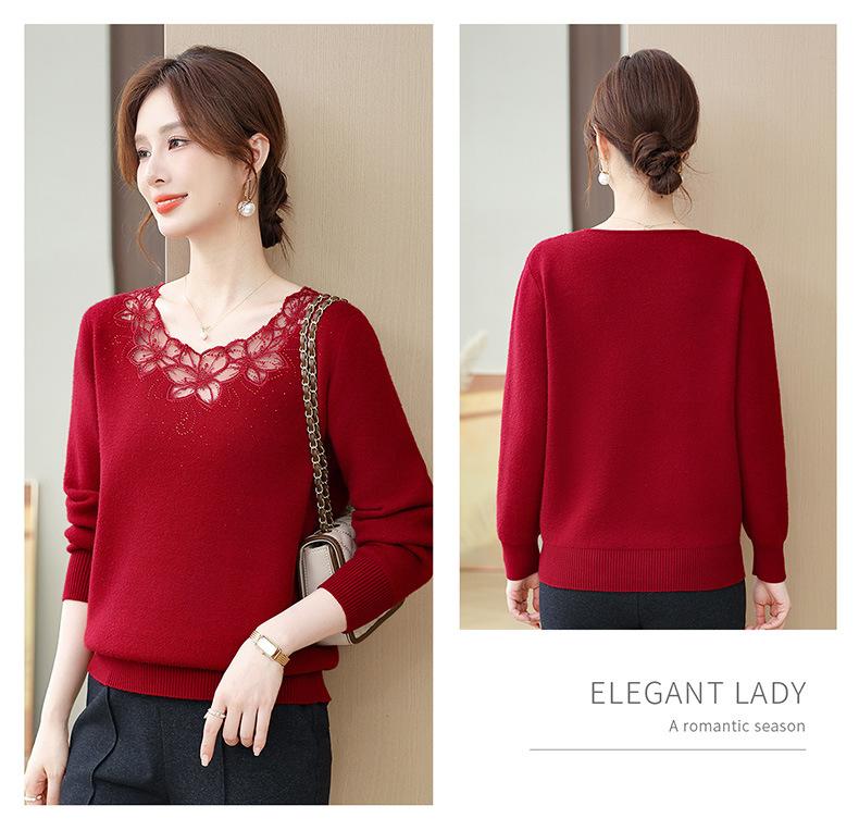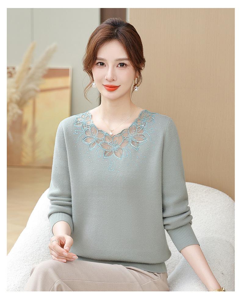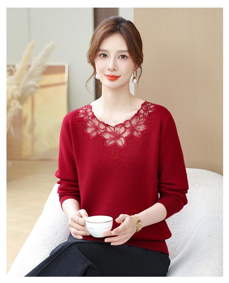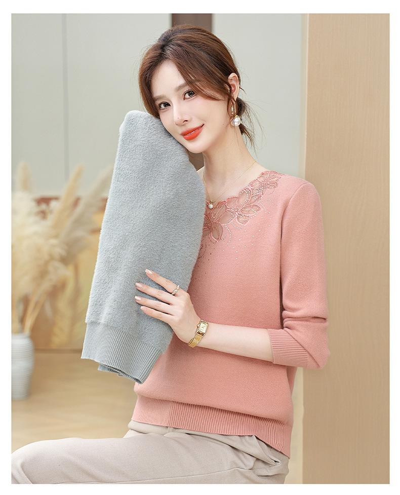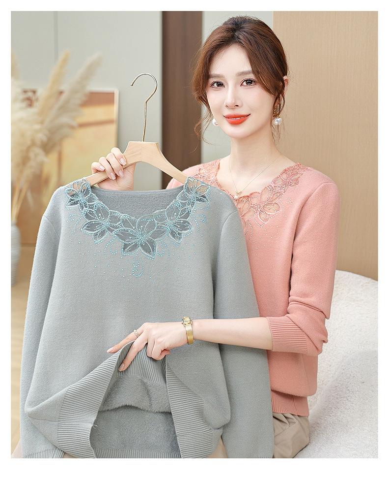 Nuevo Suéter de Invierno para Madre con Forro Polar Temperamento Espesado Top Cálido Interior de Una Pieza de Lana para Mujeres de Mediana Edad y Adultas Mayores