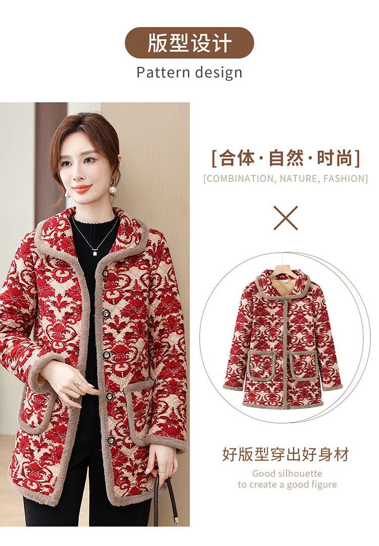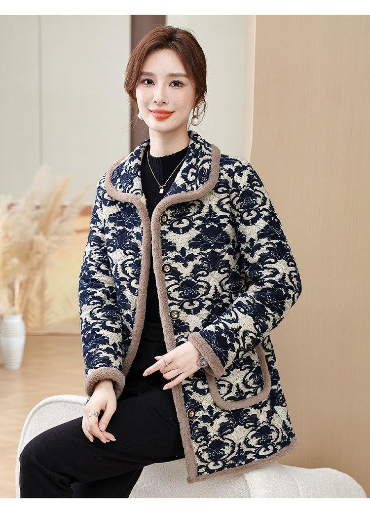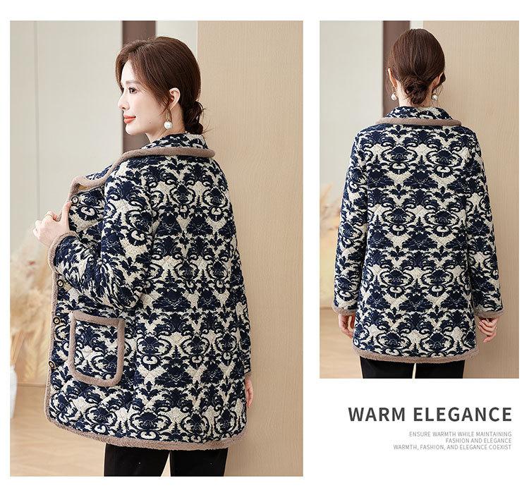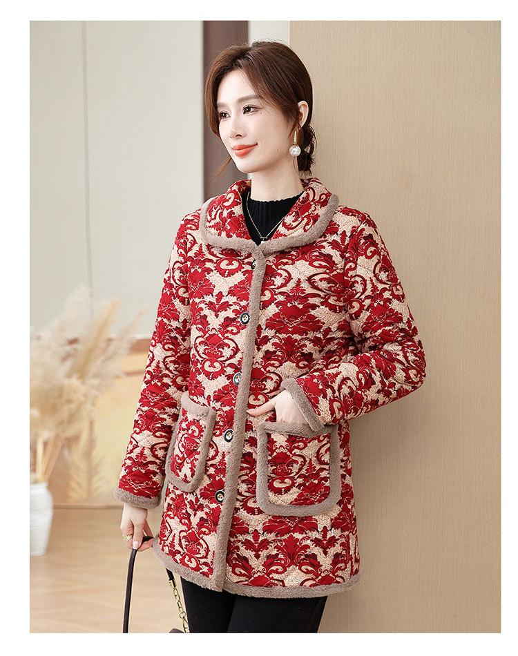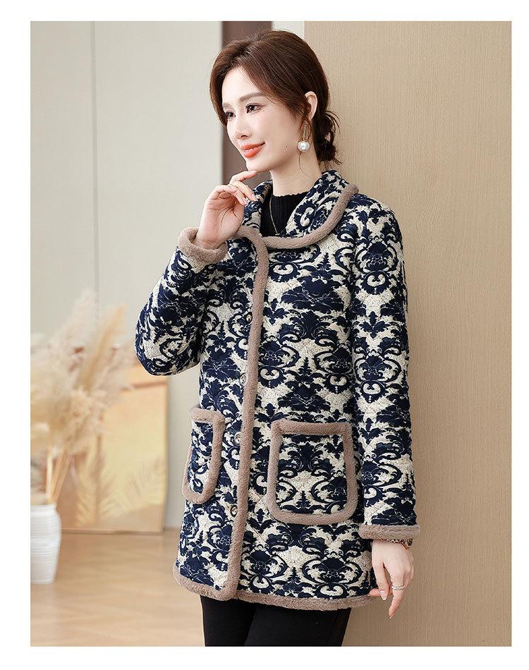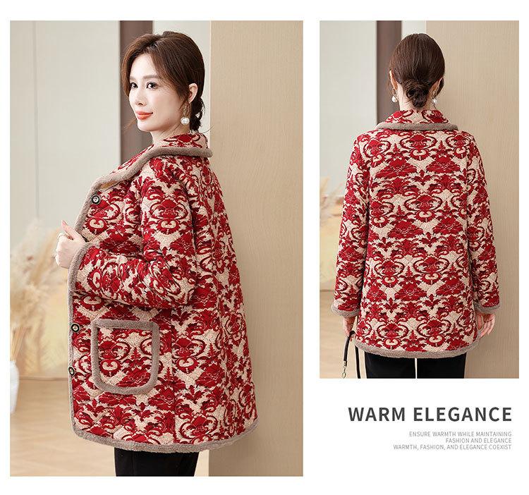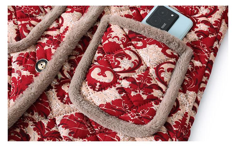 Abrigo acolchado de algodón floral con forro polar para madres. Abrigo acolchado de algodón grueso de otoño e invierno. Abrigo acolchado de algodón holgado y cálido para mujeres de mediana edad y mayores.