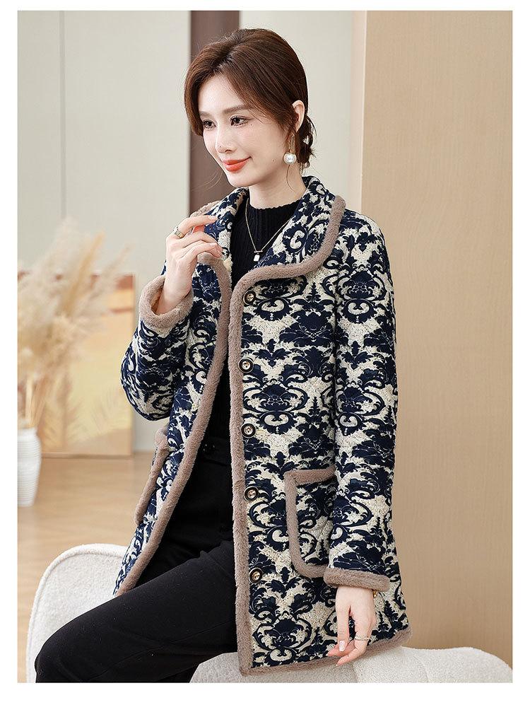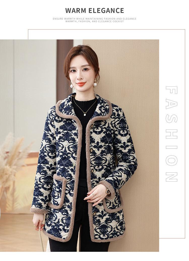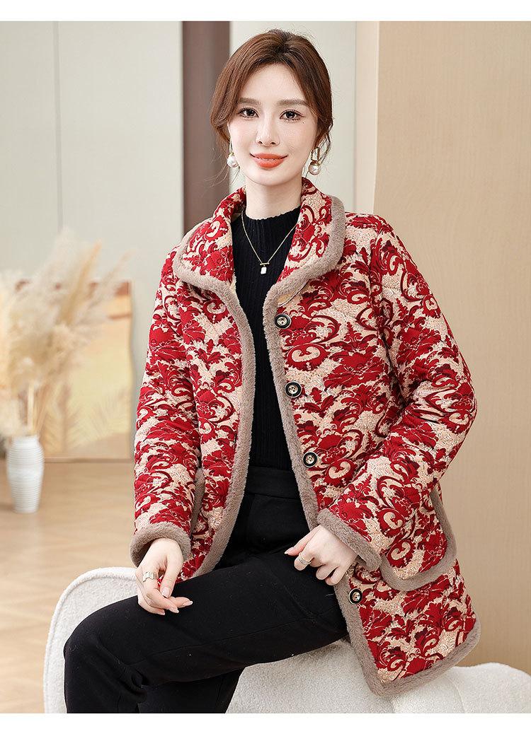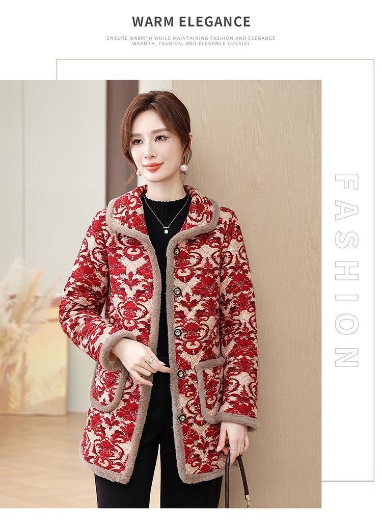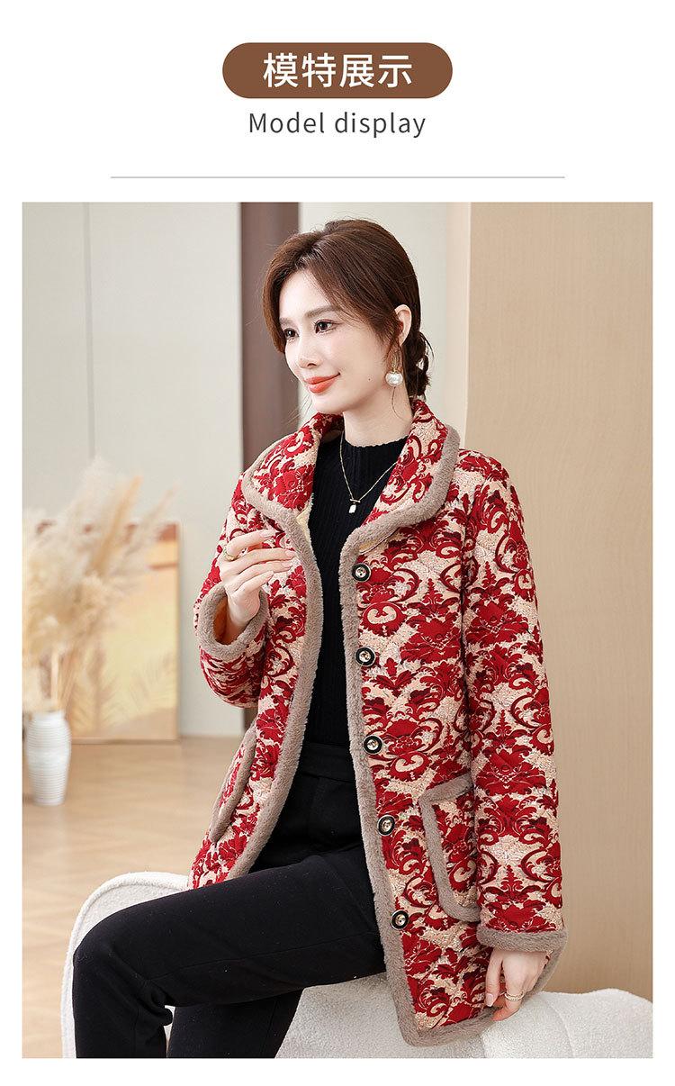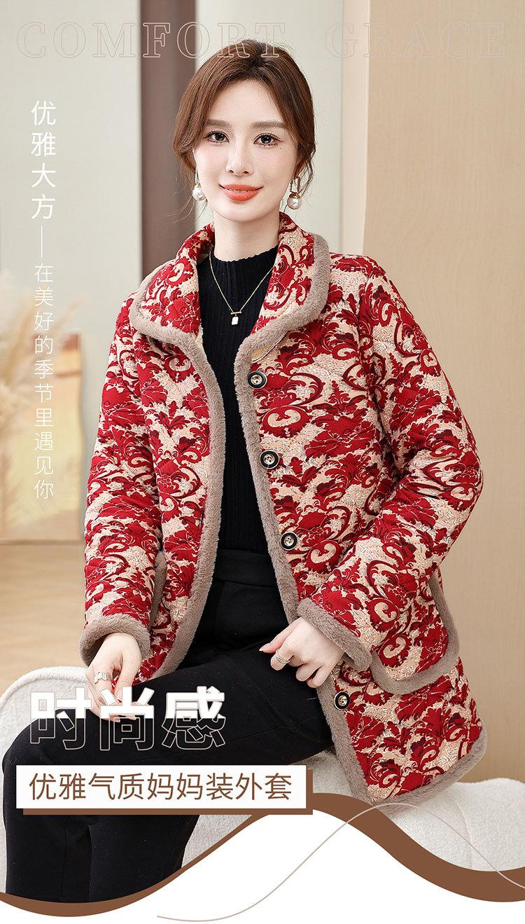 Abrigo acolchado de algodón floral con forro polar para madres. Abrigo acolchado de algodón grueso de otoño e invierno. Abrigo acolchado de algodón holgado y cálido para mujeres de mediana edad y mayores.