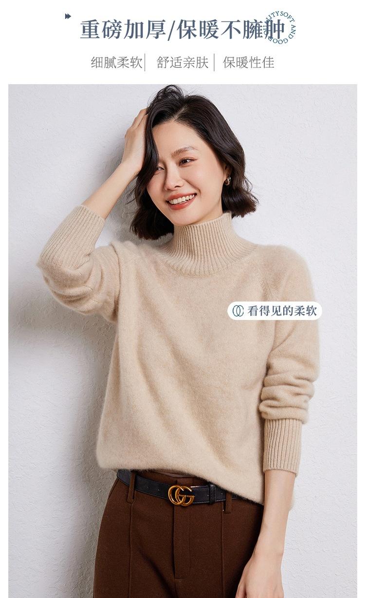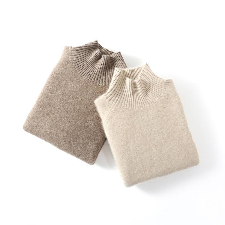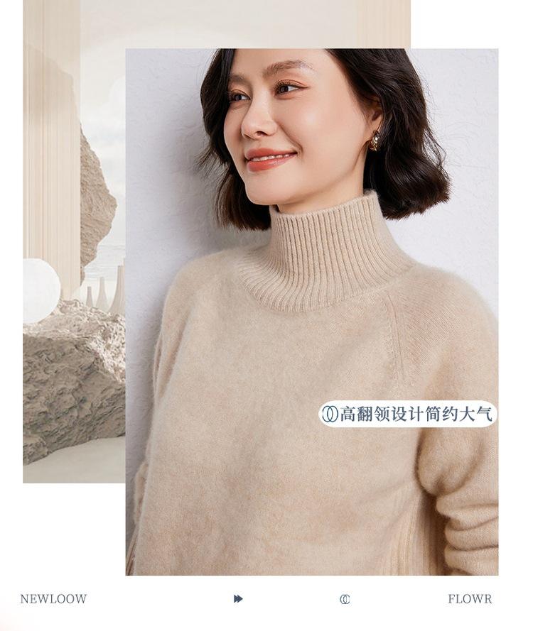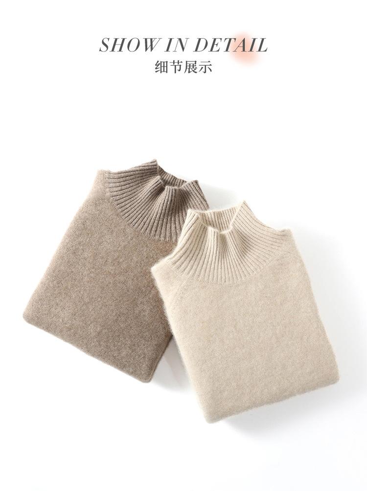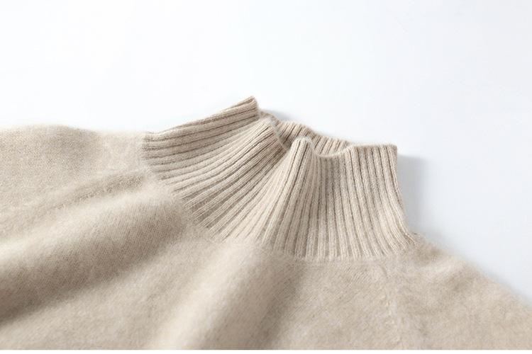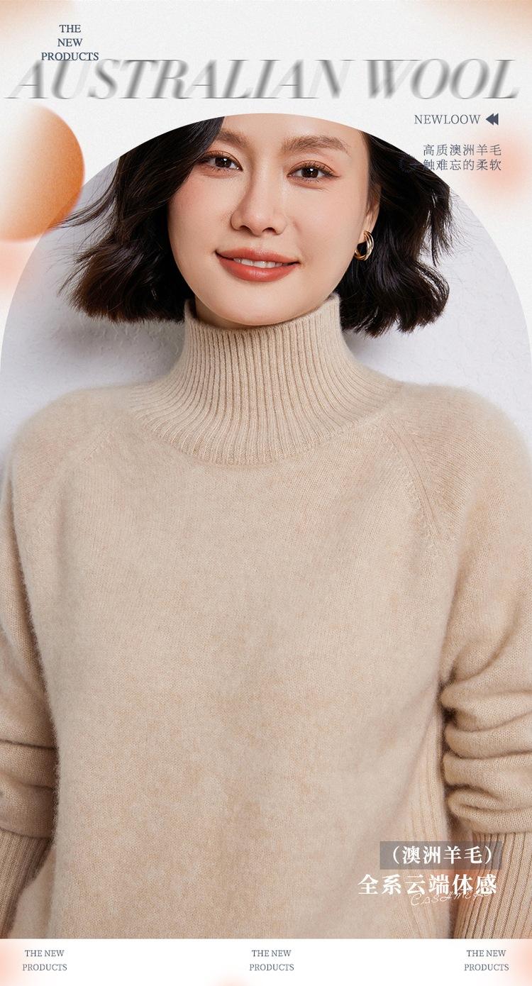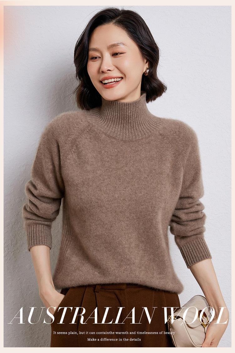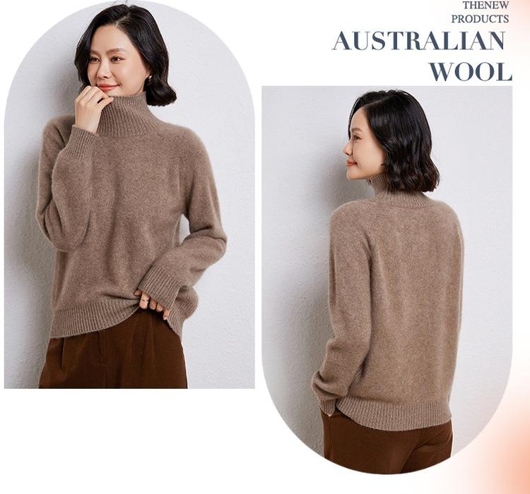Suéter de Cuello Alto de Lana Entera para Mujer Otoño e Invierno Nuevo Color Sólido Grueso Suelto Suéter Top Combinable