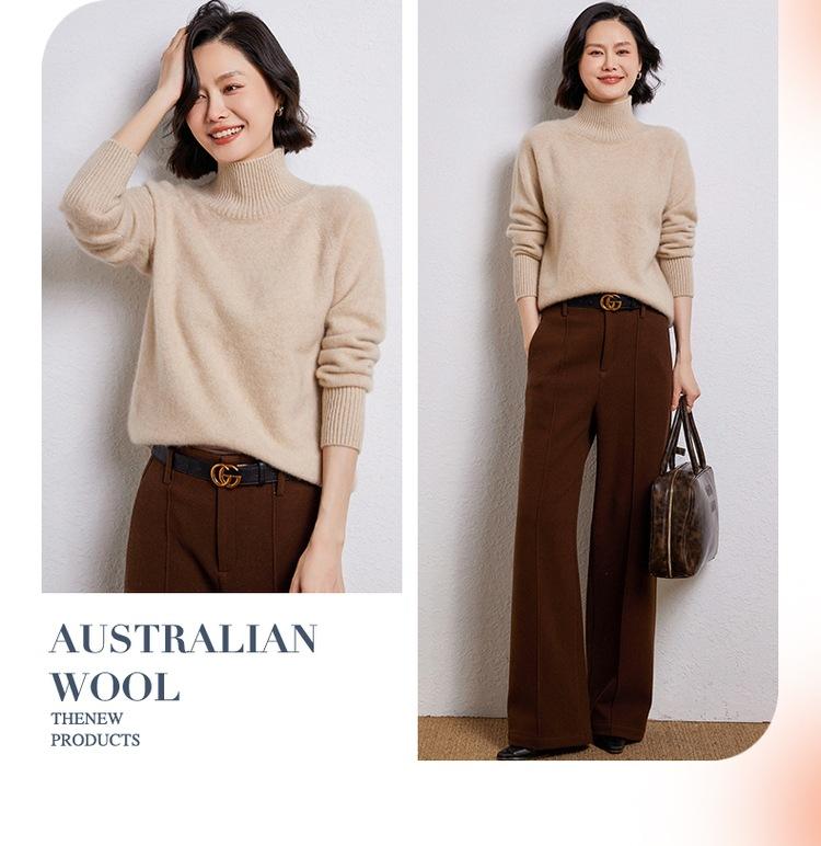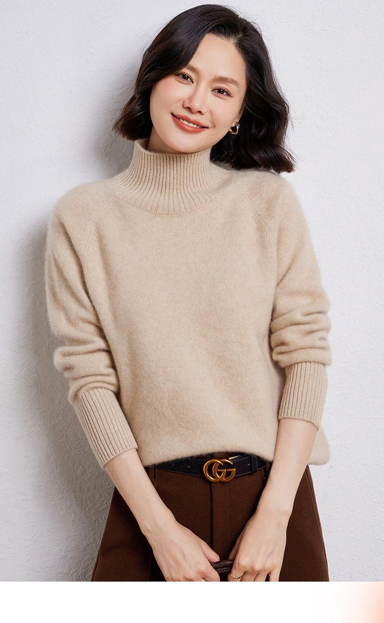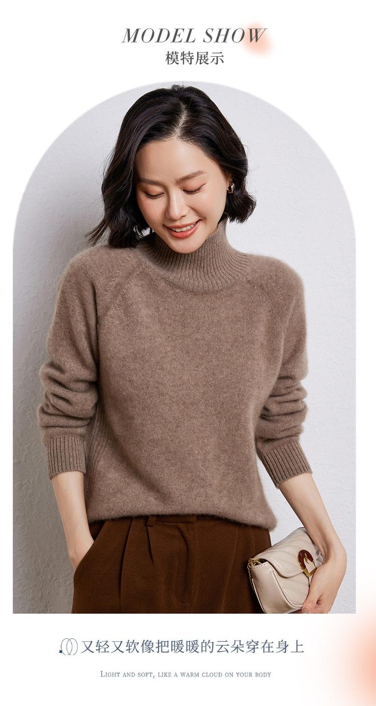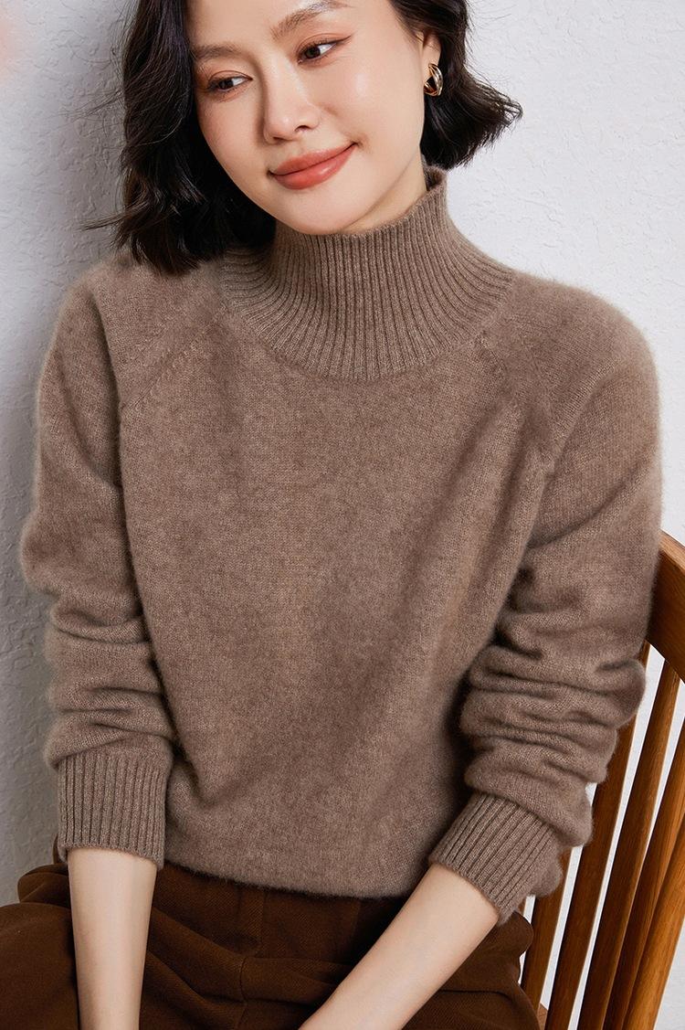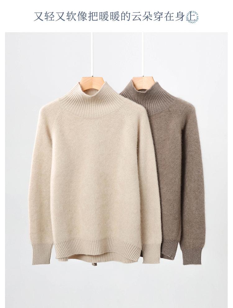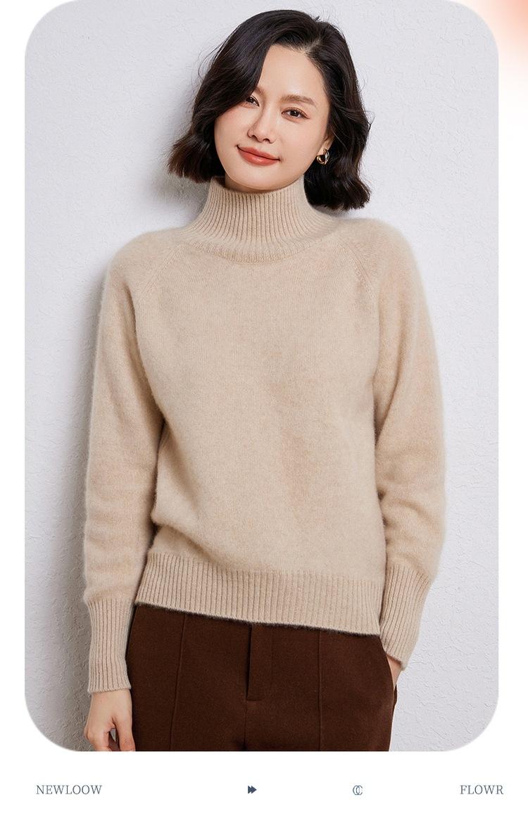 Suéter de Cuello Alto de Lana Entera para Mujer Otoño e Invierno Nuevo Color Sólido Grueso Suelto Suéter Top Combinable
