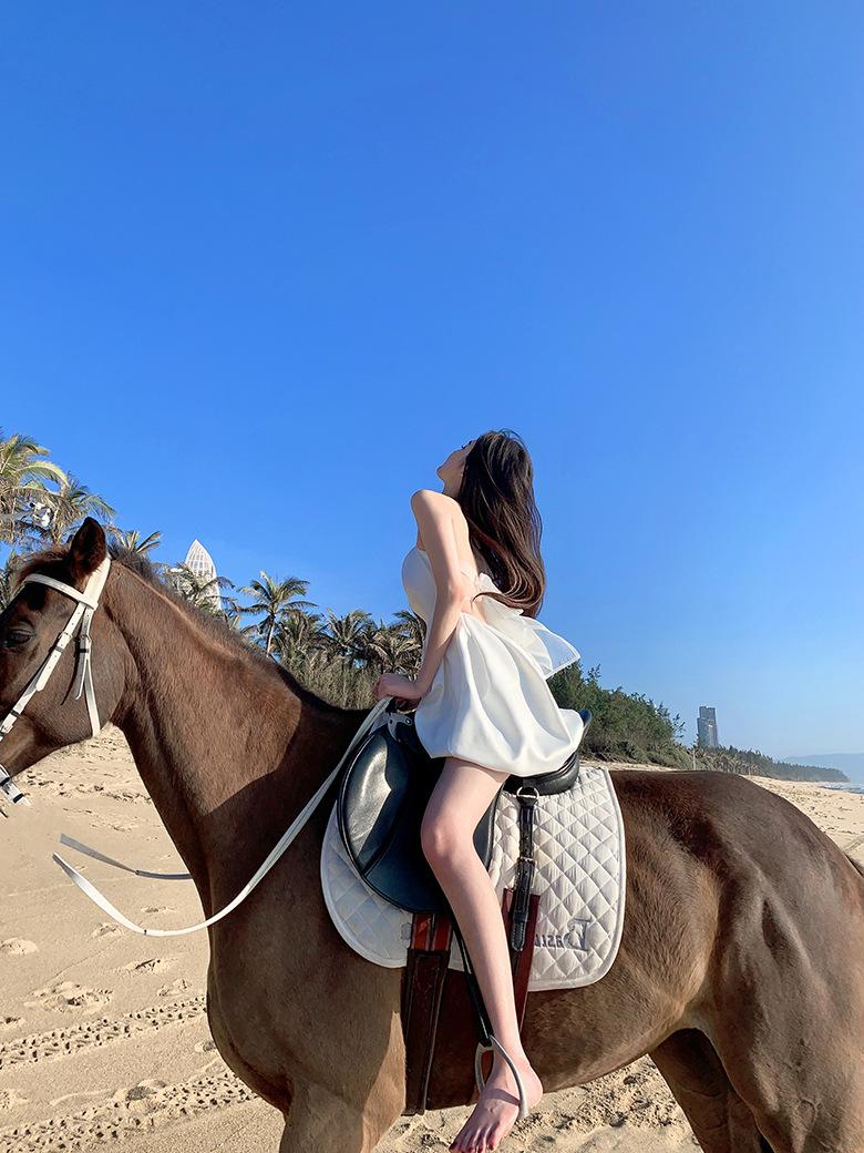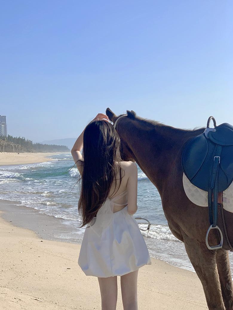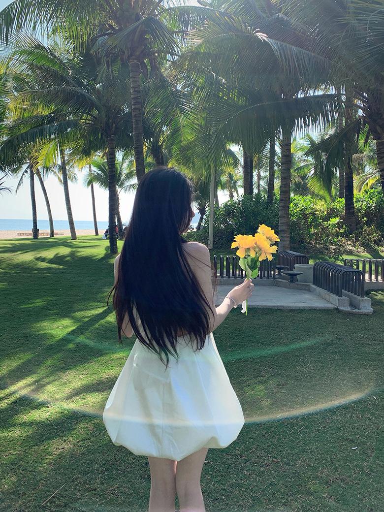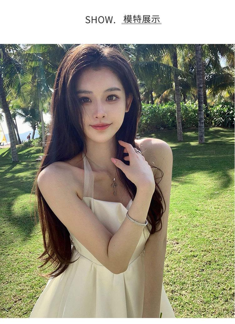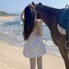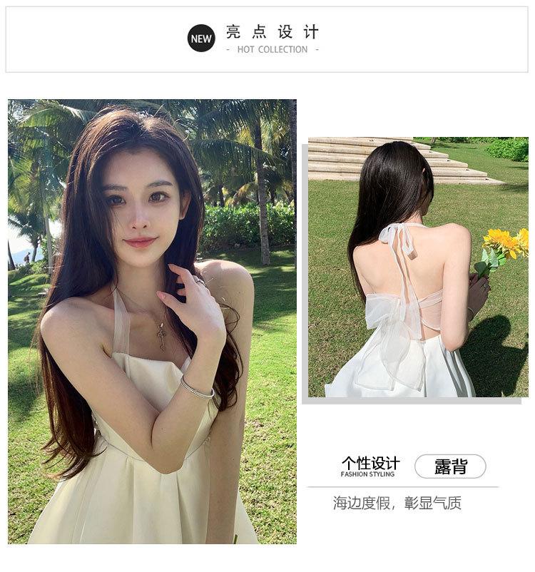 Nuevo Vestido de Tirantes Descubierto Verano Vacaciones Sexy Vestido de Playa Cintura Ajustada Corte Entallado Falda Tutú Falda Blanca