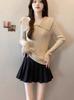 Suéter de punto con cuello azul marino y solapa fina para mujer de principios de otoño 2024, nueva prenda de primavera y otoño para principios de otoño, camisa básica de punto.