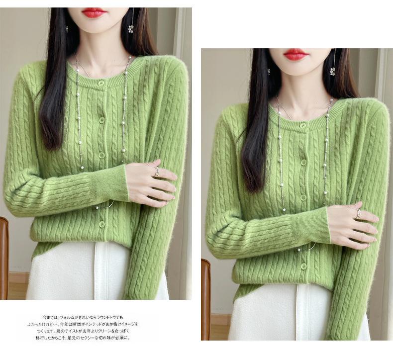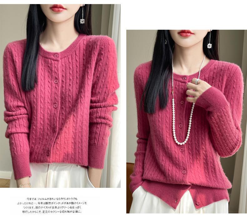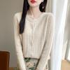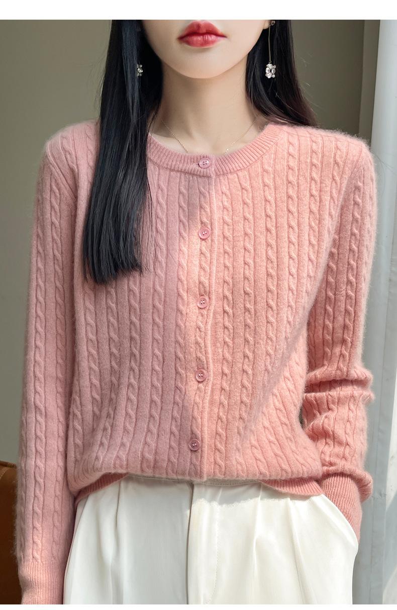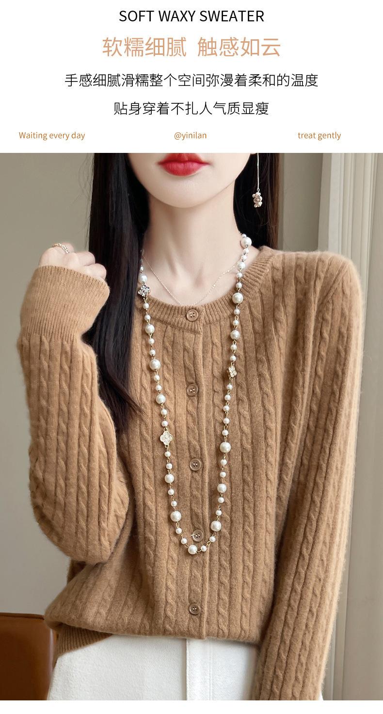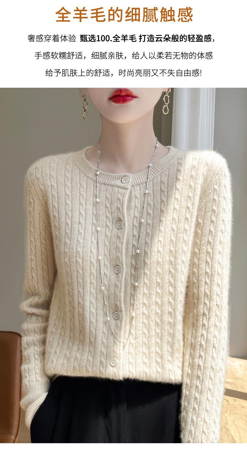 Nuevo Cárdigan de Lana de Cuello Redondo para Otoño e Invierno para Mujer, Suéter de Lana Trenzada de Color Sólido, Suéter Holgado de Manga Larga, Abrigo de Lana Tejida