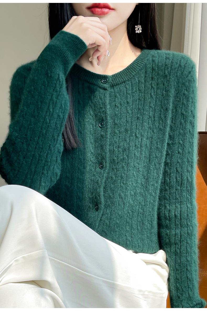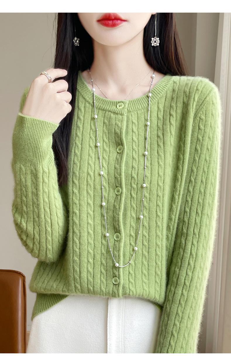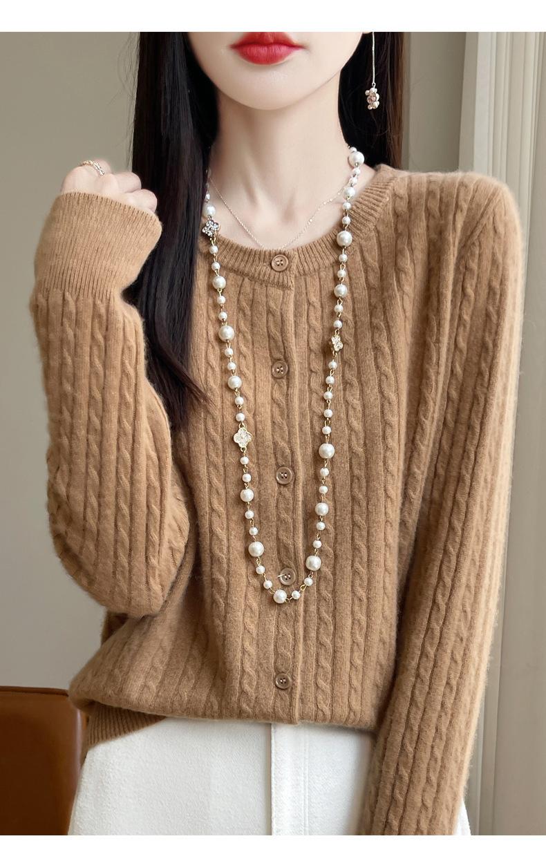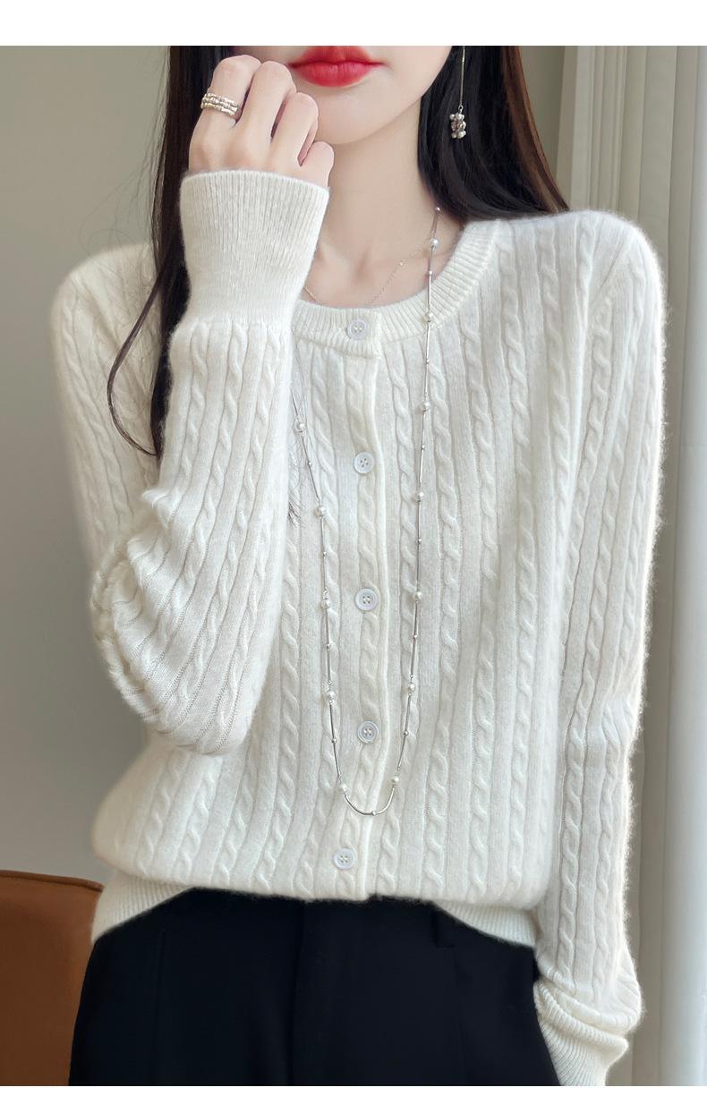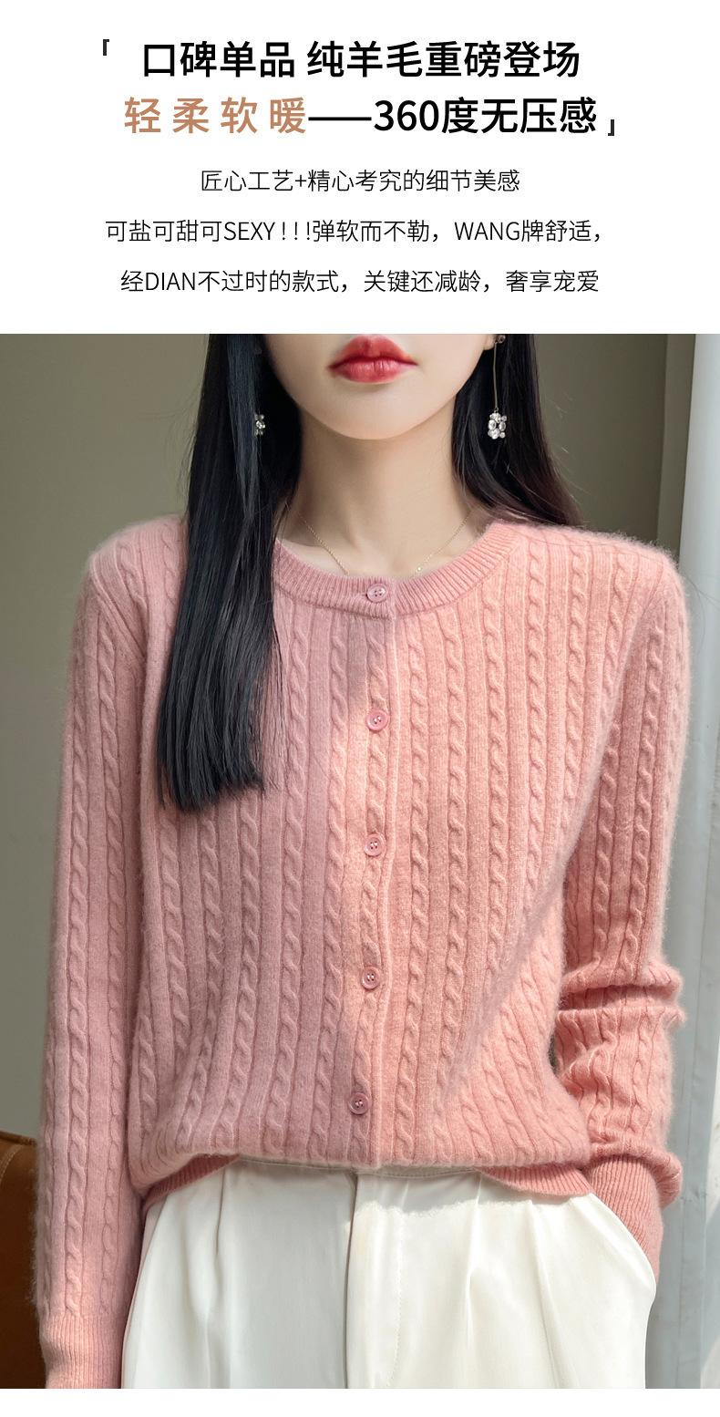 Nuevo Cárdigan de Lana de Cuello Redondo para Otoño e Invierno para Mujer, Suéter de Lana Trenzada de Color Sólido, Suéter Holgado de Manga Larga, Abrigo de Lana Tejida