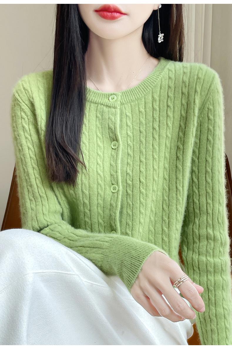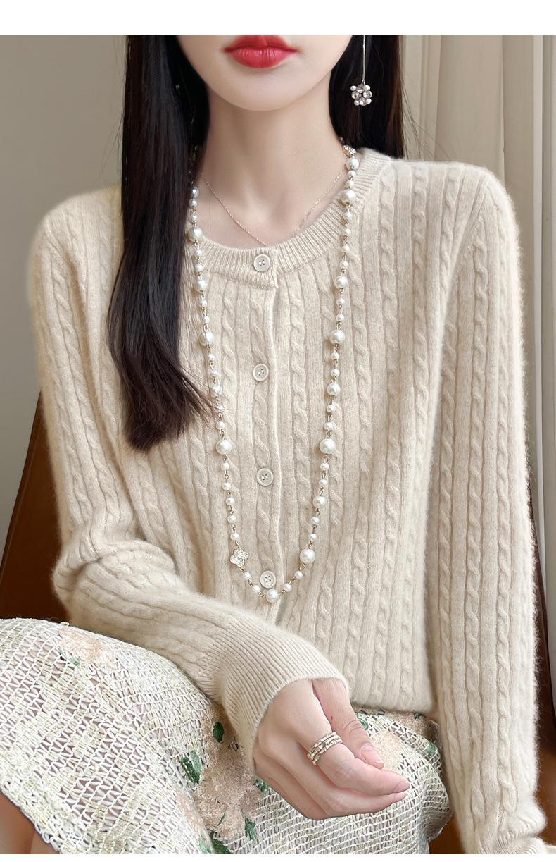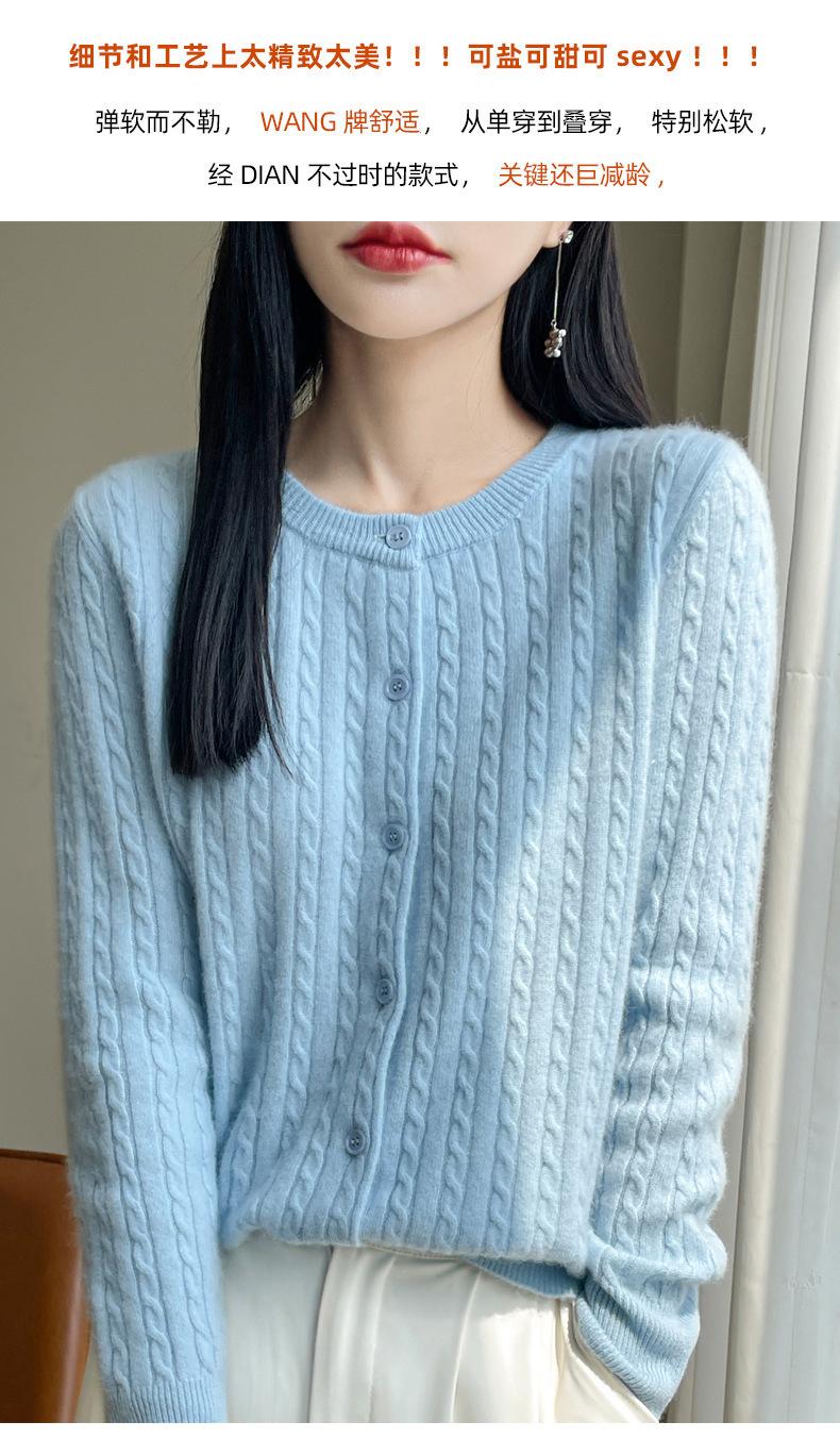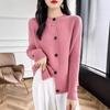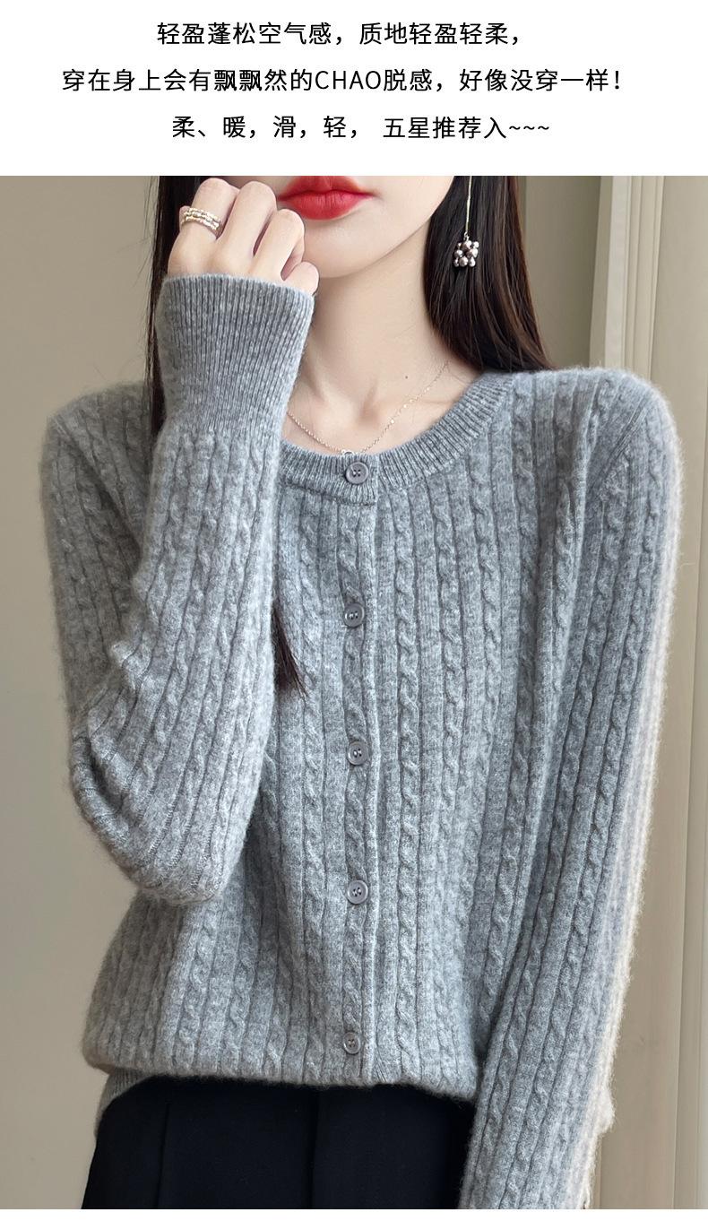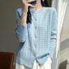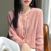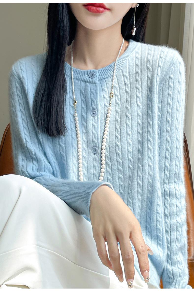 Nuevo Cárdigan de Lana de Cuello Redondo para Otoño e Invierno para Mujer, Suéter de Lana Trenzada de Color Sólido, Suéter Holgado de Manga Larga, Abrigo de Lana Tejida