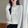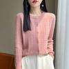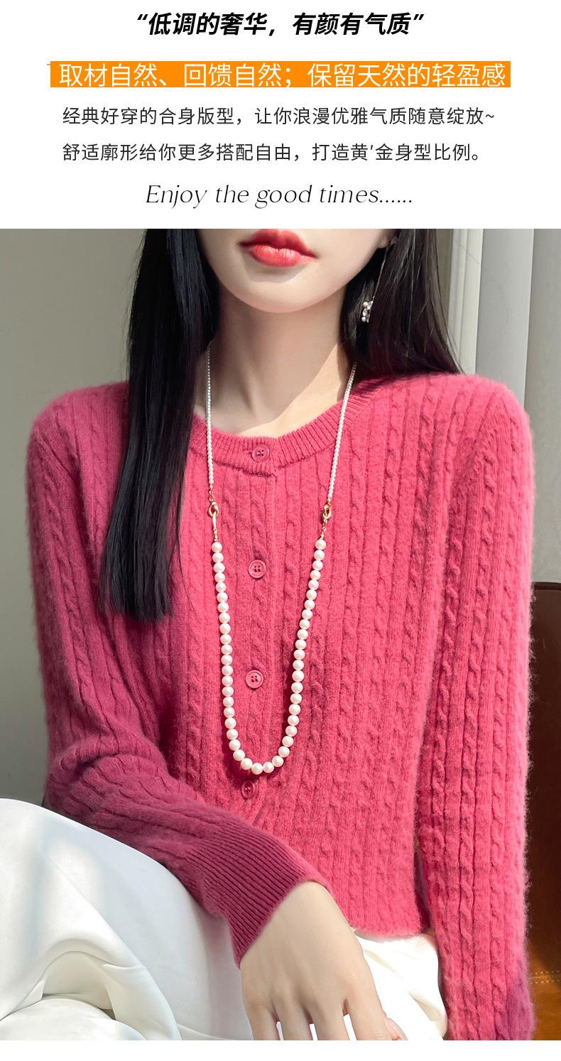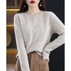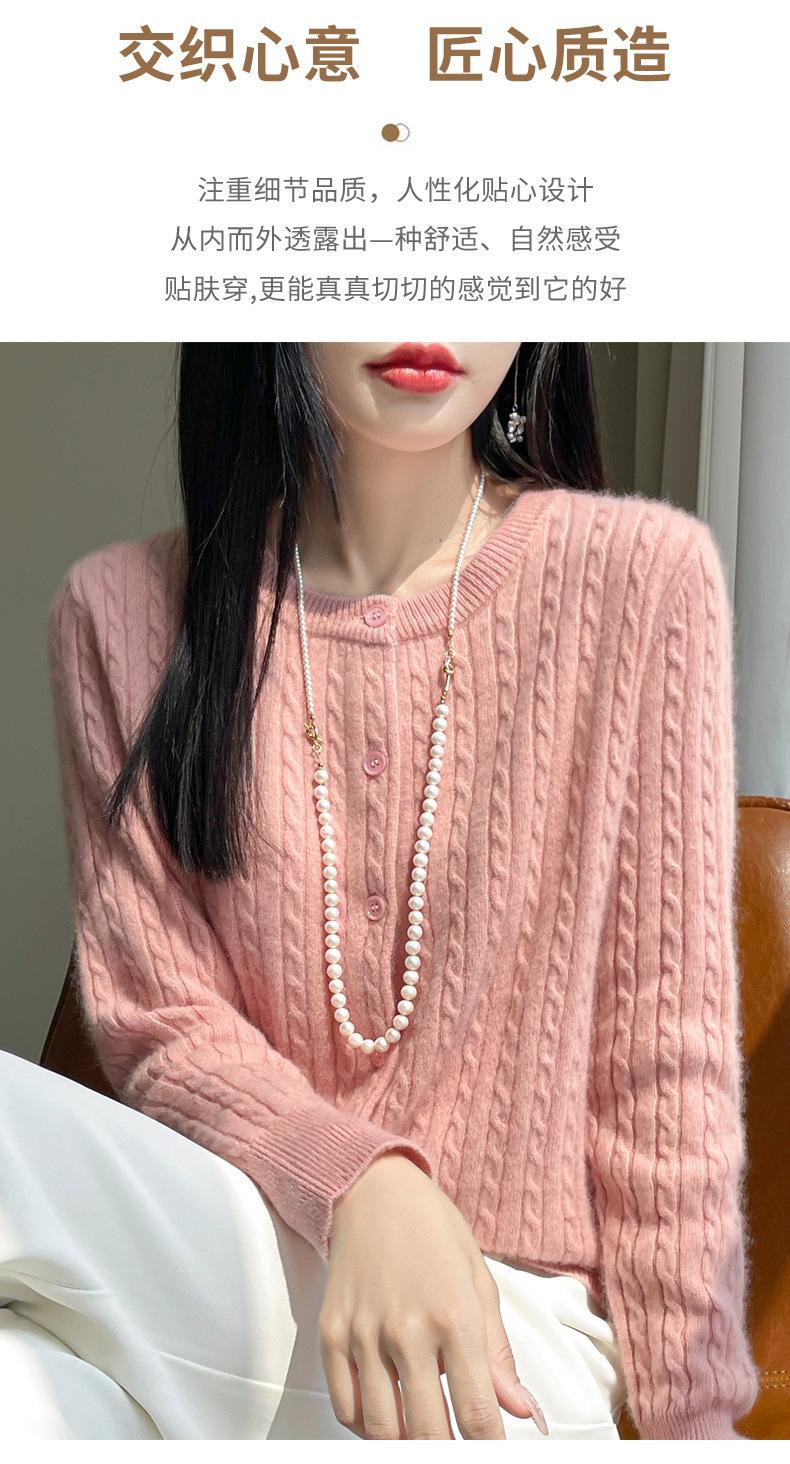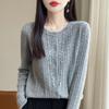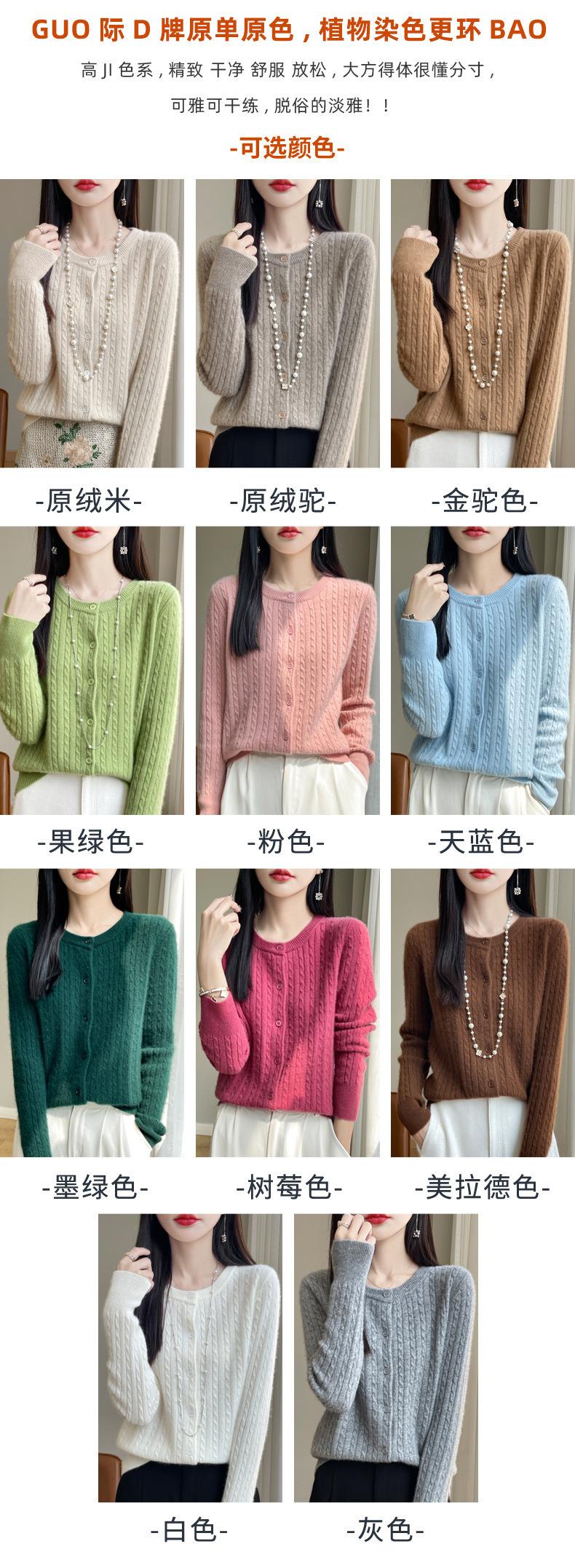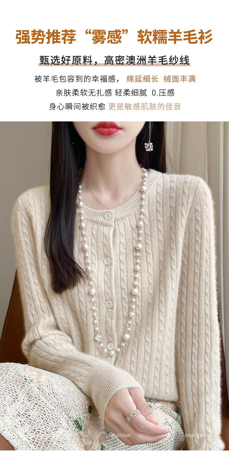 Nuevo Cárdigan de Lana de Cuello Redondo para Otoño e Invierno para Mujer, Suéter de Lana Trenzada de Color Sólido, Suéter Holgado de Manga Larga, Abrigo de Lana Tejida