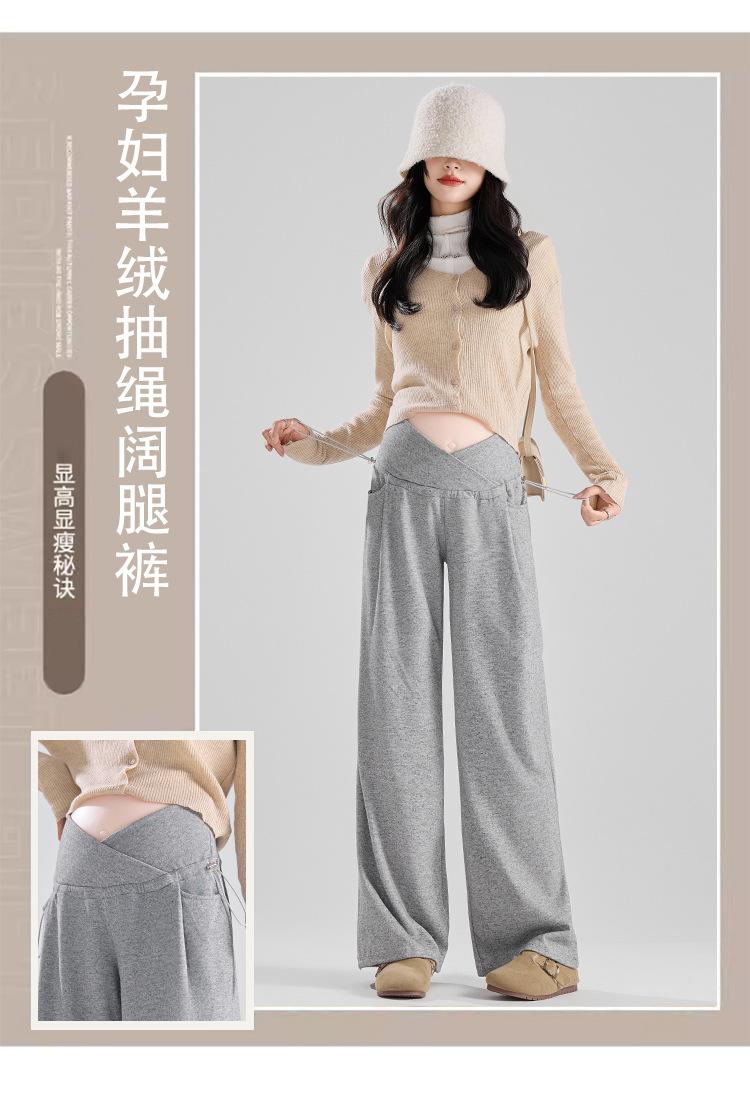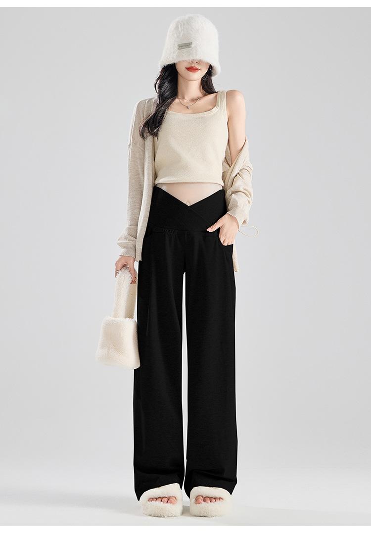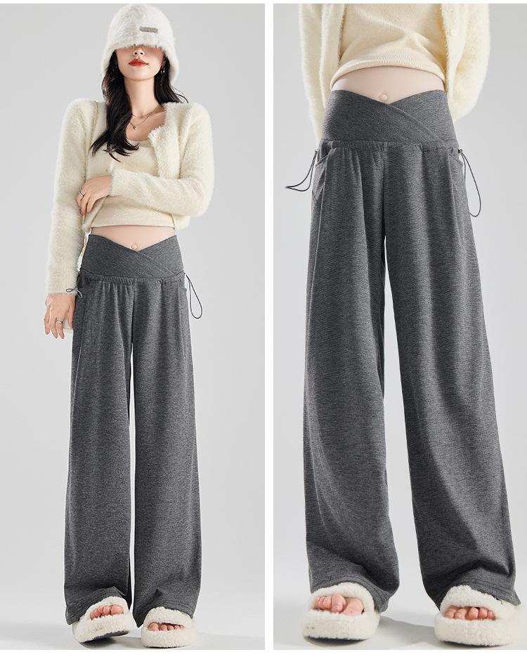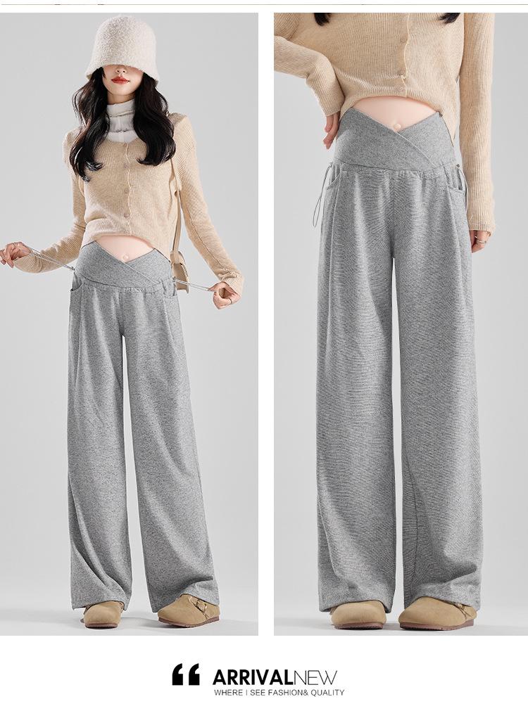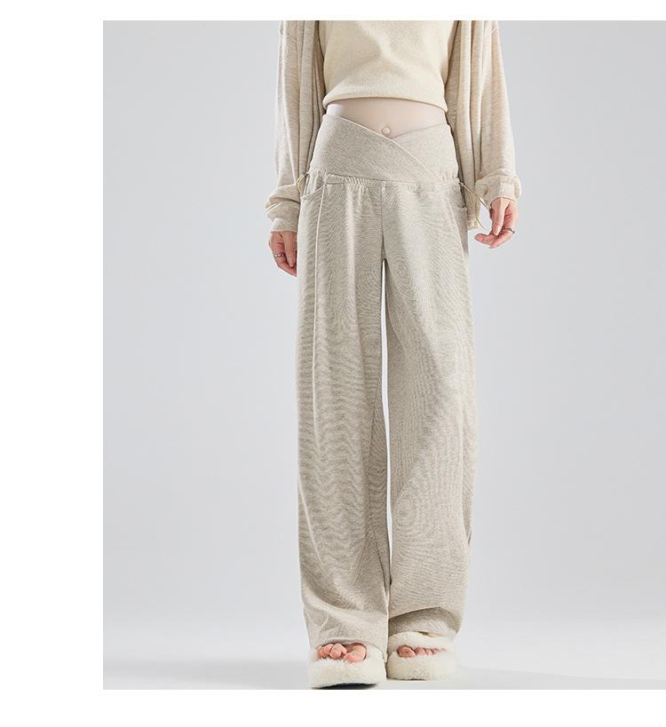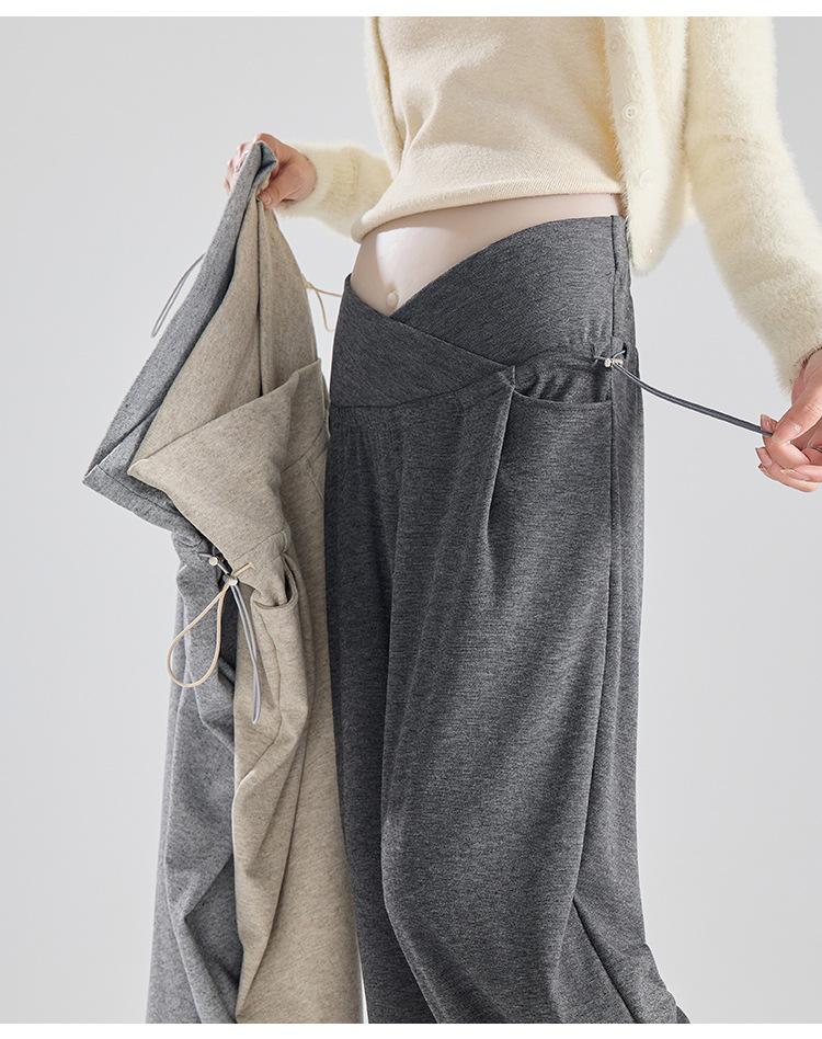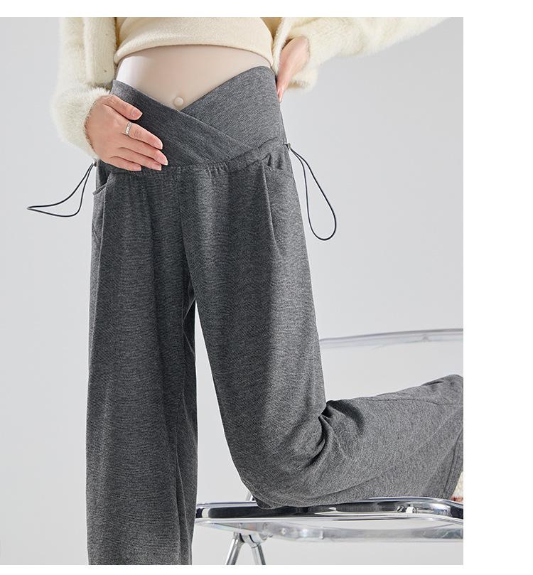 Pantalones de Maternidad de Otoño Temprano Estilo Suave Arroz Glutinoso Pantalones de Pierna Ancha Pantalones para Embarazadas Temperamento Cintura Baja Cordón Lateral Pantalones de Maternidad con Soporte Abdominal