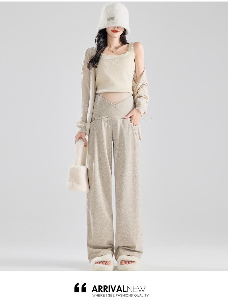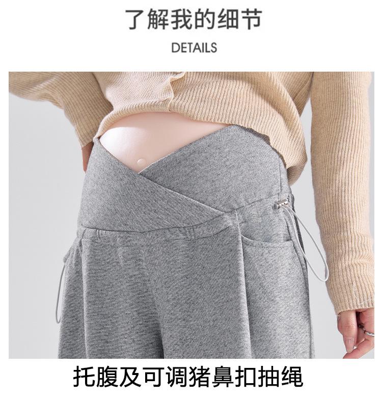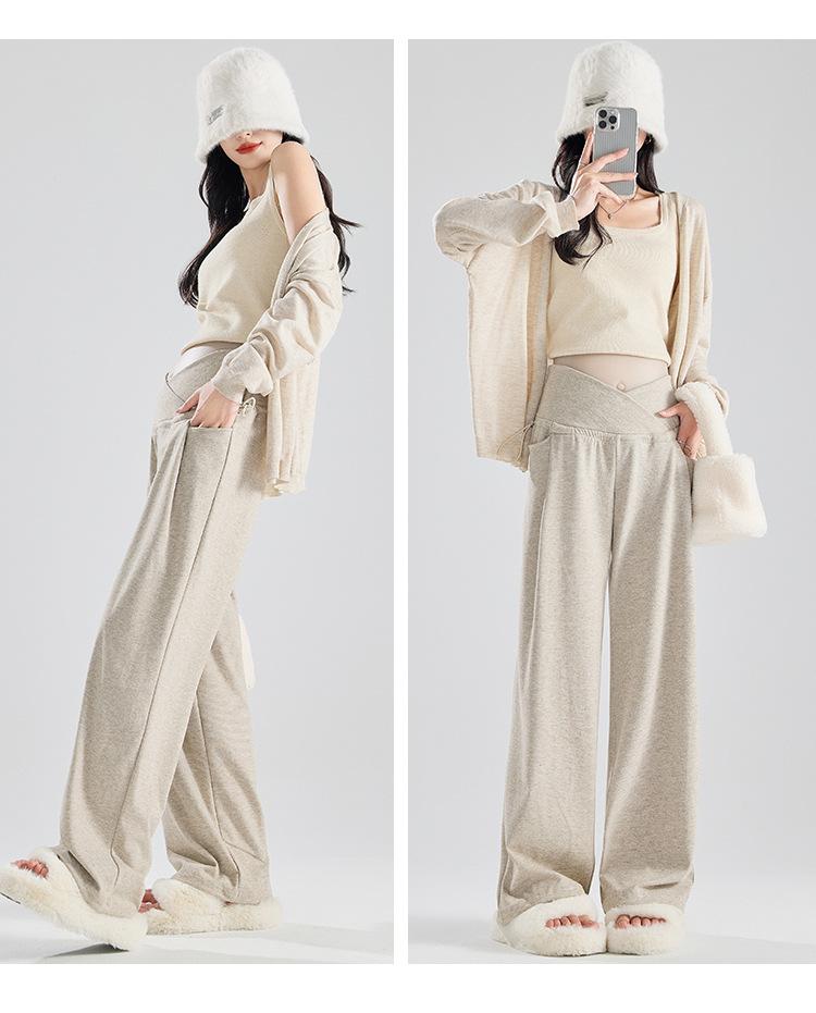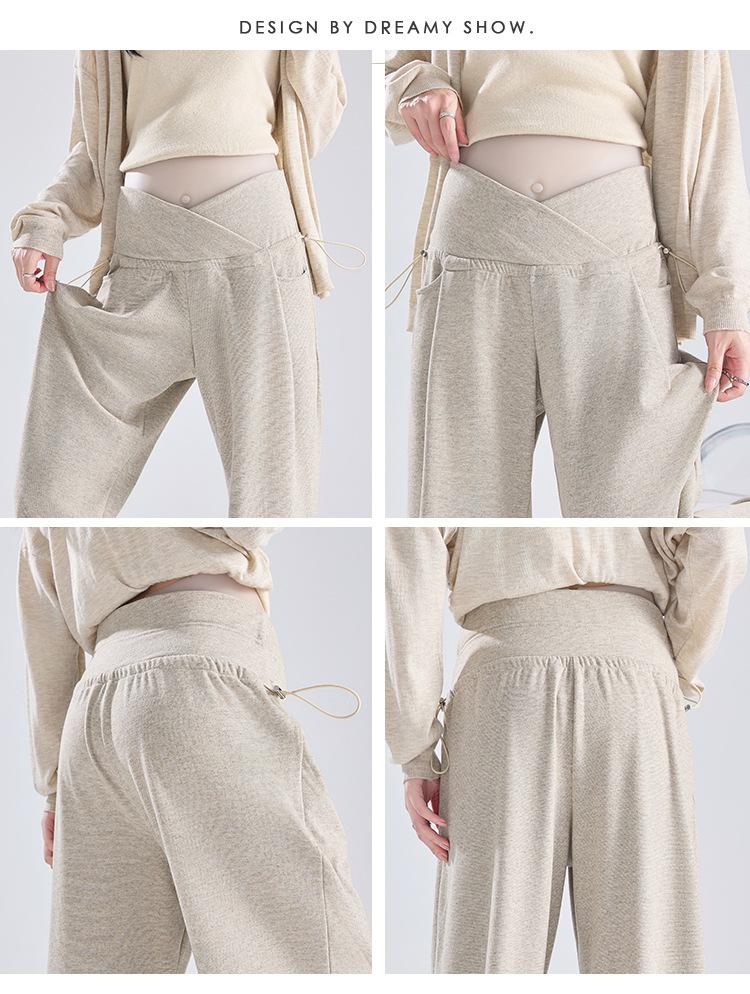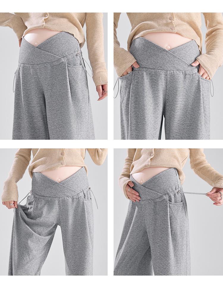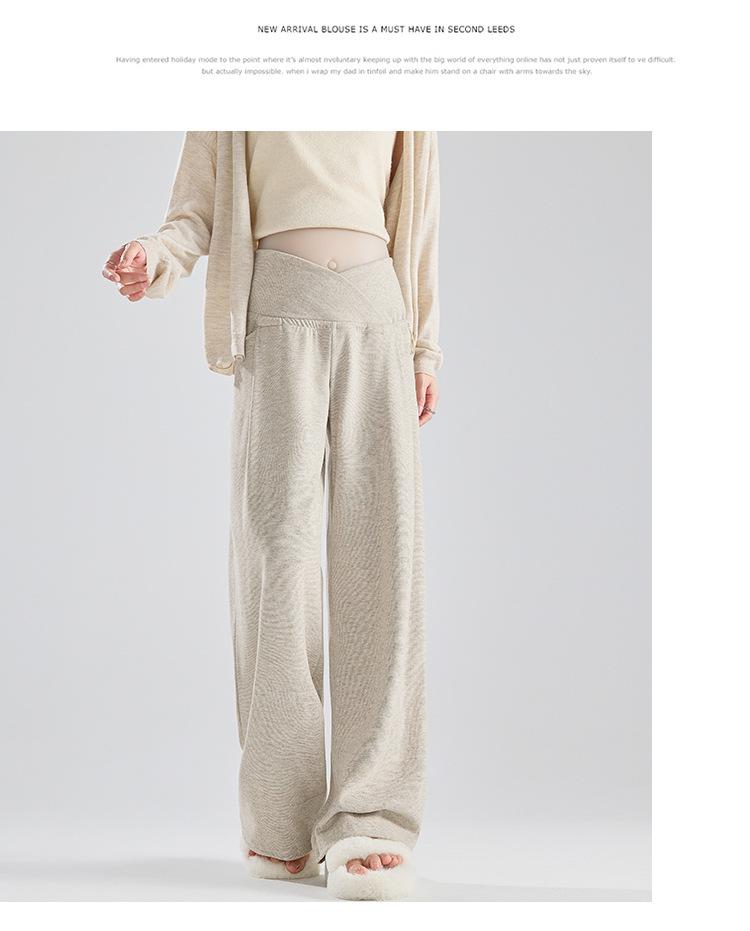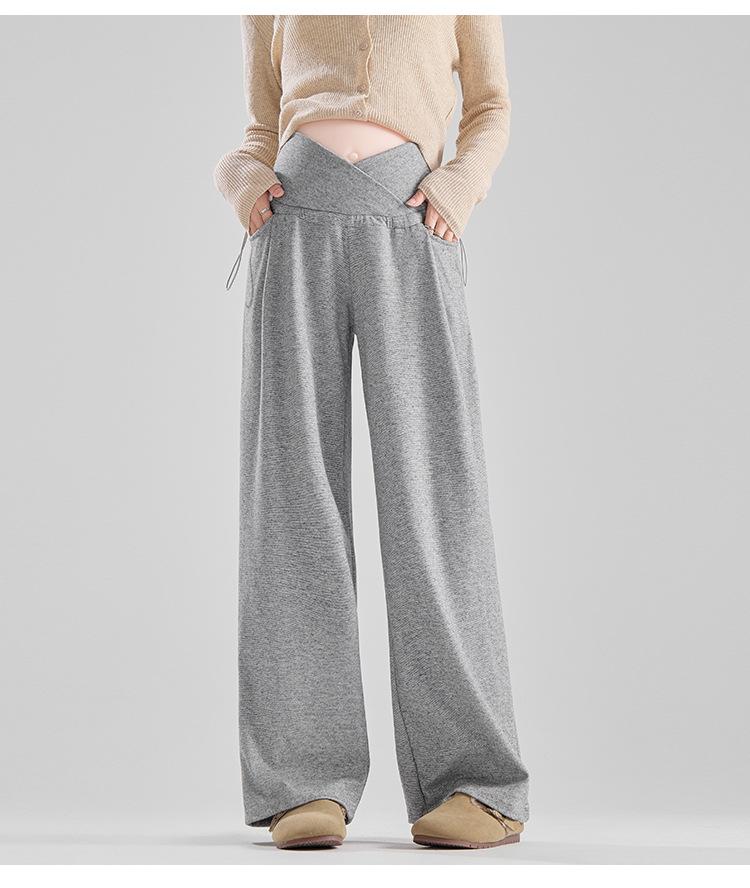 Pantalones de Maternidad de Otoño Temprano Estilo Suave Arroz Glutinoso Pantalones de Pierna Ancha Pantalones para Embarazadas Temperamento Cintura Baja Cordón Lateral Pantalones de Maternidad con Soporte Abdominal
