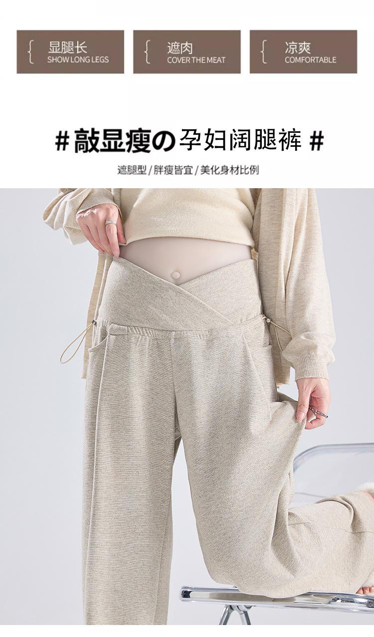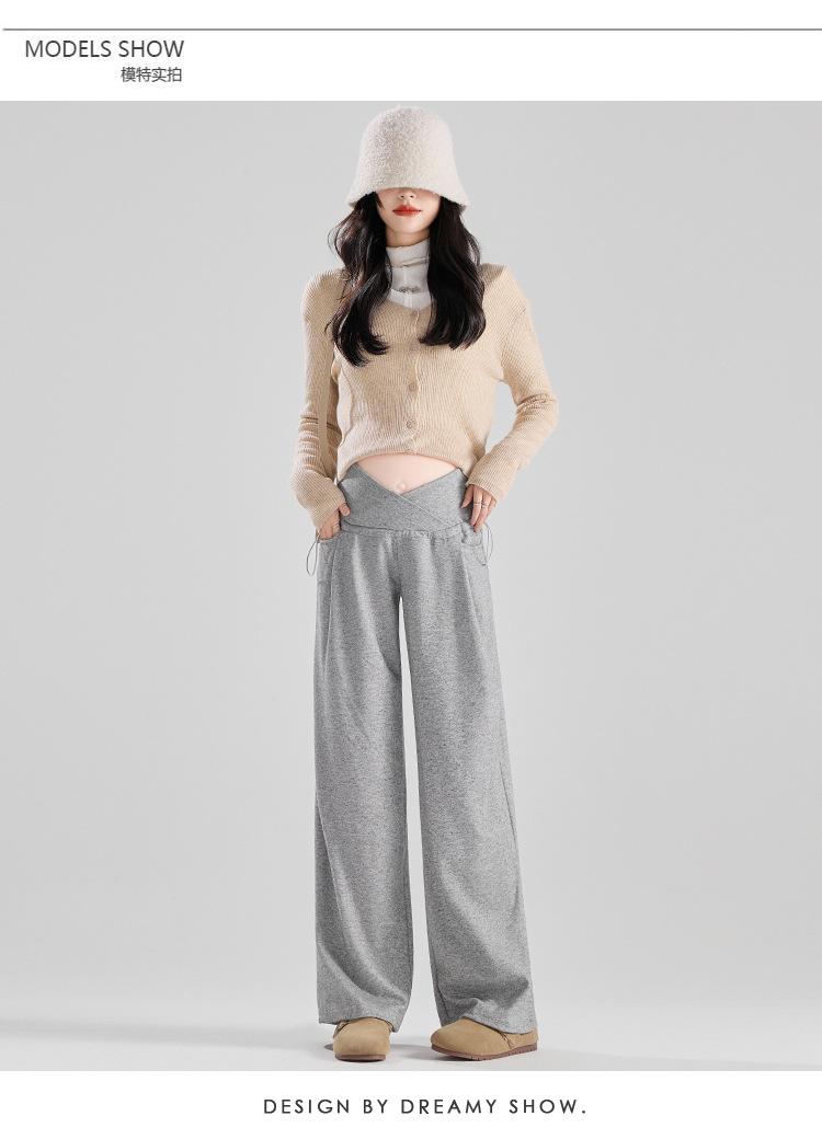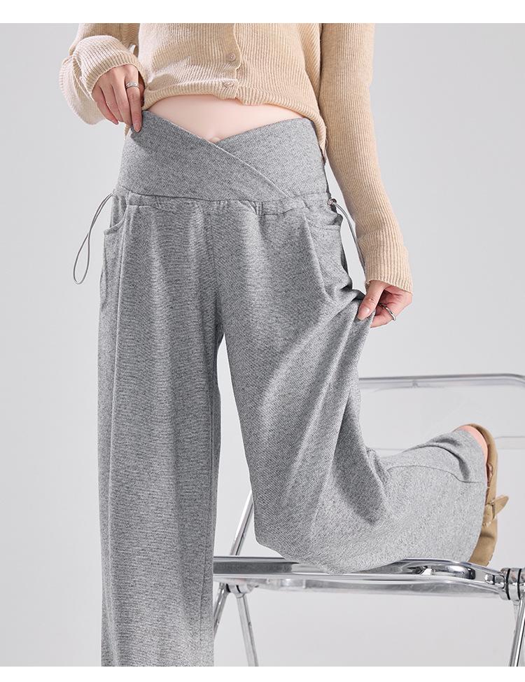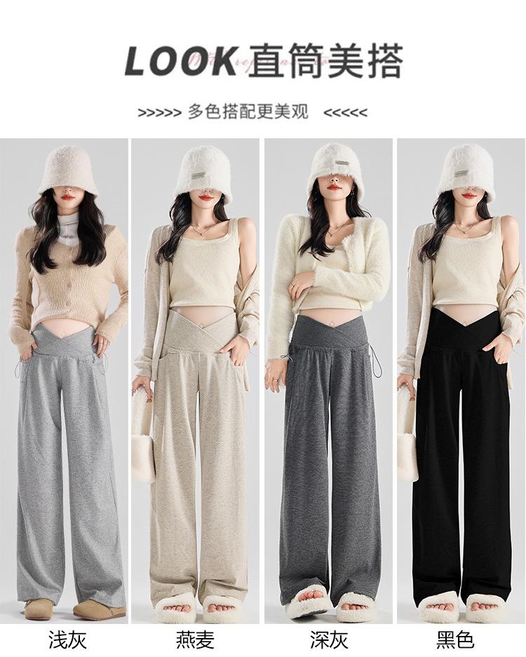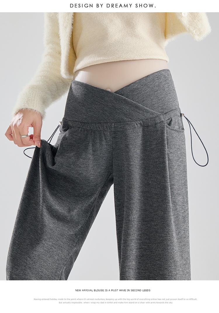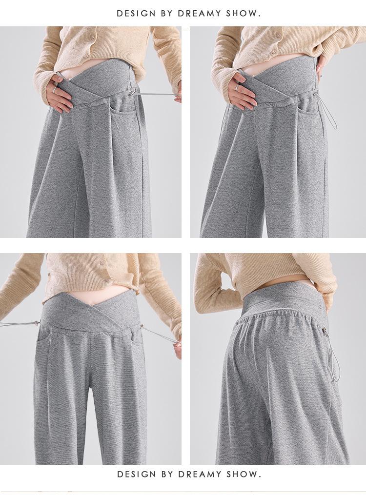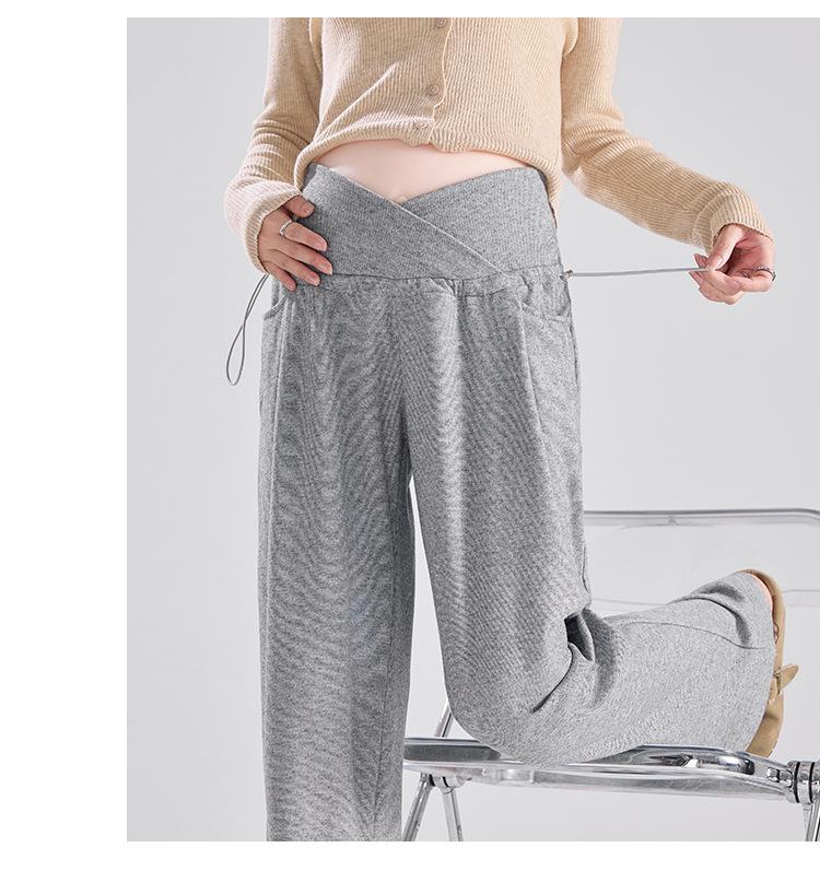 Pantalones de Maternidad de Otoño Temprano Estilo Suave Arroz Glutinoso Pantalones de Pierna Ancha Pantalones para Embarazadas Temperamento Cintura Baja Cordón Lateral Pantalones de Maternidad con Soporte Abdominal