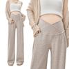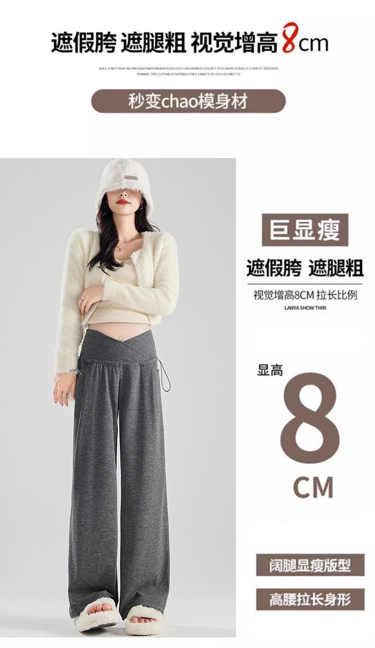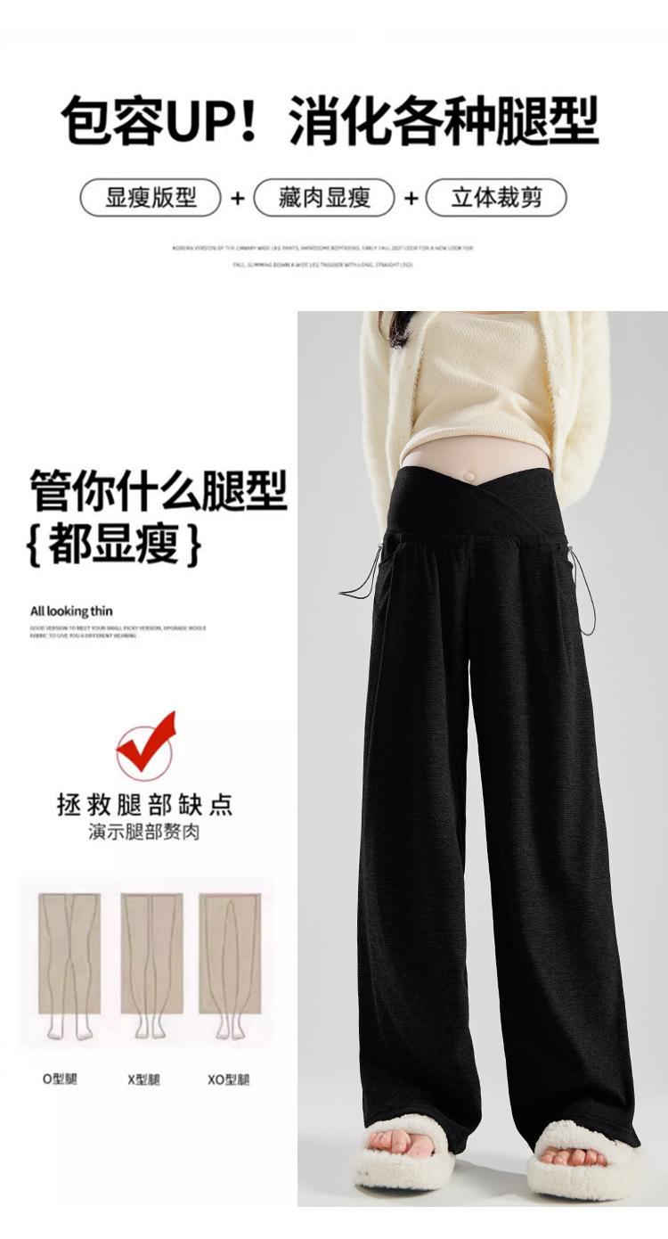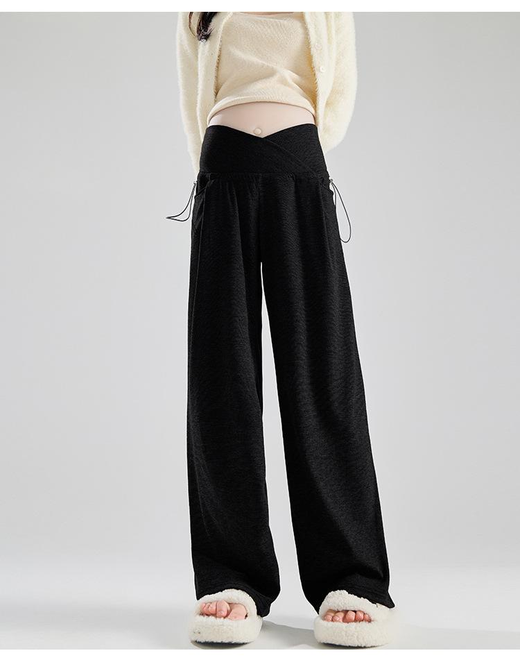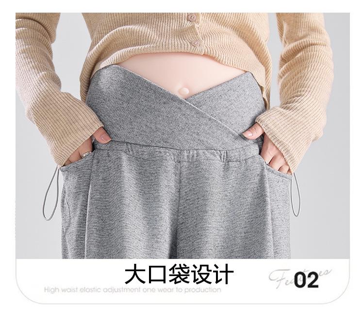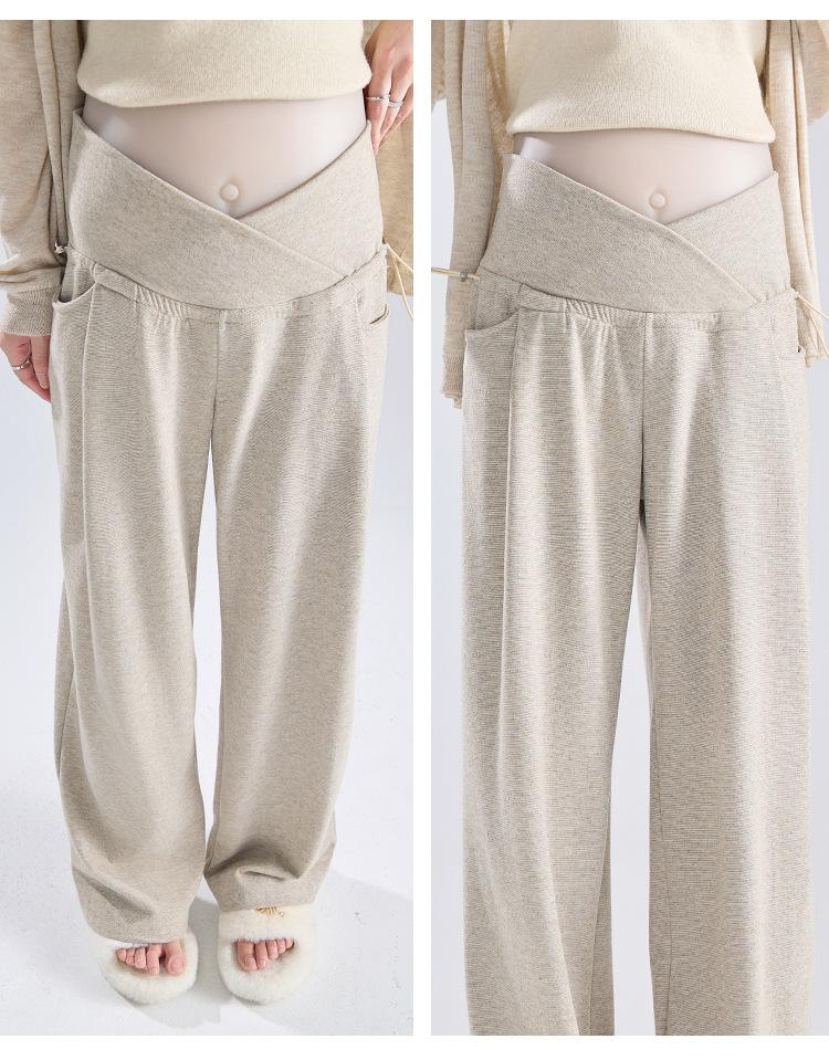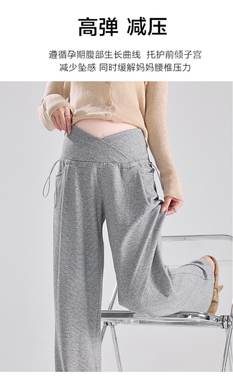 Pantalones de Maternidad de Otoño Temprano Estilo Suave Arroz Glutinoso Pantalones de Pierna Ancha Pantalones para Embarazadas Temperamento Cintura Baja Cordón Lateral Pantalones de Maternidad con Soporte Abdominal