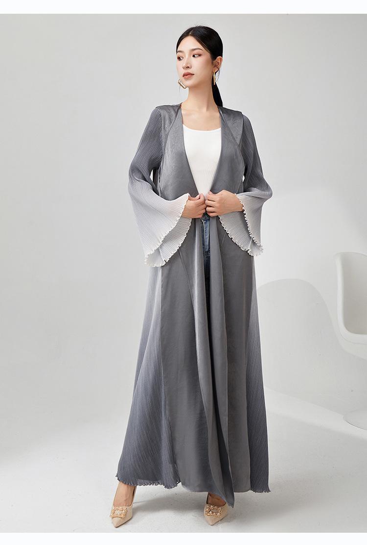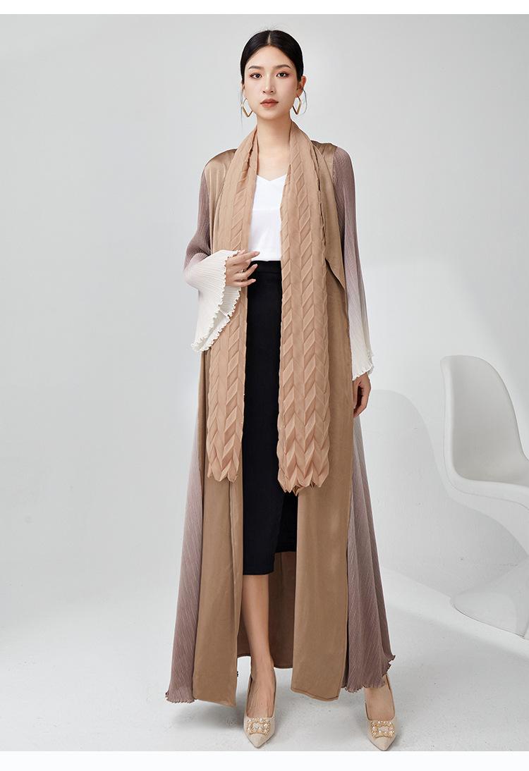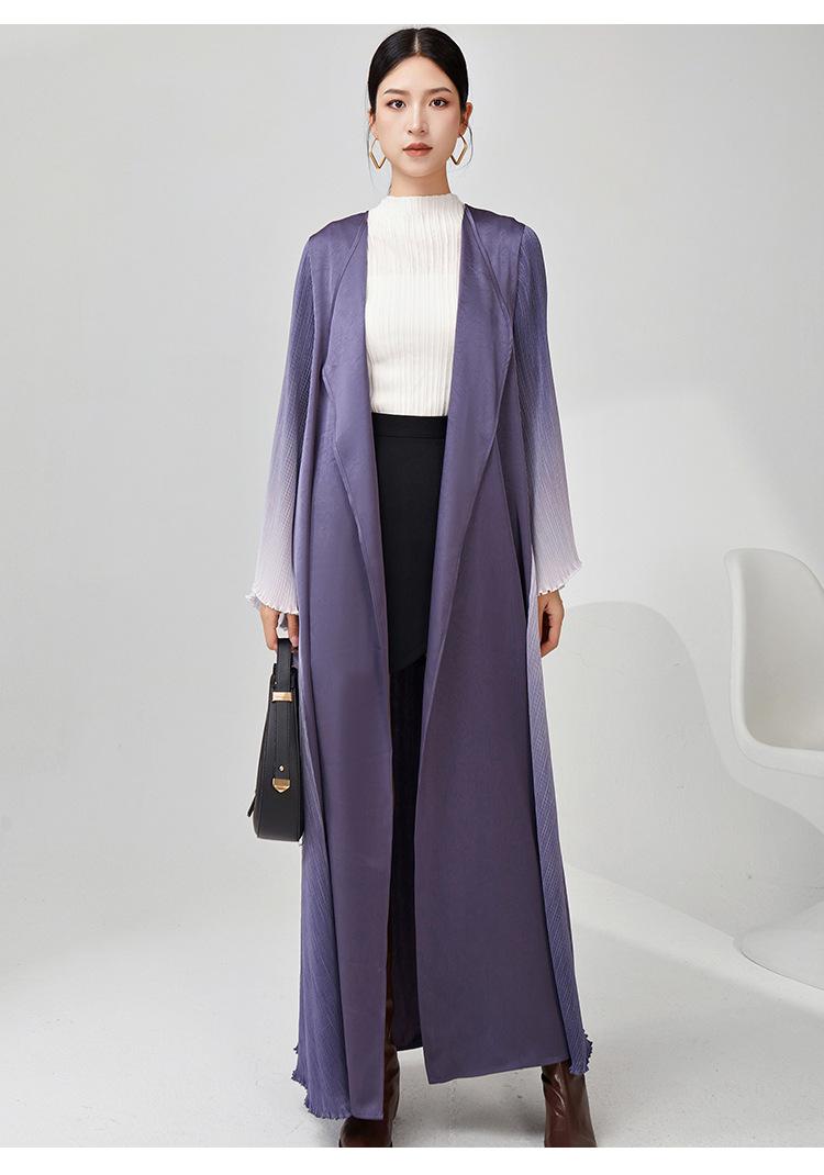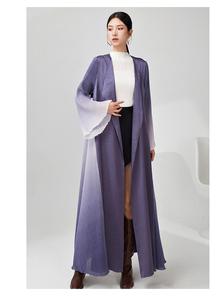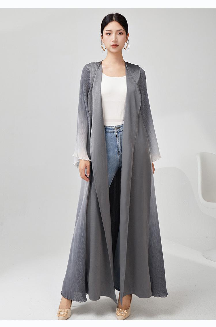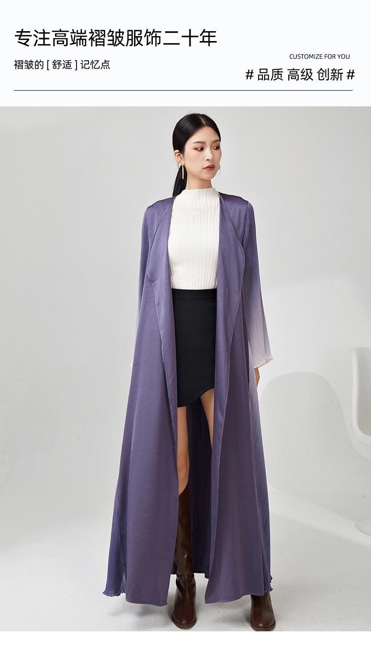 Rompevientos Miyake Otoño para Mujer Largo de Alta Gama Exportación Nuevo Degradado Suelto Ropa de Trabajo Versátil Chaqueta Exterior Estilo Extranjero