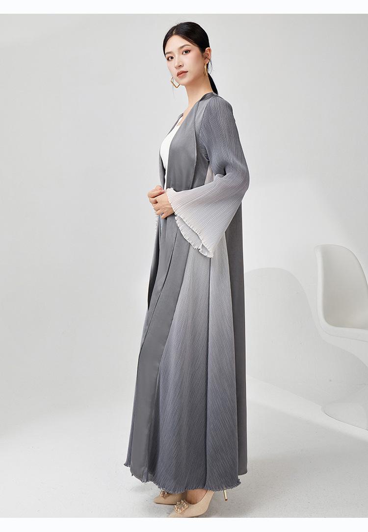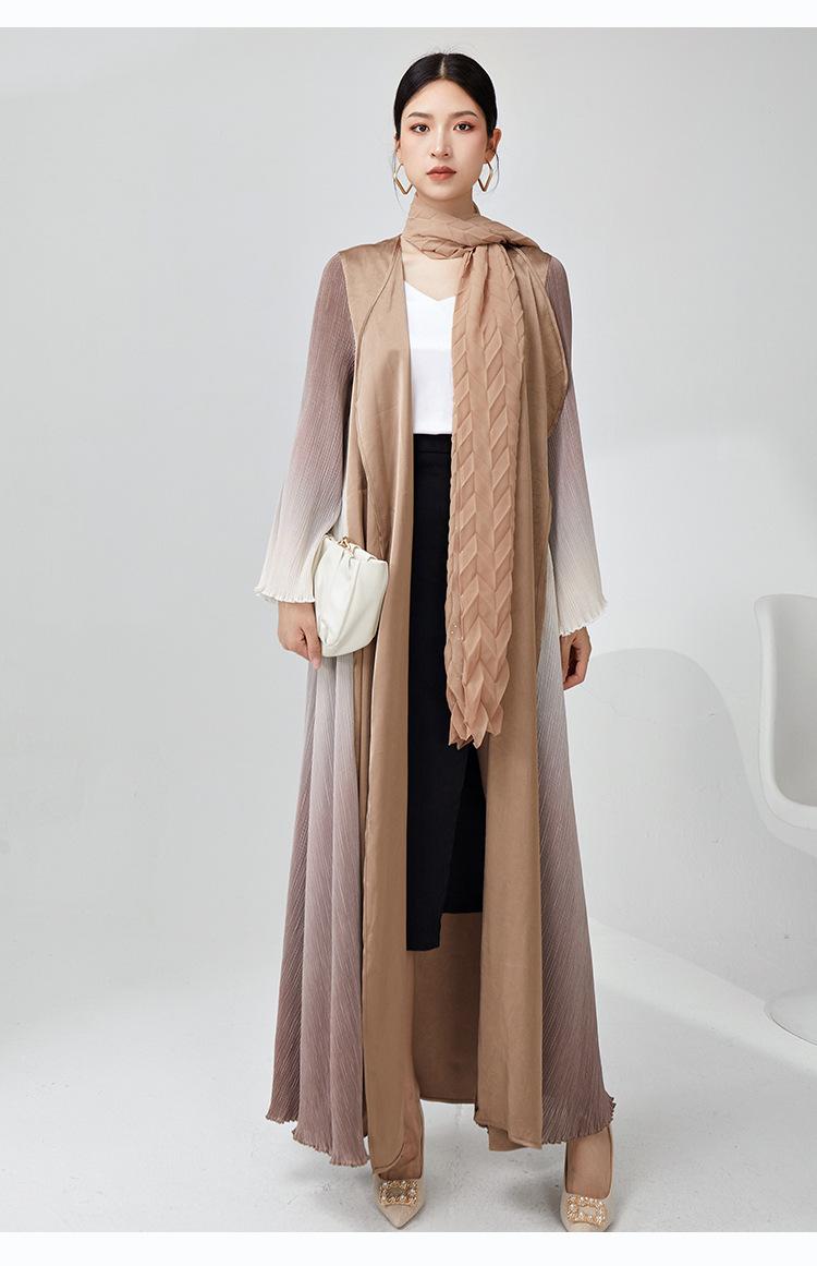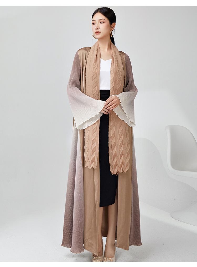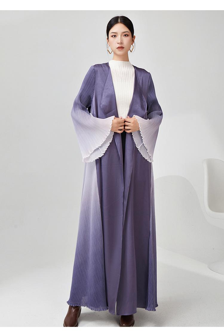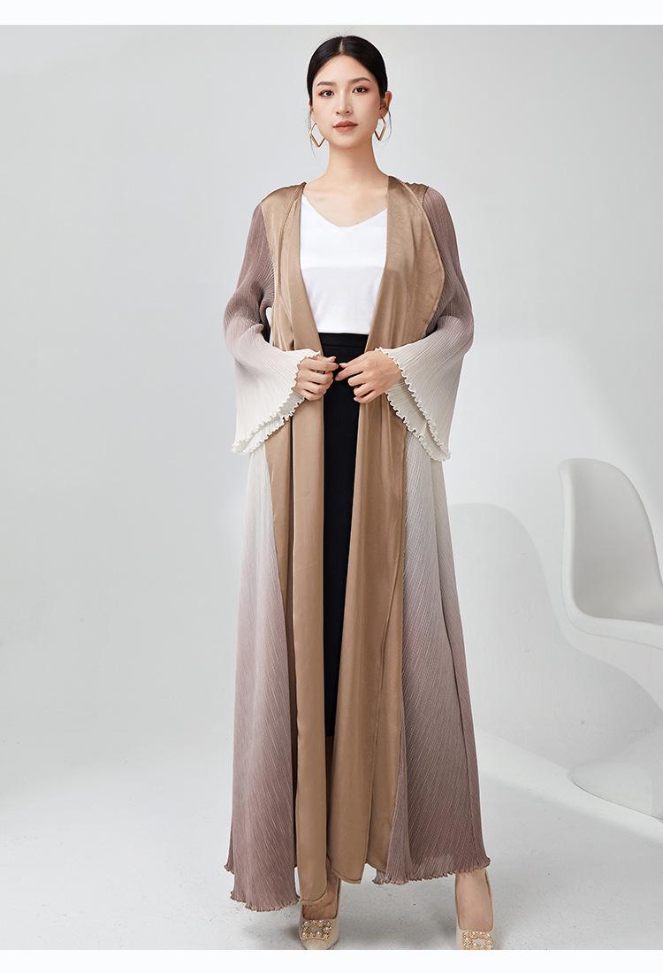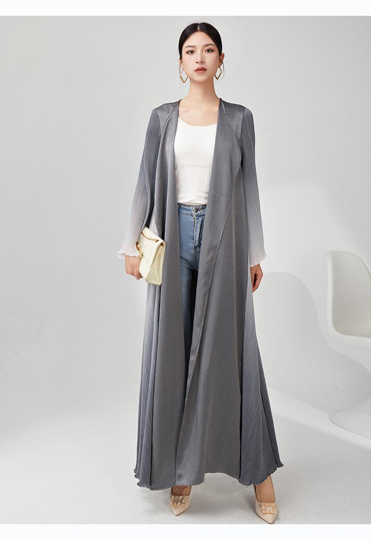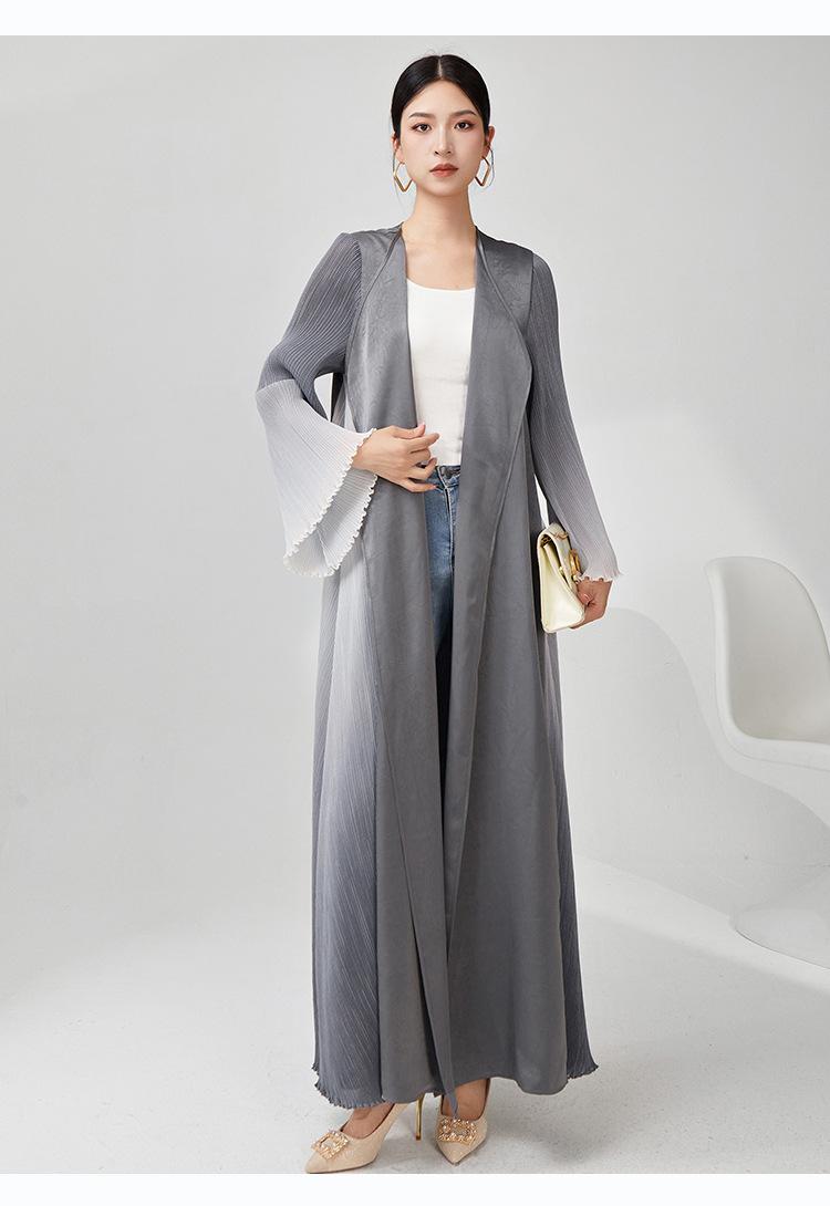 Rompevientos Miyake Otoño para Mujer Largo de Alta Gama Exportación Nuevo Degradado Suelto Ropa de Trabajo Versátil Chaqueta Exterior Estilo Extranjero