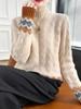 Lana Pura 2024 Otoño e Invierno Nuevo Cuello Alto Grueso Jacquard para Mujer Simple Suelto Cashmere Suéter Tejido Jersey