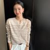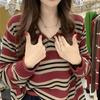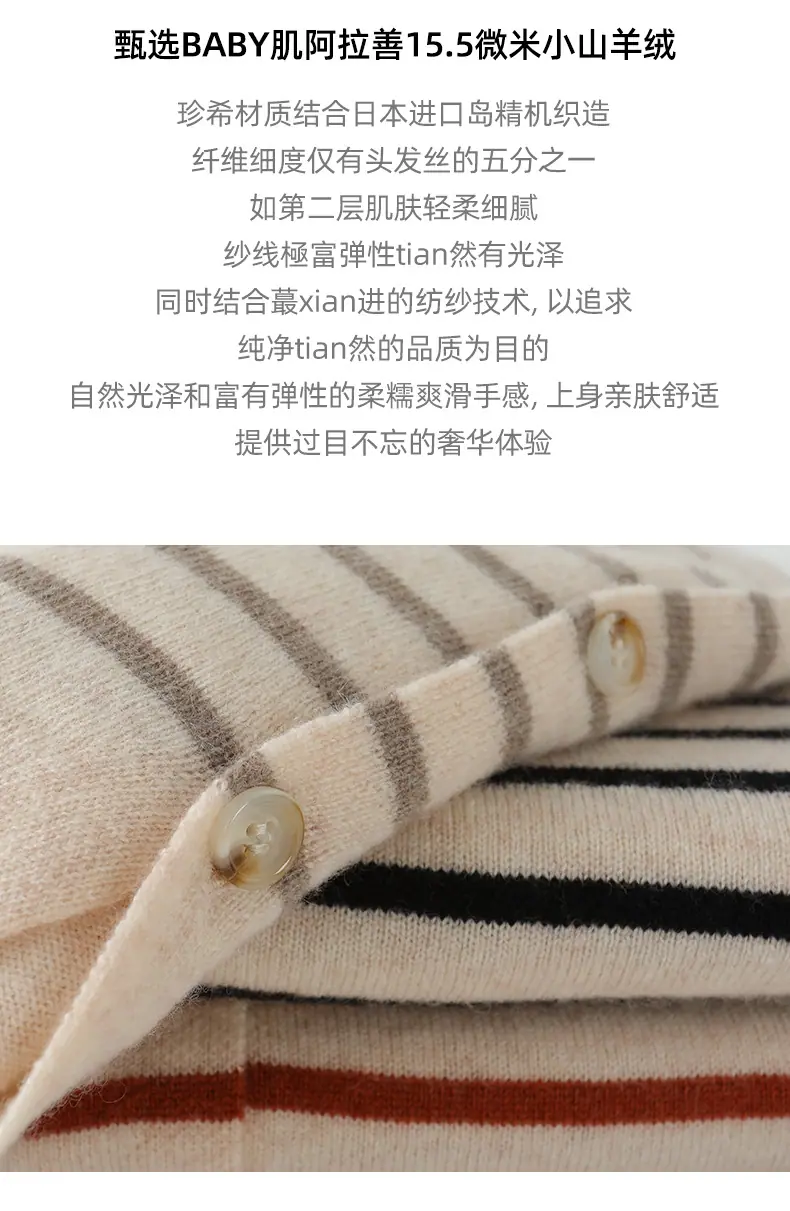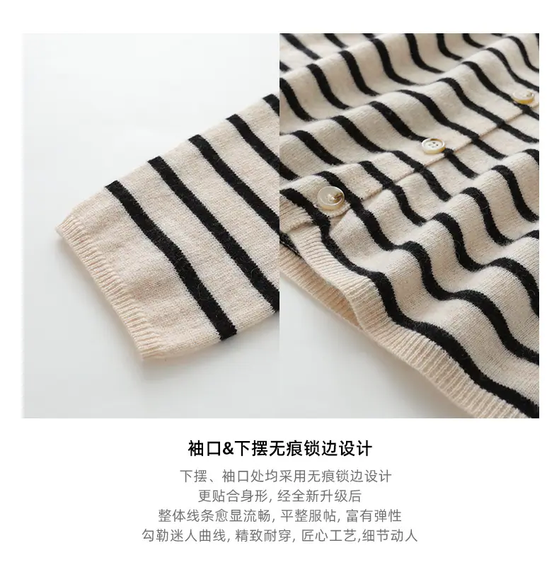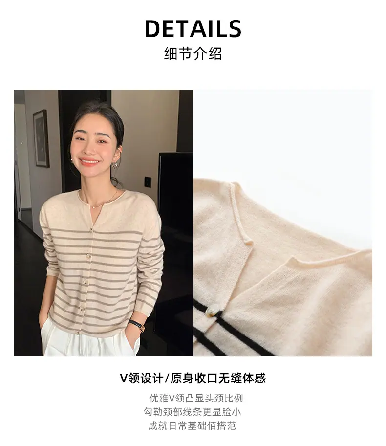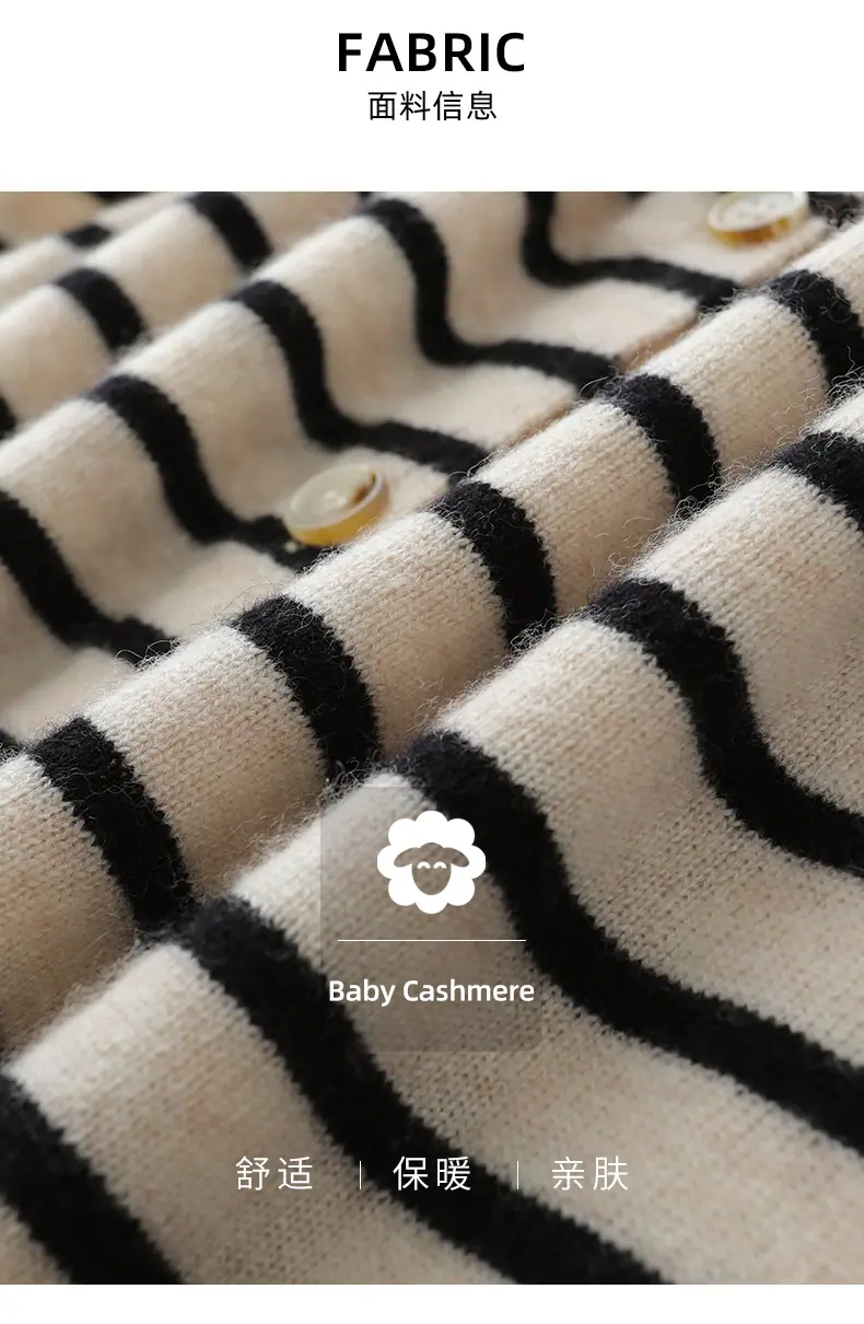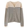 Cárdigan de Punto Rayado de Cuello Redondo para Mujer Otoño e Invierno 2025 Nuevo Estilo Casual Suéter Corto Tejido en Capas Cachemira Abrigo Pequeño