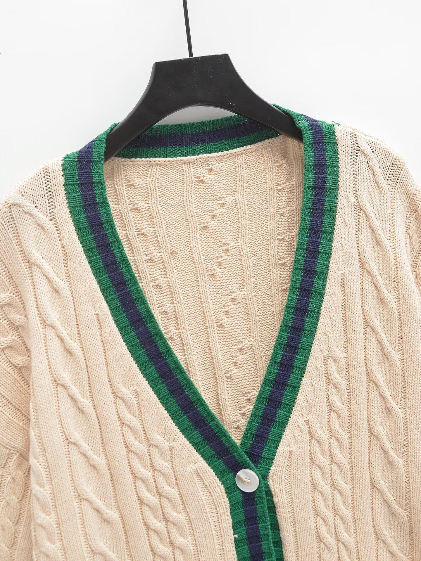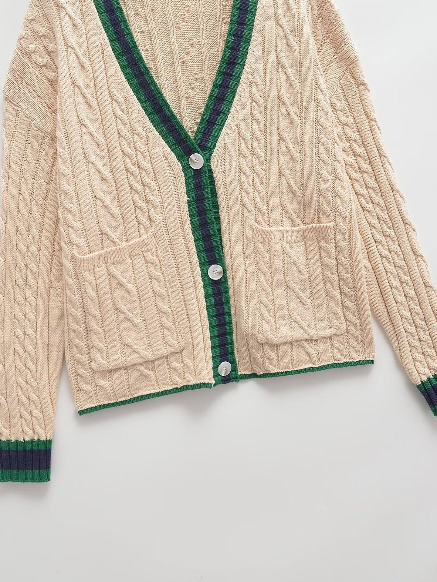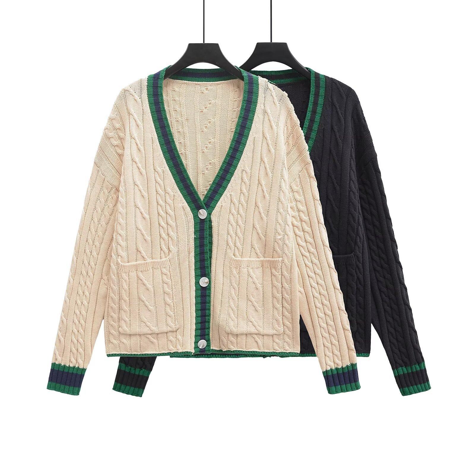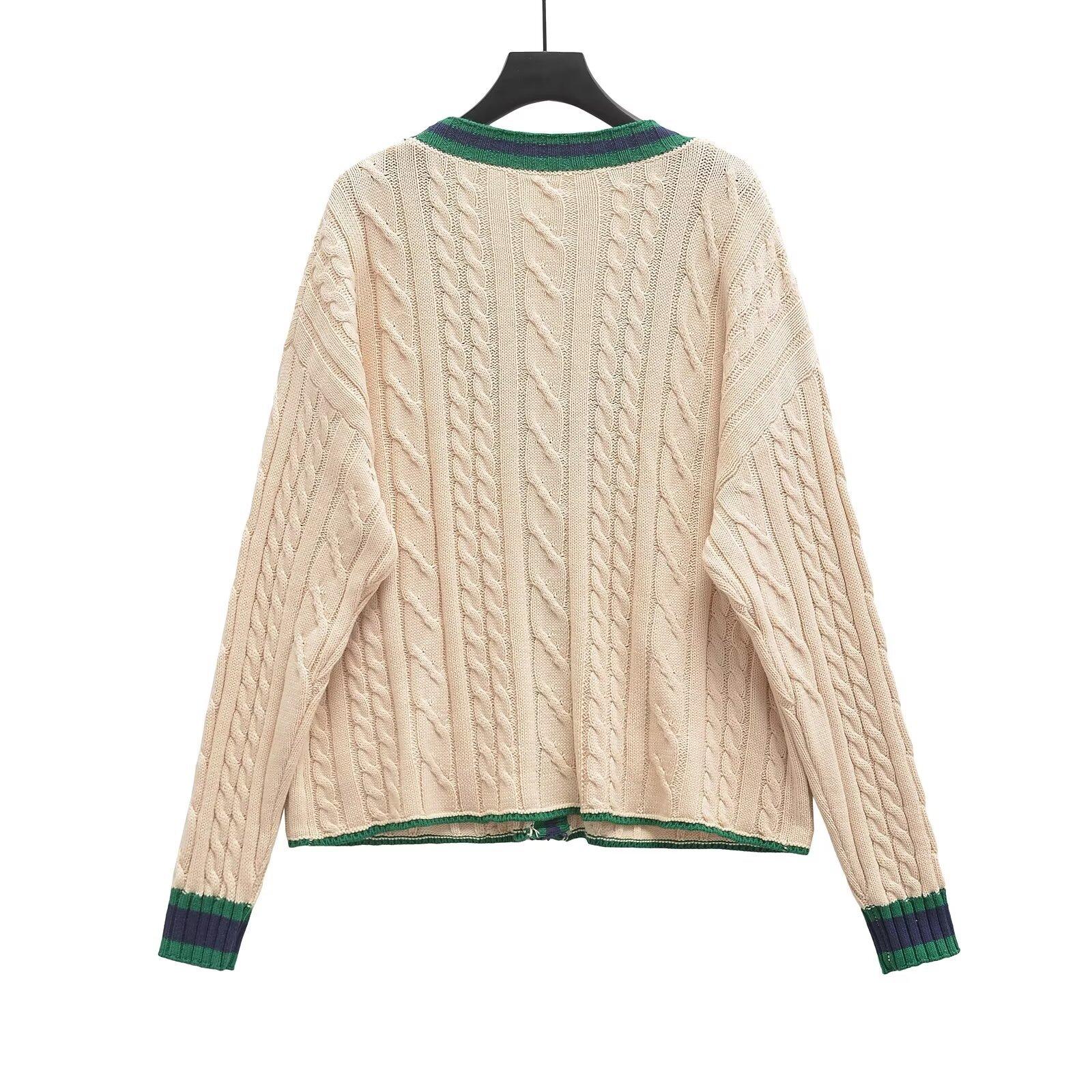 Ropa Europea y Americana Transfronteriza Aliexpress Ins Popular Patrón de Cable Cárdigan Suéter de Manga Larga Cómodo y Casual