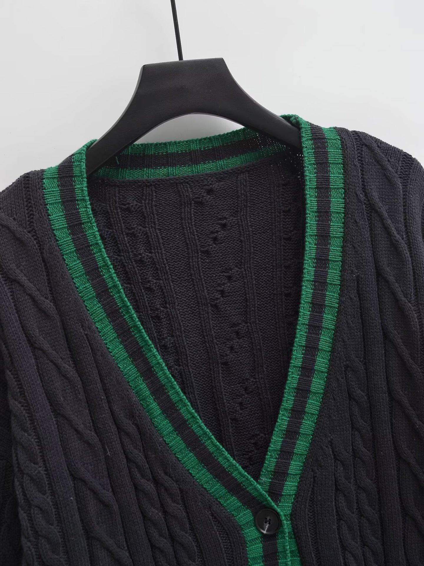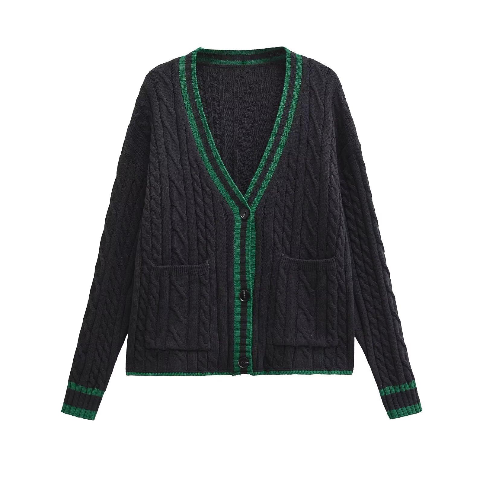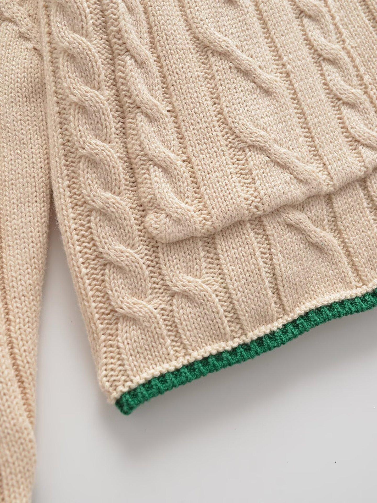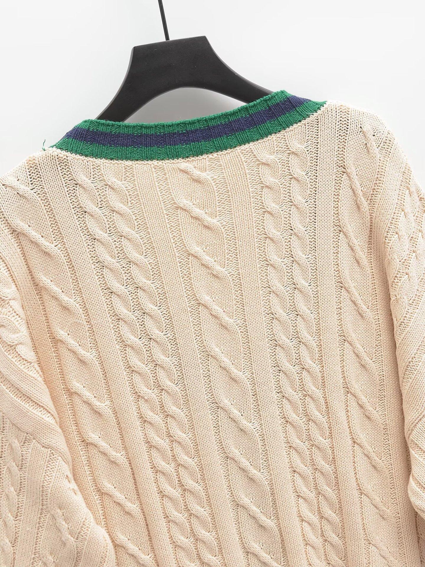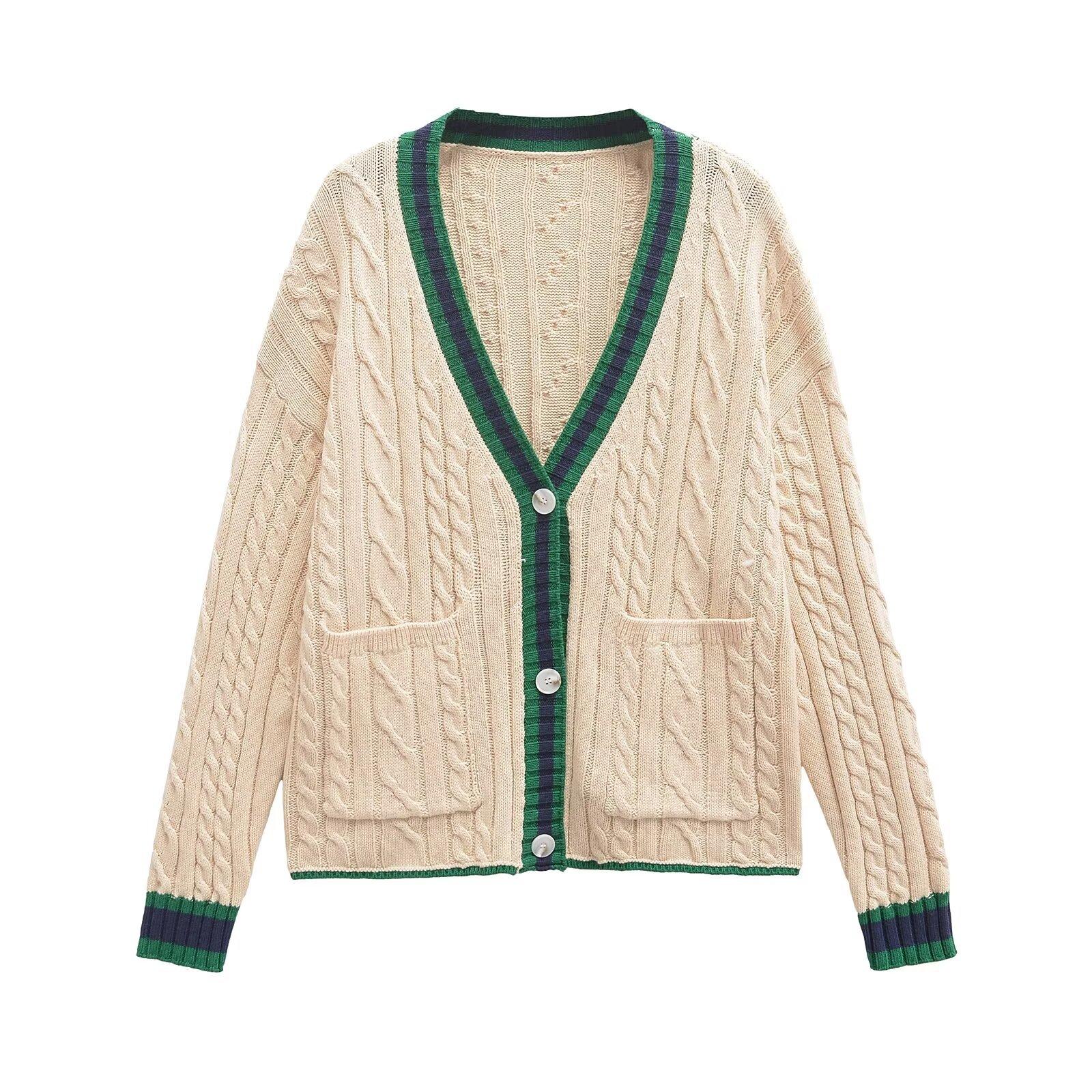 Ropa Europea y Americana Transfronteriza Aliexpress Ins Popular Patrón de Cable Cárdigan Suéter de Manga Larga Cómodo y Casual