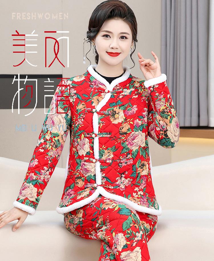 Nueva Chaqueta Vintage Acolchada de Algodón para Mujeres de Mediana Edad y Mayores, Abrigo de Algodón Floral Estilo Chino con Forro Polar para Madres