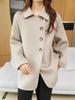 Abrigo de lana 100 % con solapa de doble cara para mujer, elegante, de longitud media, holgado, con cordones, para otoño e invierno.