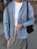 Moda Urbana Europea y Americana Chaqueta de Algodón Puro Azul con Solapa Primavera 2026 Simple Holgada Relajada Chaqueta Superior de Manga Larga