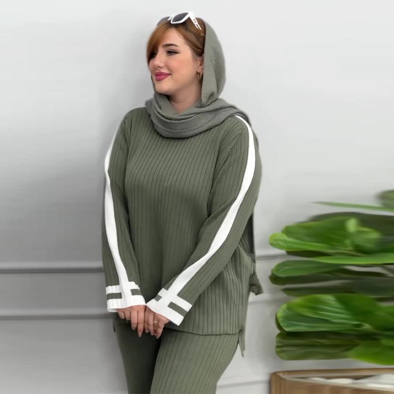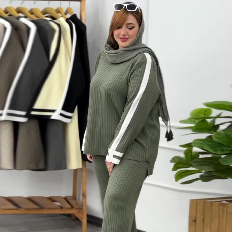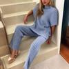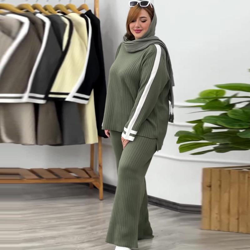 Otoño 2024 Nuevo Conjunto de Dos Piezas para Mujer Europeo y Americano Amazon Transfronterizo de Color Sólido Holgado Estilo Casual Camisa Tejida Pantalón