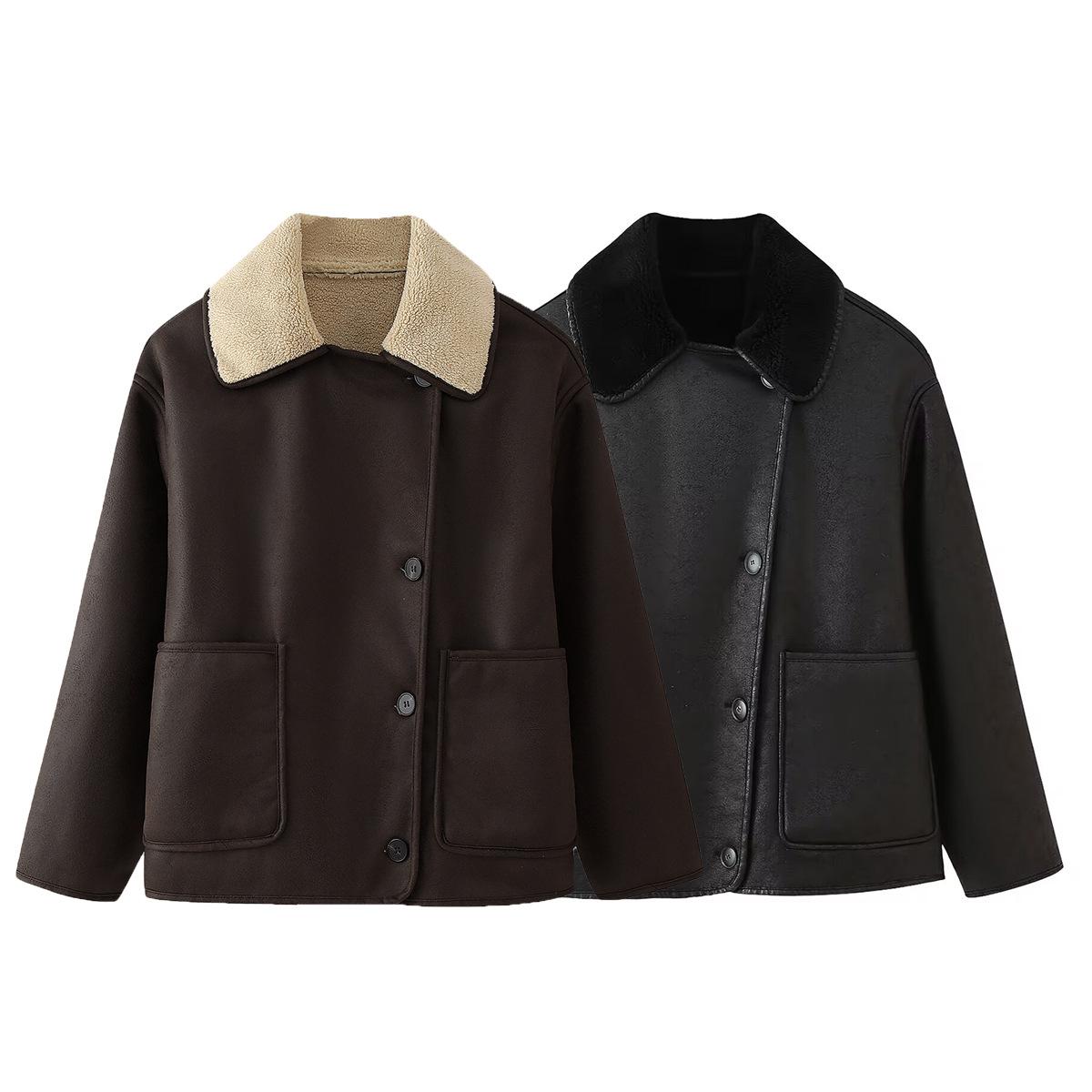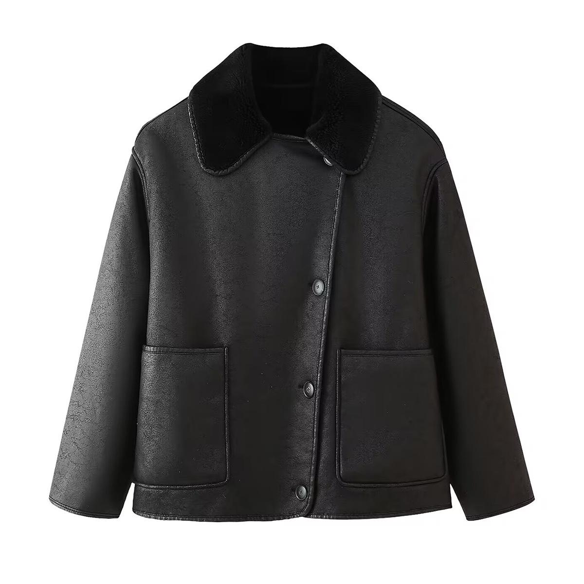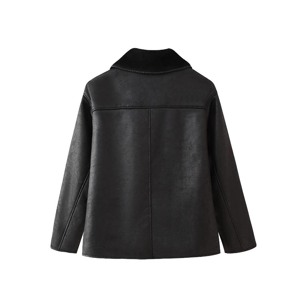 Abrigo de piel con solapa estilo europeo y americano, moda de otoño 2024, Amazon D16531 para mujer