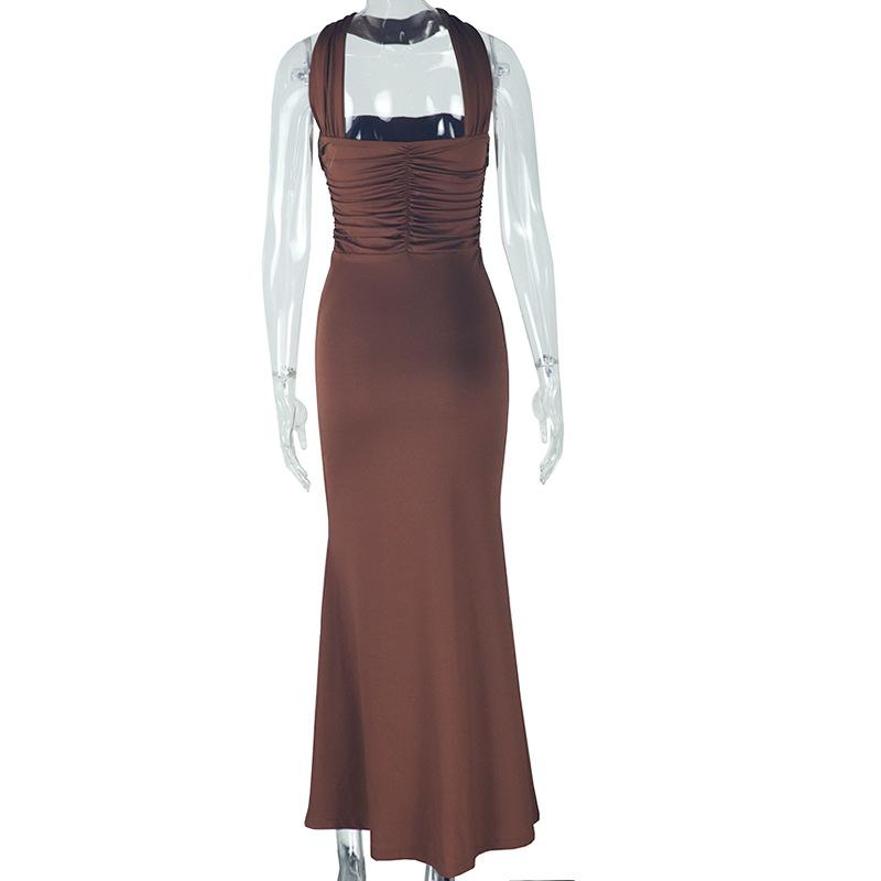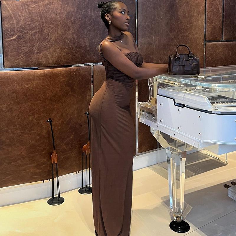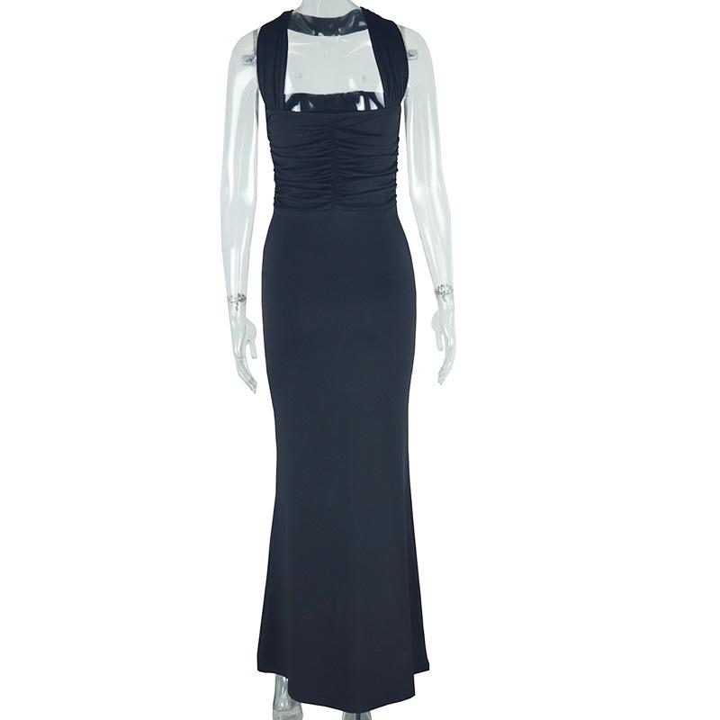 Vestido largo sin mangas con cuello y hombros descubiertos para mujer, estilo europeo y americano, moda de comercio exterior, color liso