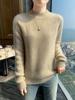 Suéter feminino de cashmere torcido quente, grosso, manga comprida, outono e inverno, solto, uso externo, meia gola alta, camisa de base de lã