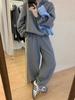 Conjunto de dos piezas de sudadera con capucha y pantalón informal de forro polar grueso, estilo coreano chic para mujer, invierno, G1097