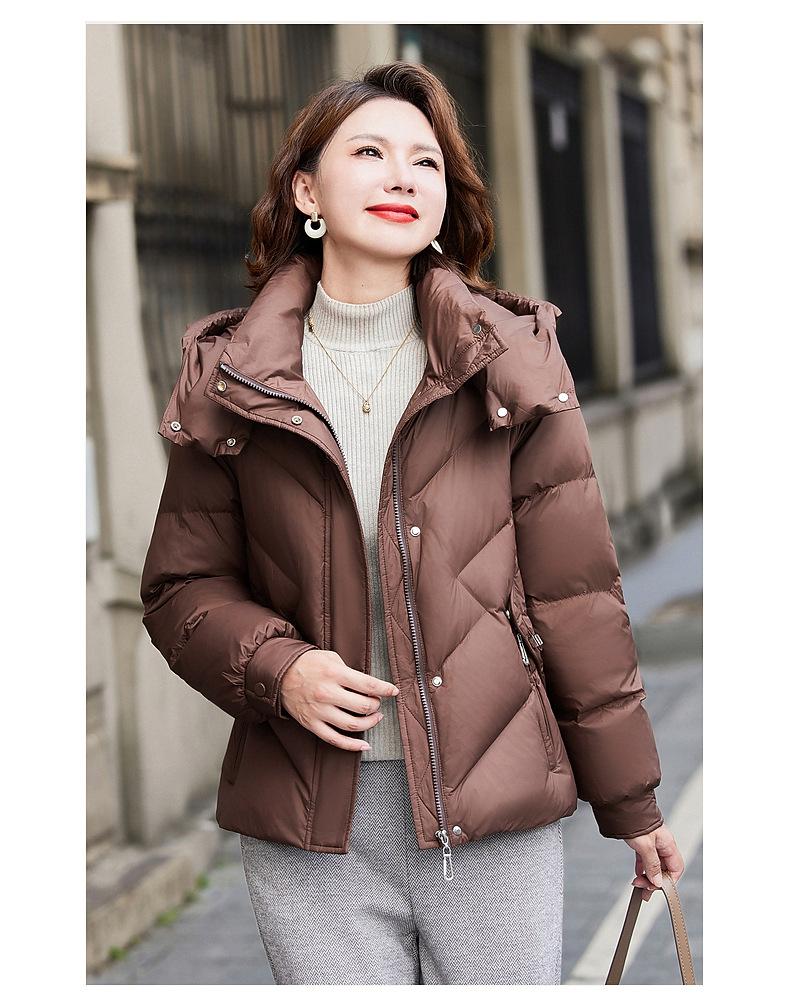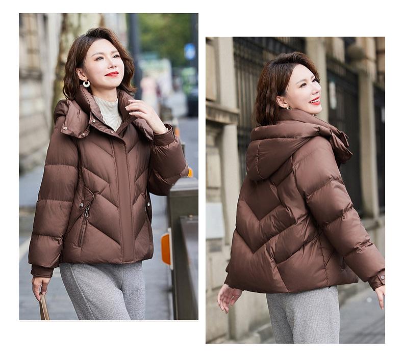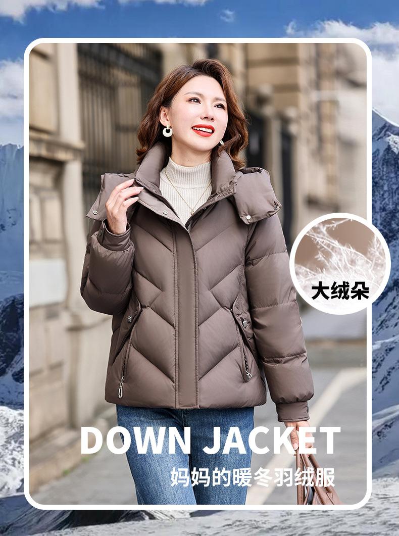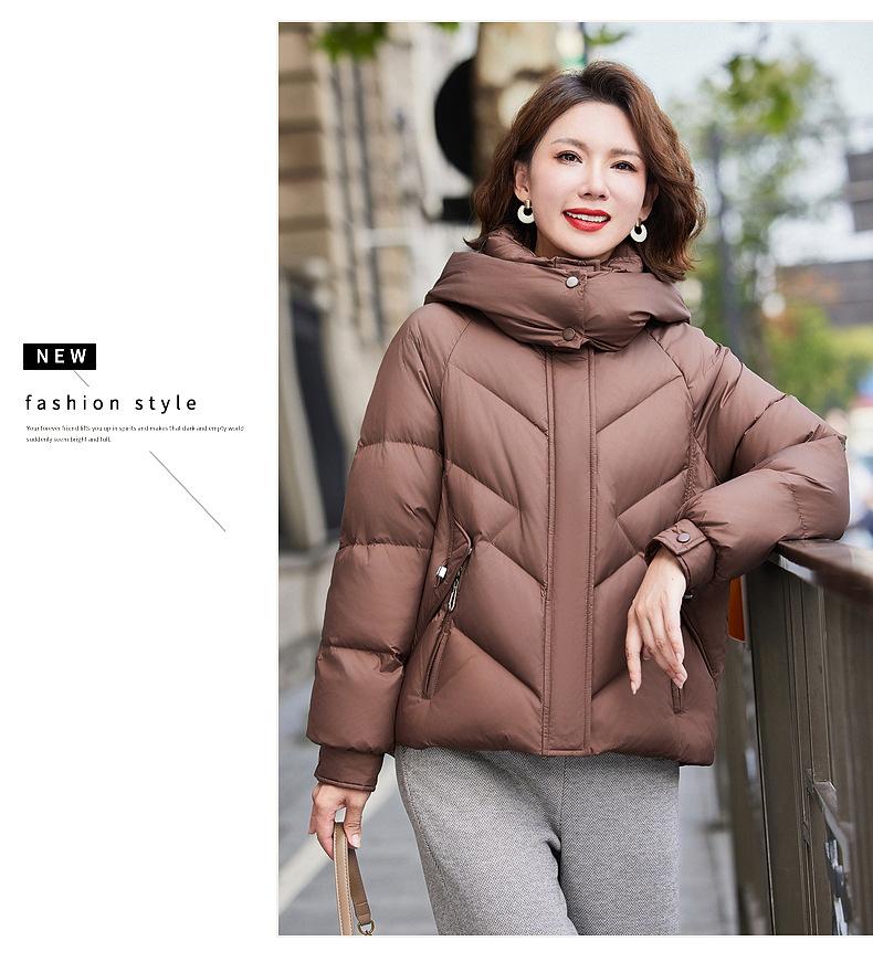 Chaqueta de plumón para mujer, corta, para madre, 2024, nueva, para mediana edad y mayores, gruesa, de plumón de pato blanco, cálida, de fábrica.