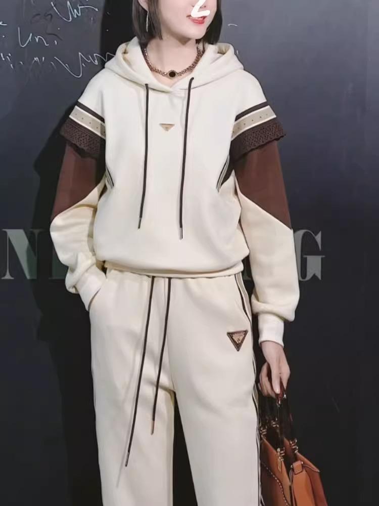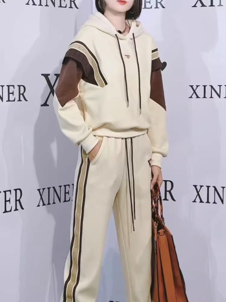 Conjunto de dos piezas de sudadera con capucha de terciopelo de estilo nuevo de primavera y otoño, moderno, traje deportivo casual coreano para mujer