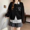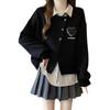 Sudadera de Manga Larga con Cuello Polo de Parche a Rayas de Dos Piezas Falsas para Primavera, Talla Grande para Mujeres Ligeramente Gorditas, Cubre el Vientre, Top Moderno y Elegante