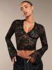 Top Elegante Transparente de Encaje con Escote en V de Manga Larga Ajustado de Color Sólido Sexy para Mujer, Transfronterizo Europeo y Americano, Primavera 2026