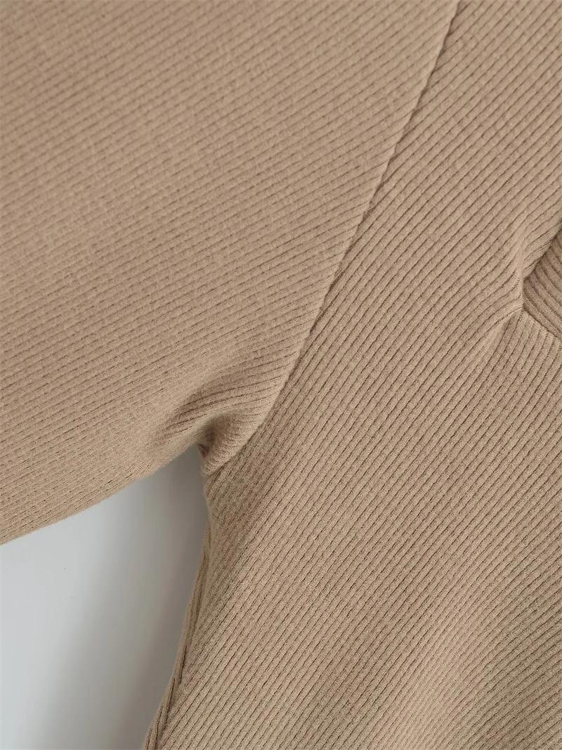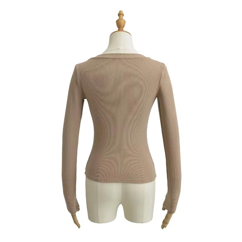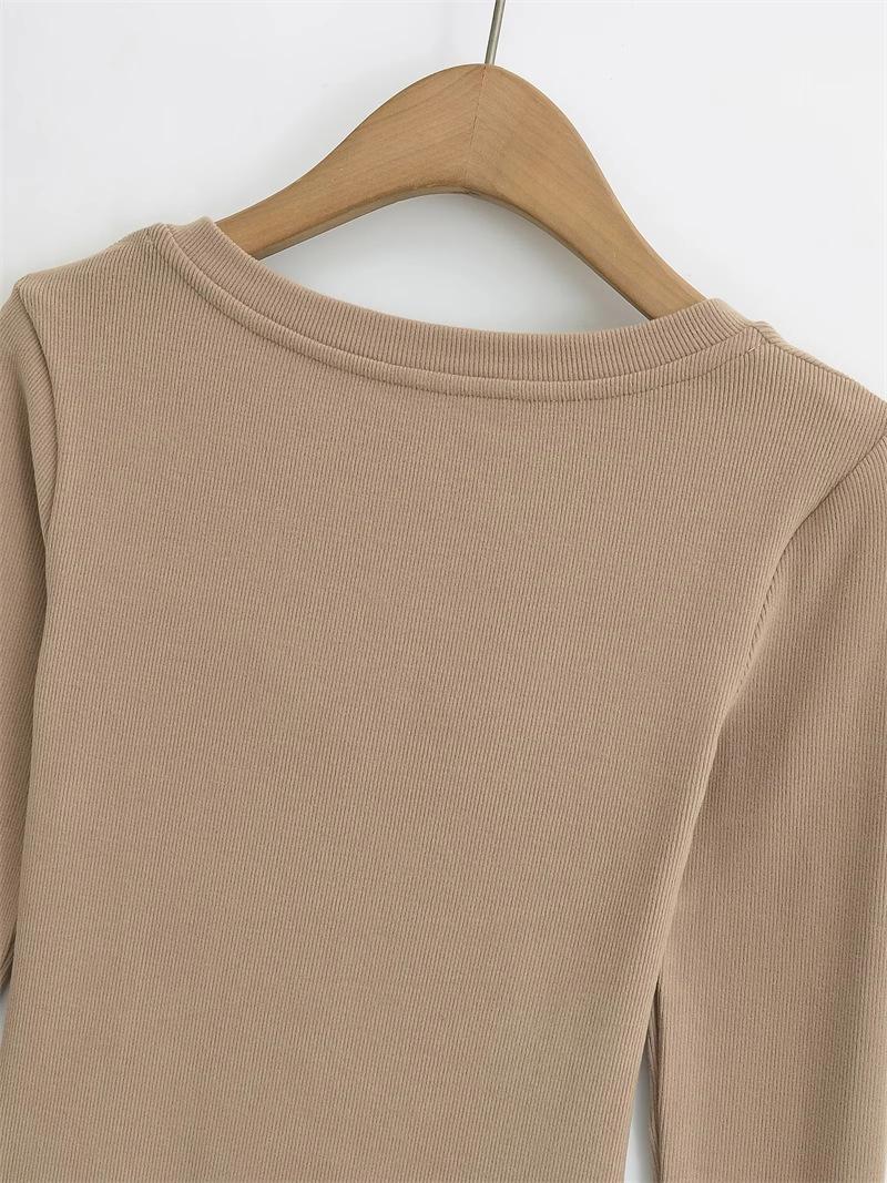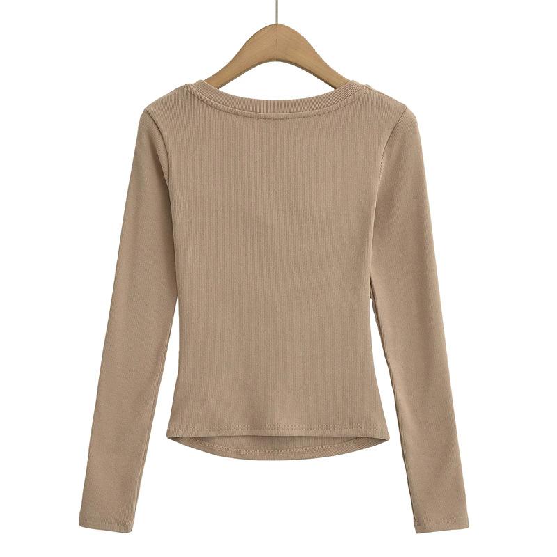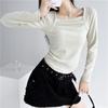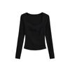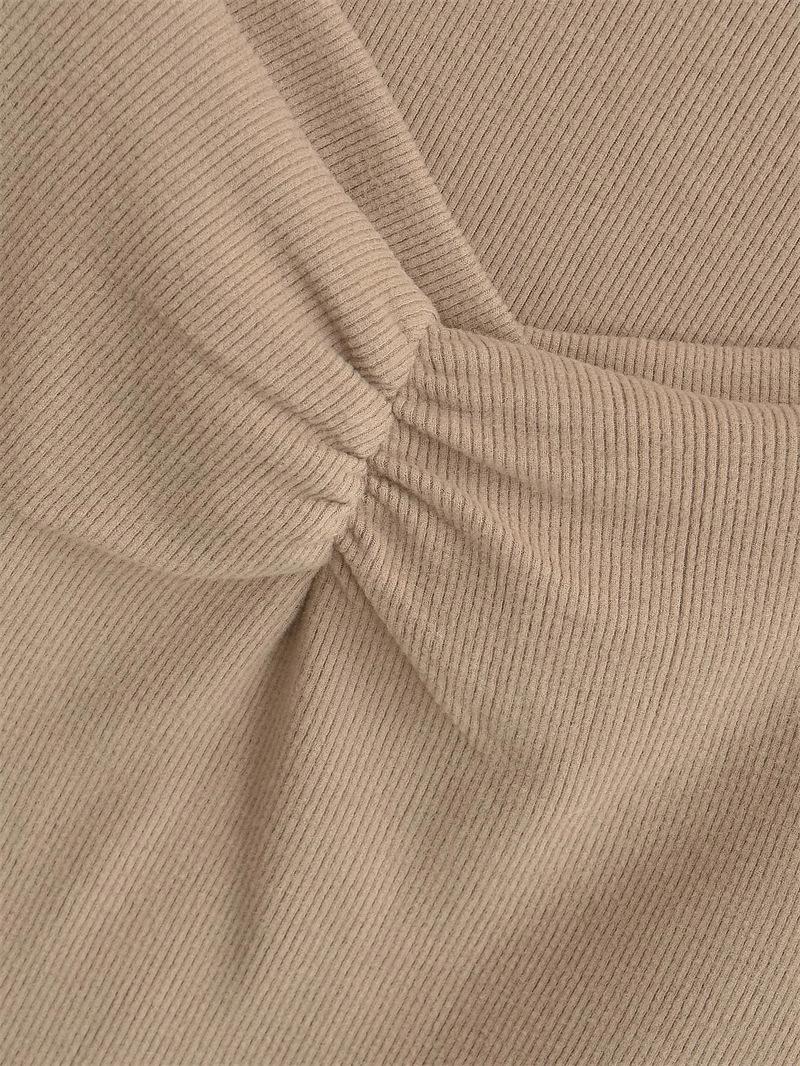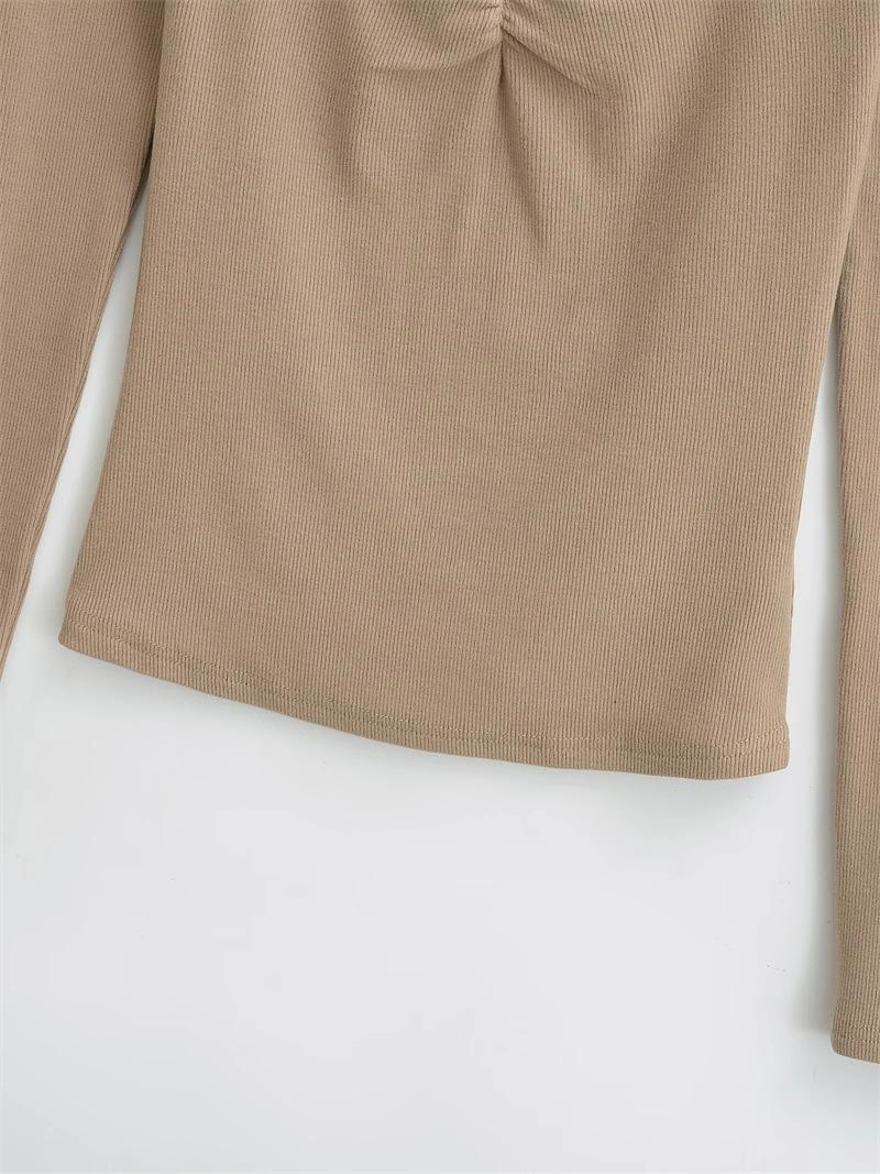 Camiseta de manga larga plisada en el pecho con cuello cuadrado estilo Pure Desire para mujer, estilo francés, estilo retro, dobladillo ajustado, curvado.