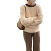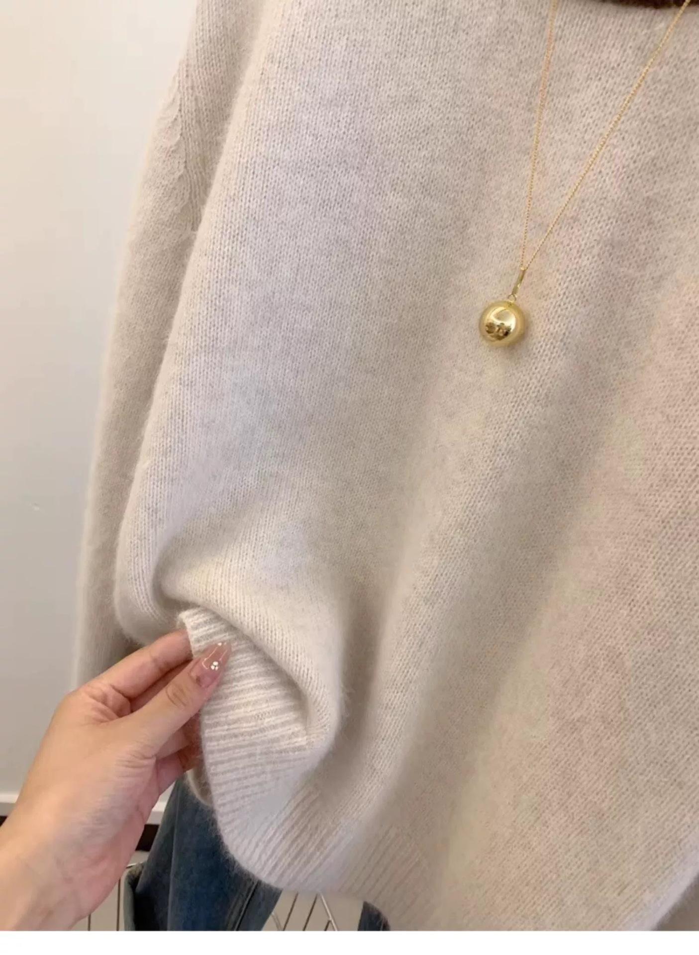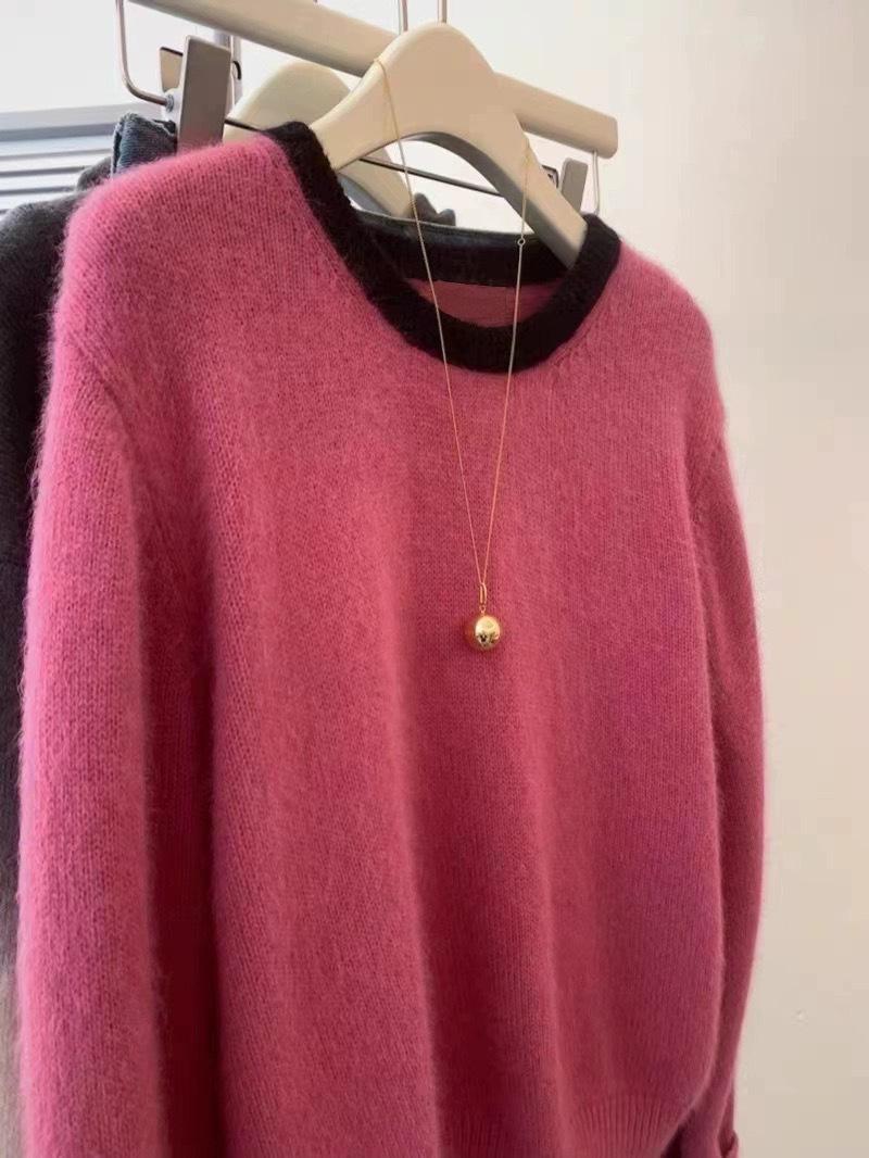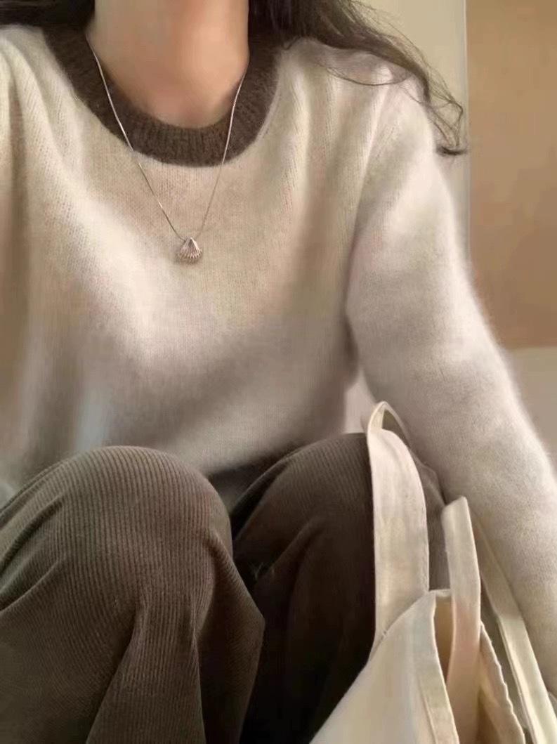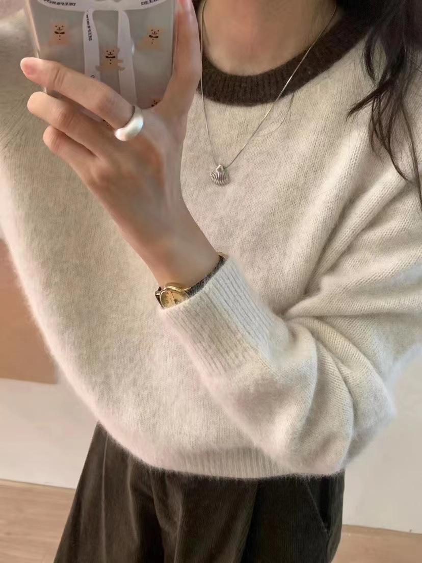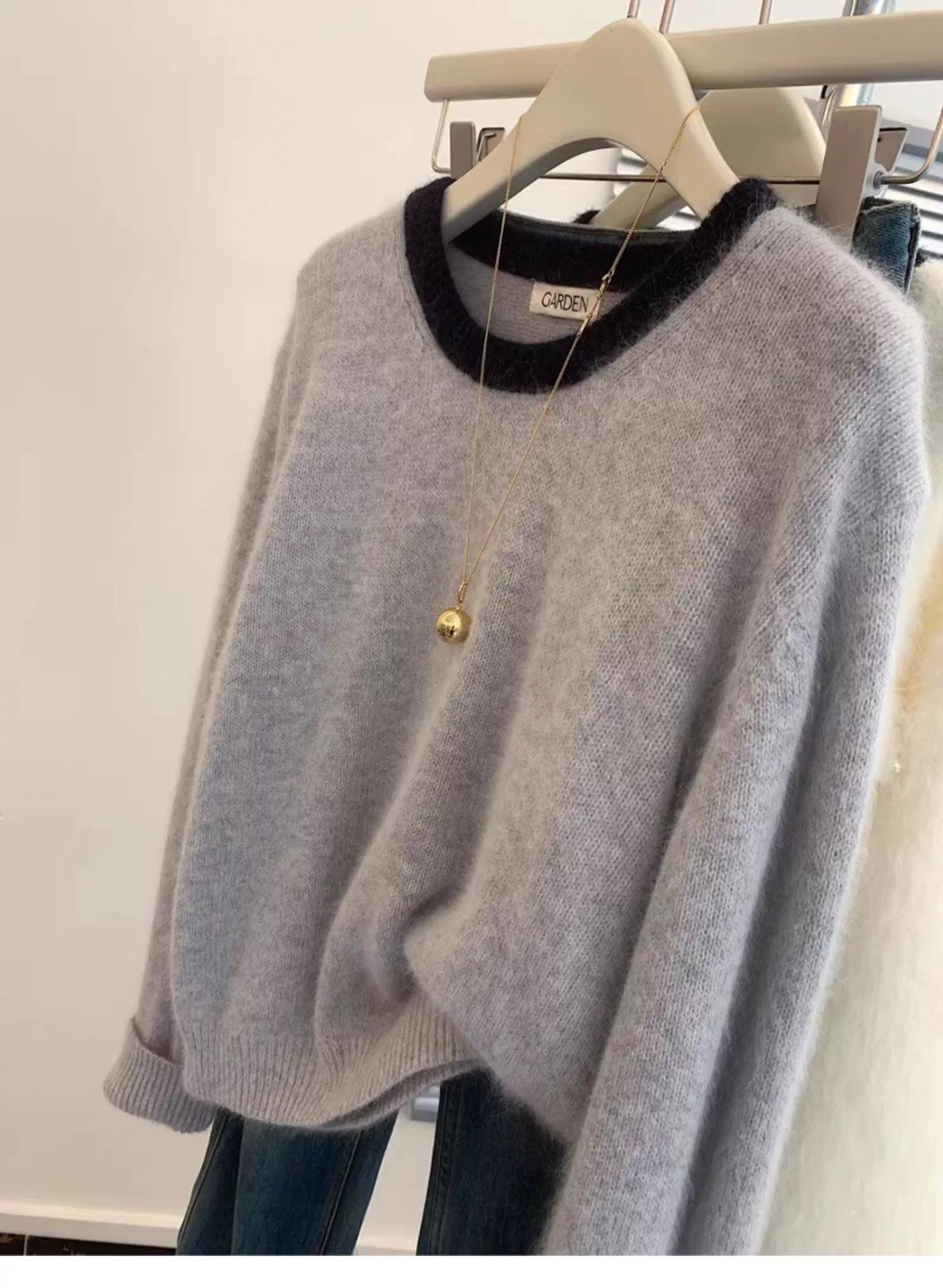 Versión coreana del nuevo suéter grueso de otoño e invierno 2024 para mujer, suéter de base de cachemira en contraste con cuello redondo, suéter al por mayor