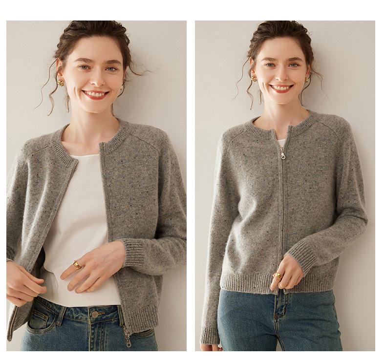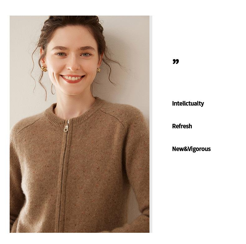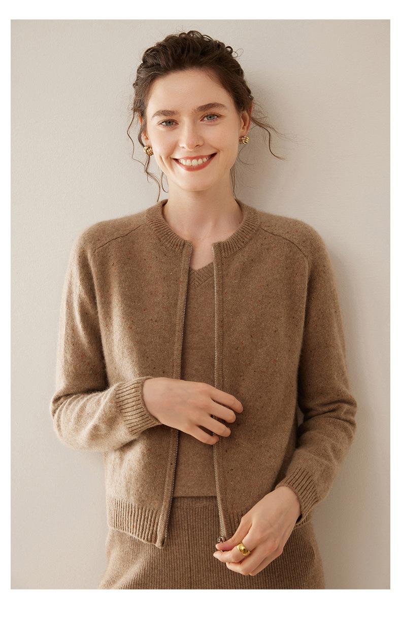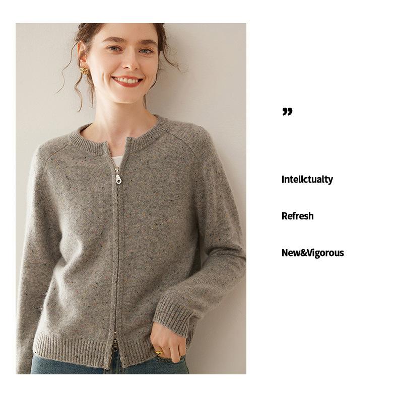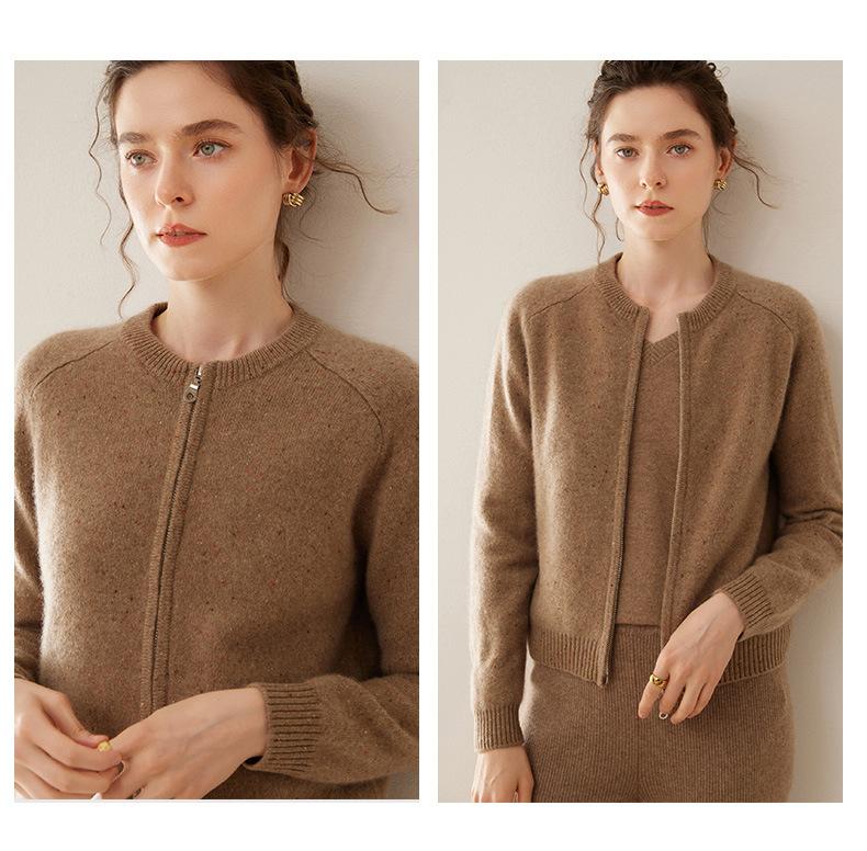 Cárdigan de punto de cachemira para mujer, chaqueta de manga larga con cremallera, holgada, elegante, informal, sencilla y a la moda, para otoño e invierno.