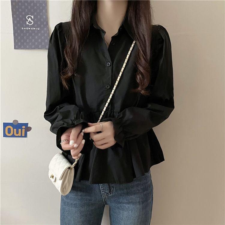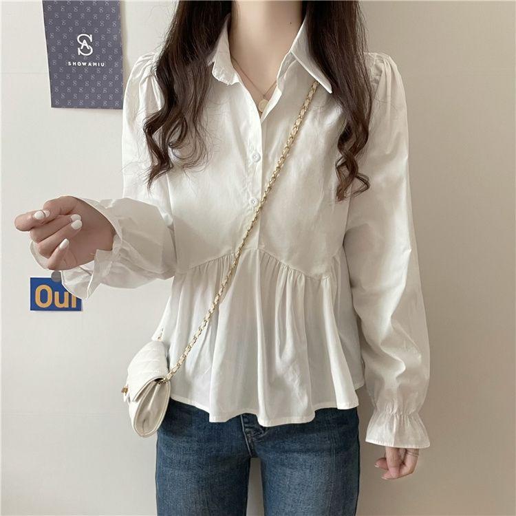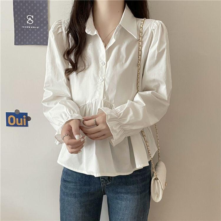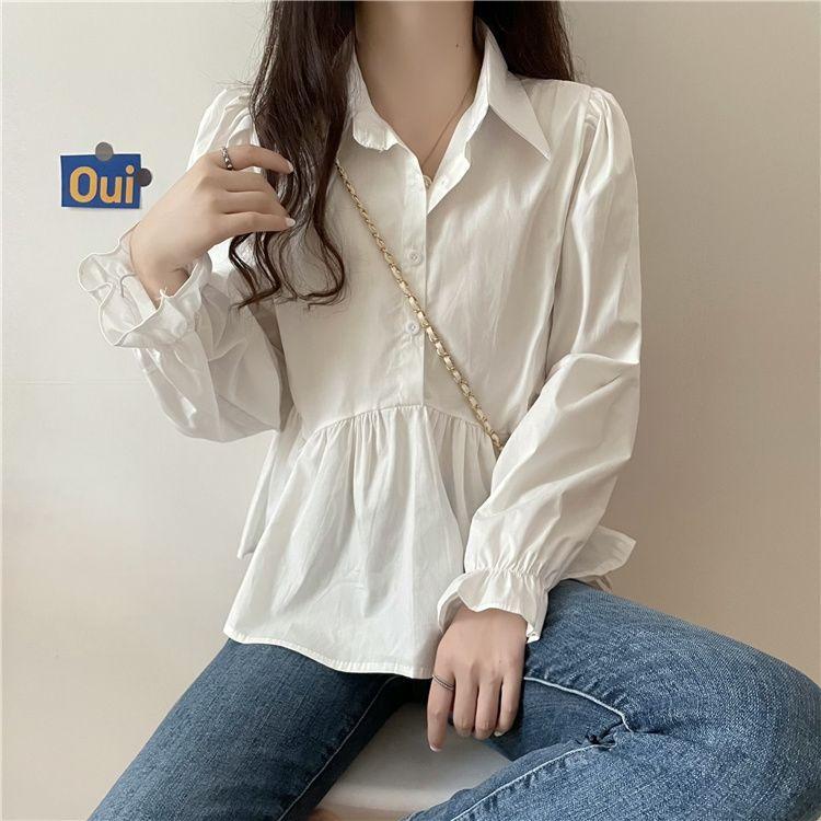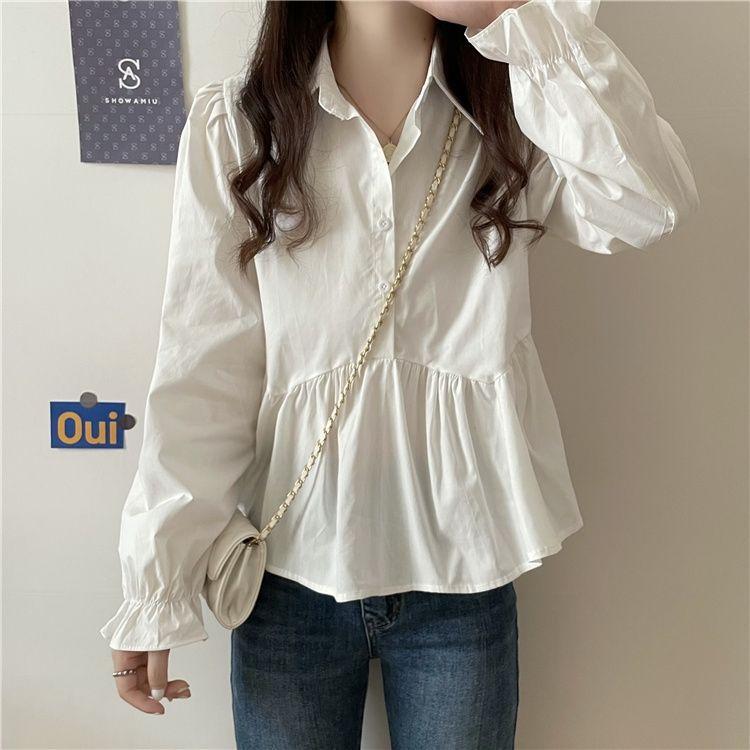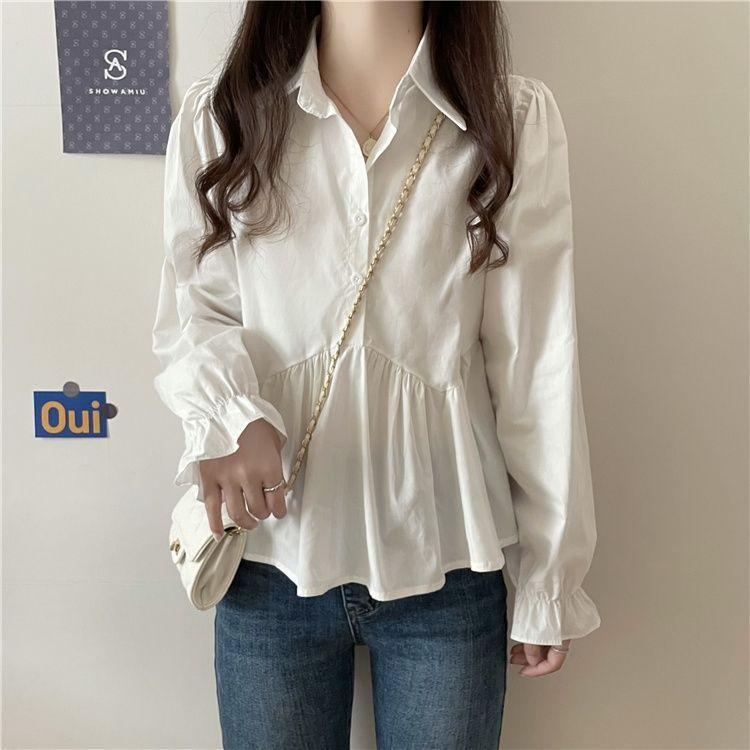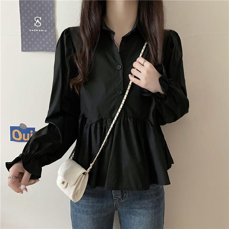 Otoño 2025 Nuevo Diseño Nicho Camisa de Moda con Volantes de Manga Larga Petite Top Estilo Corto para Mujer
