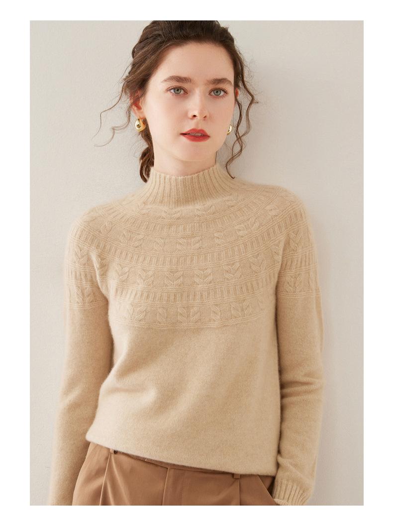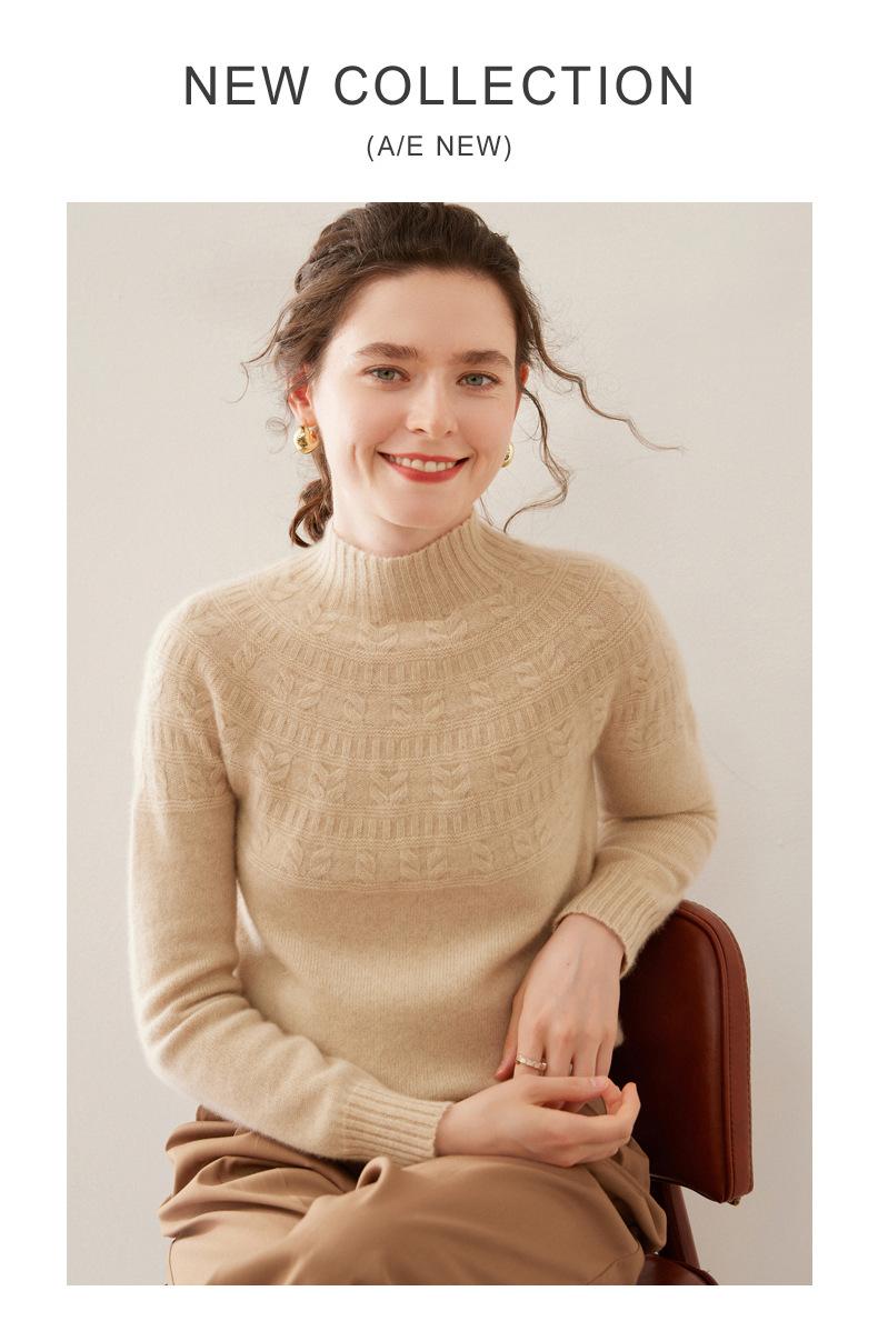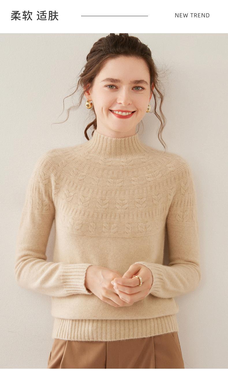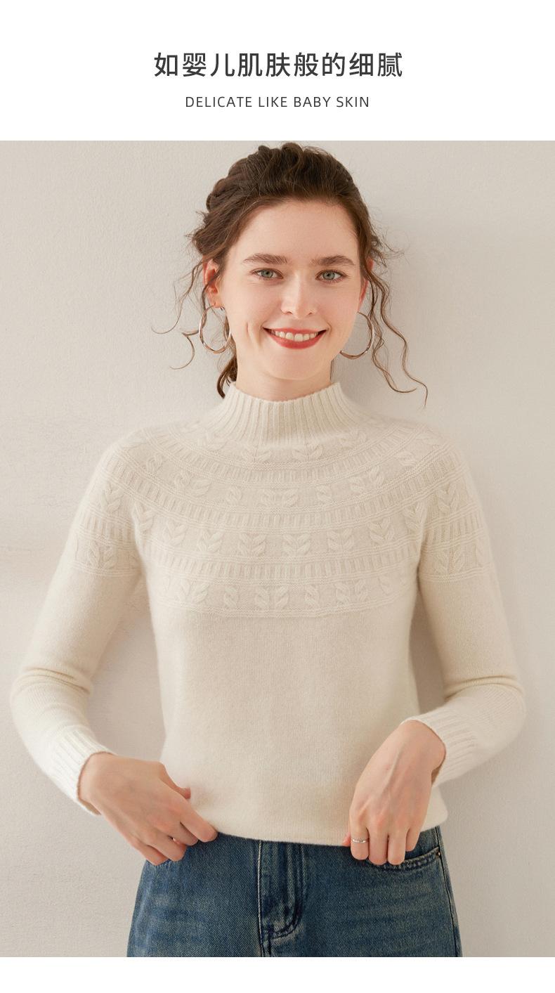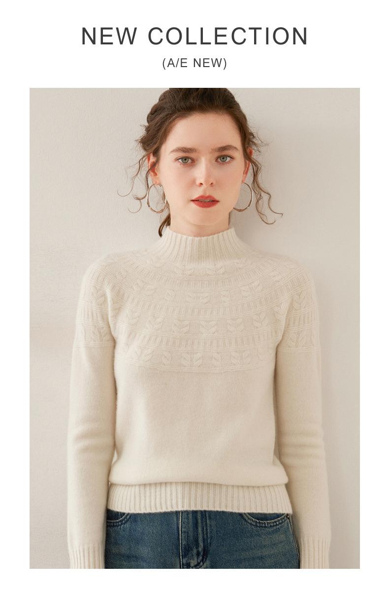 Ropa de Vanguardia Suéter de Punto de Cachemira para Mujer con Cuello Medio Alto con Flor Torcida Elegante para Viaje Casual Simple de Color Sólido Base