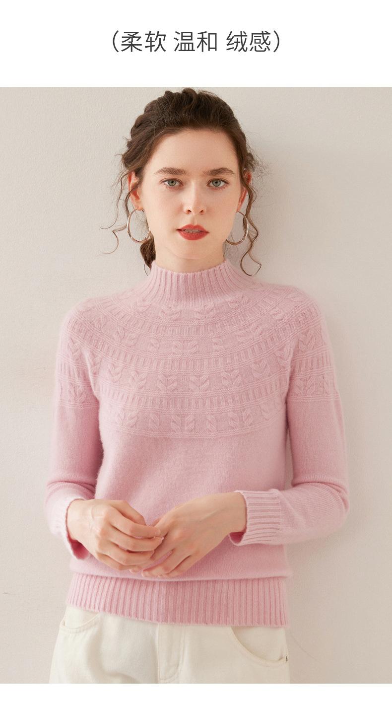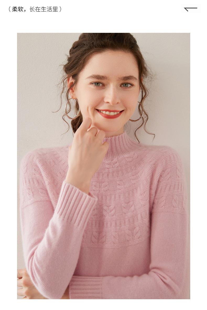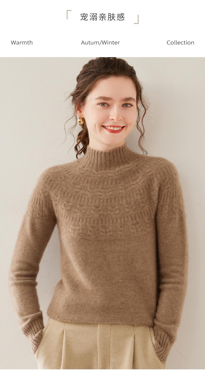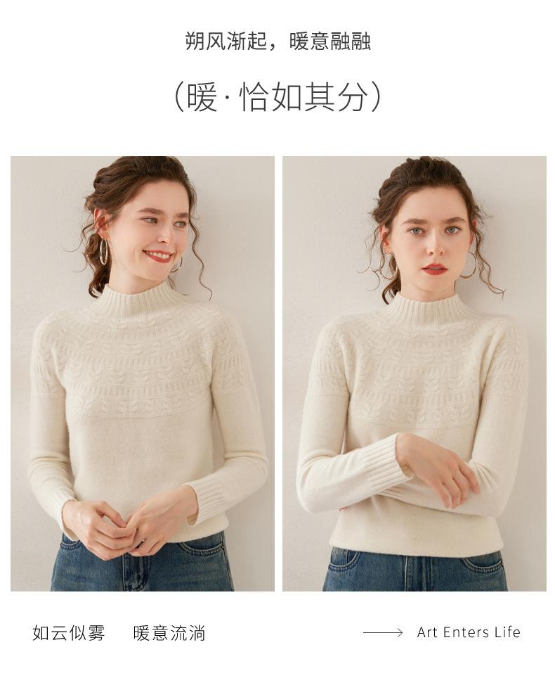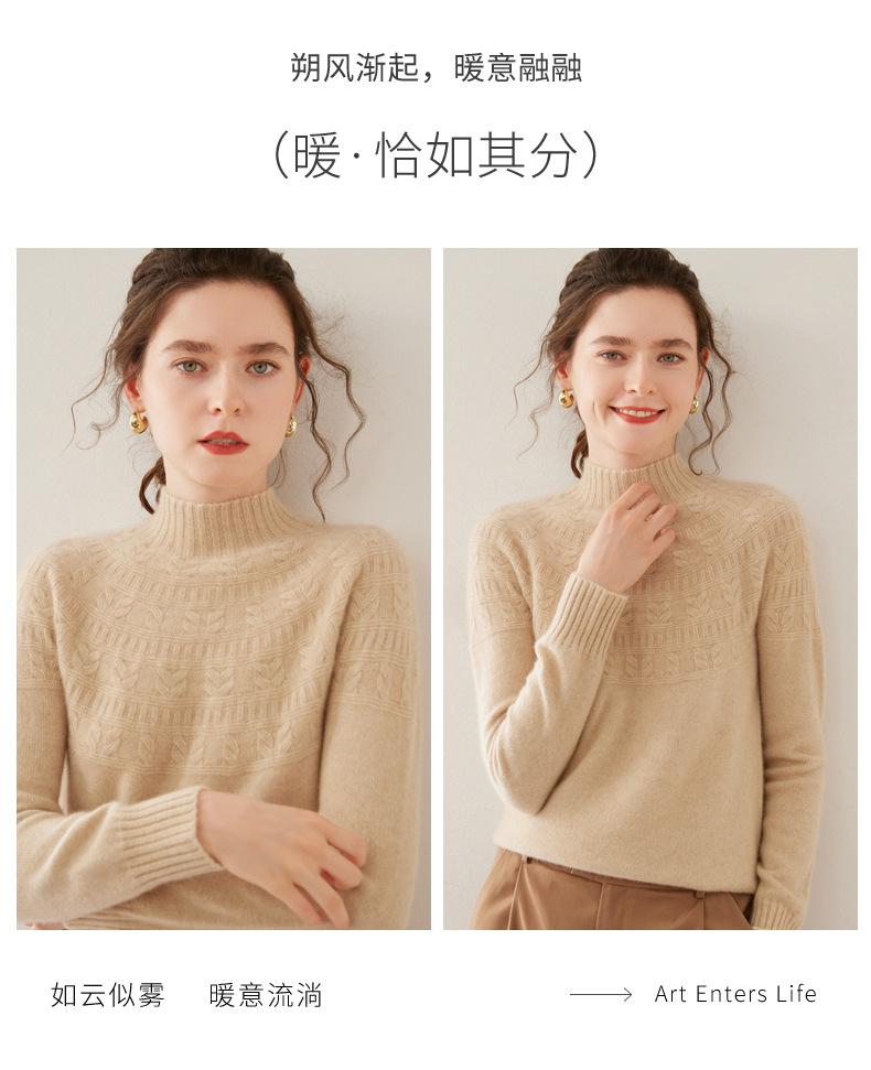 Ropa de Vanguardia Suéter de Punto de Cachemira para Mujer con Cuello Medio Alto con Flor Torcida Elegante para Viaje Casual Simple de Color Sólido Base