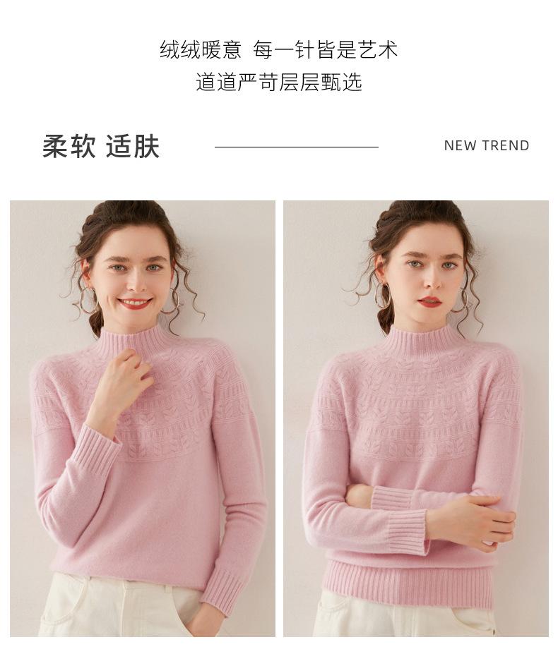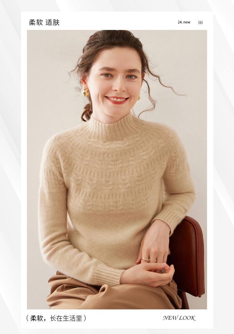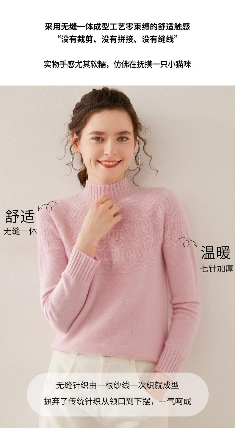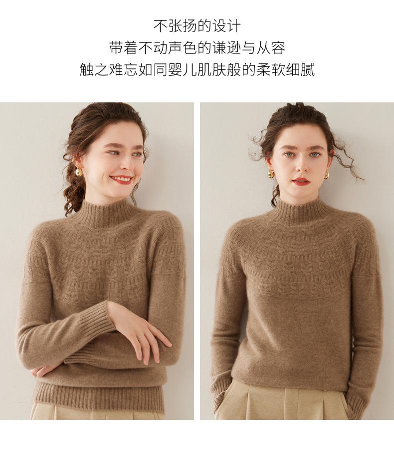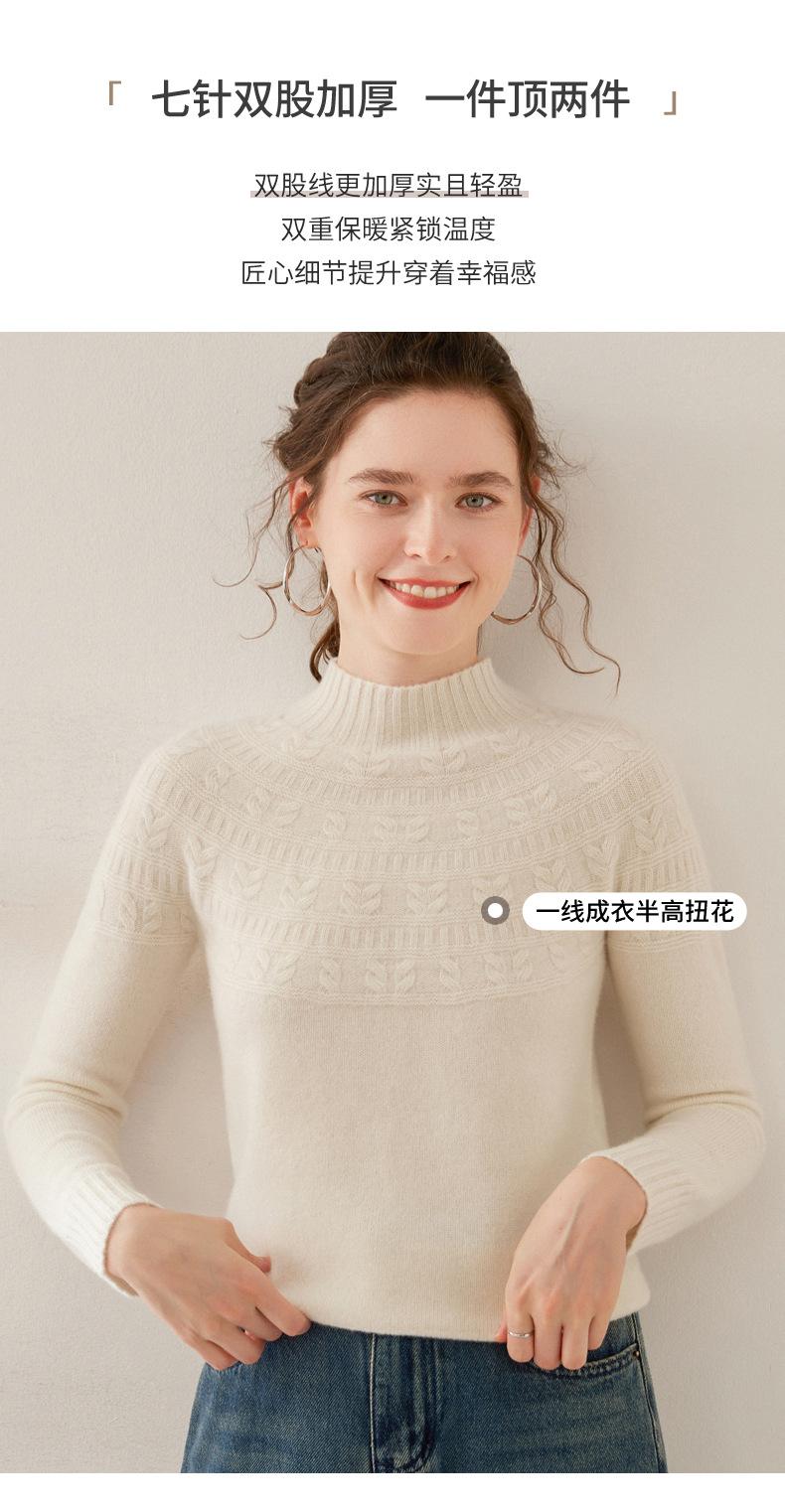 Ropa de Vanguardia Suéter de Punto de Cachemira para Mujer con Cuello Medio Alto con Flor Torcida Elegante para Viaje Casual Simple de Color Sólido Base