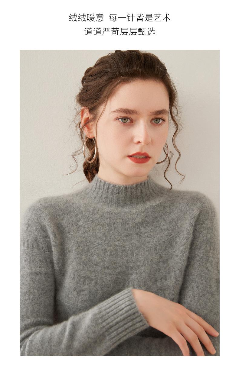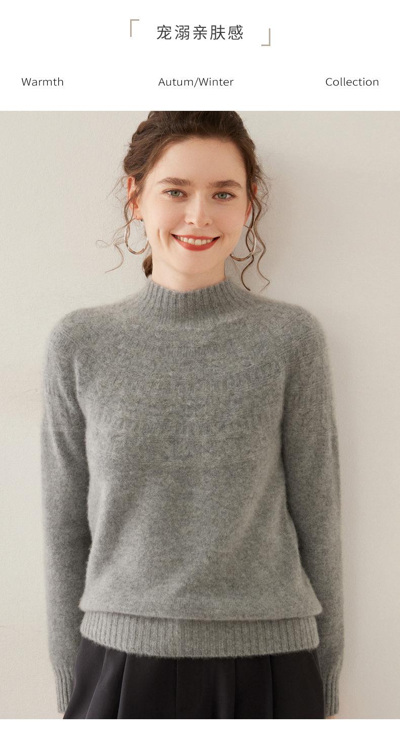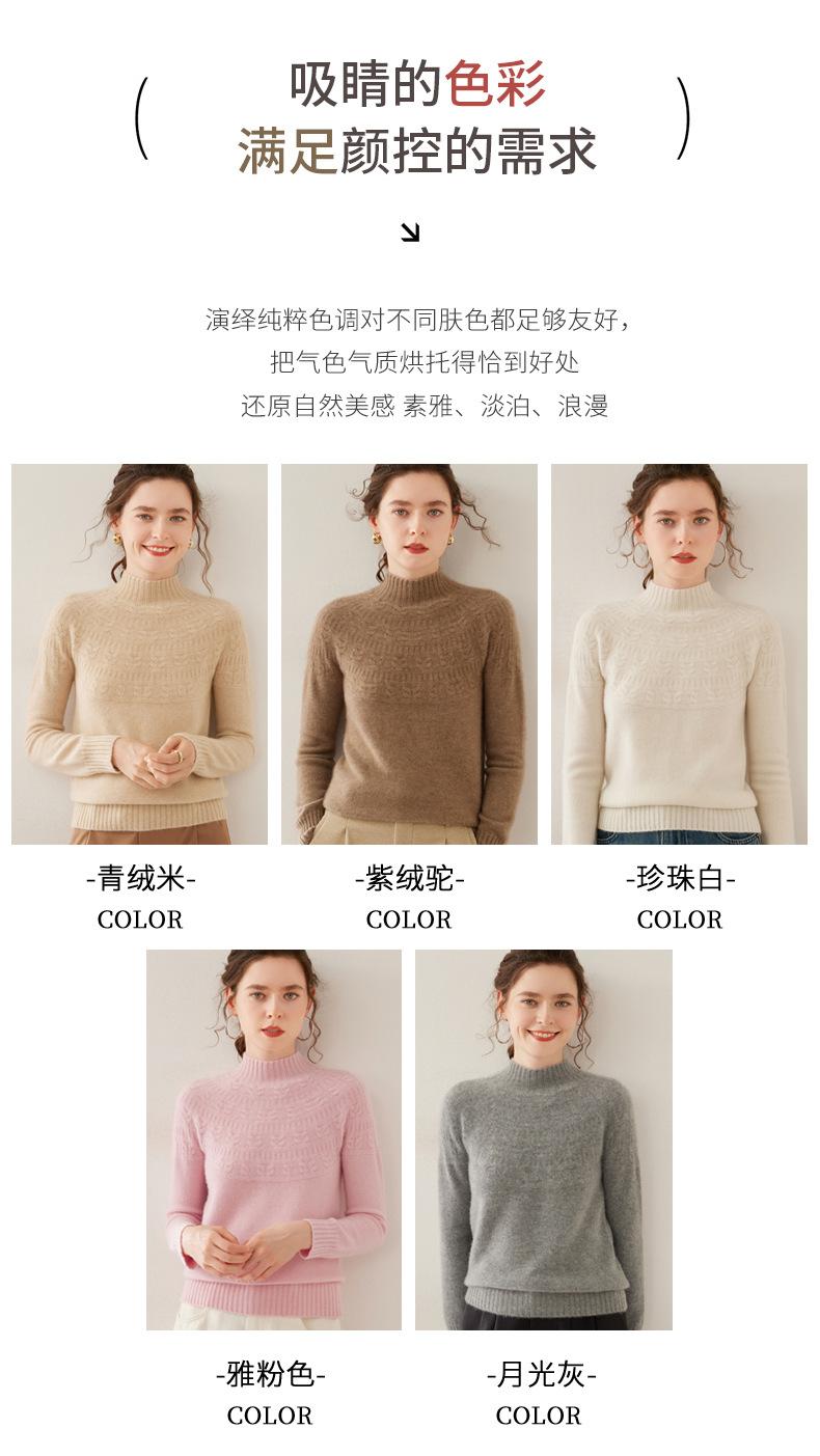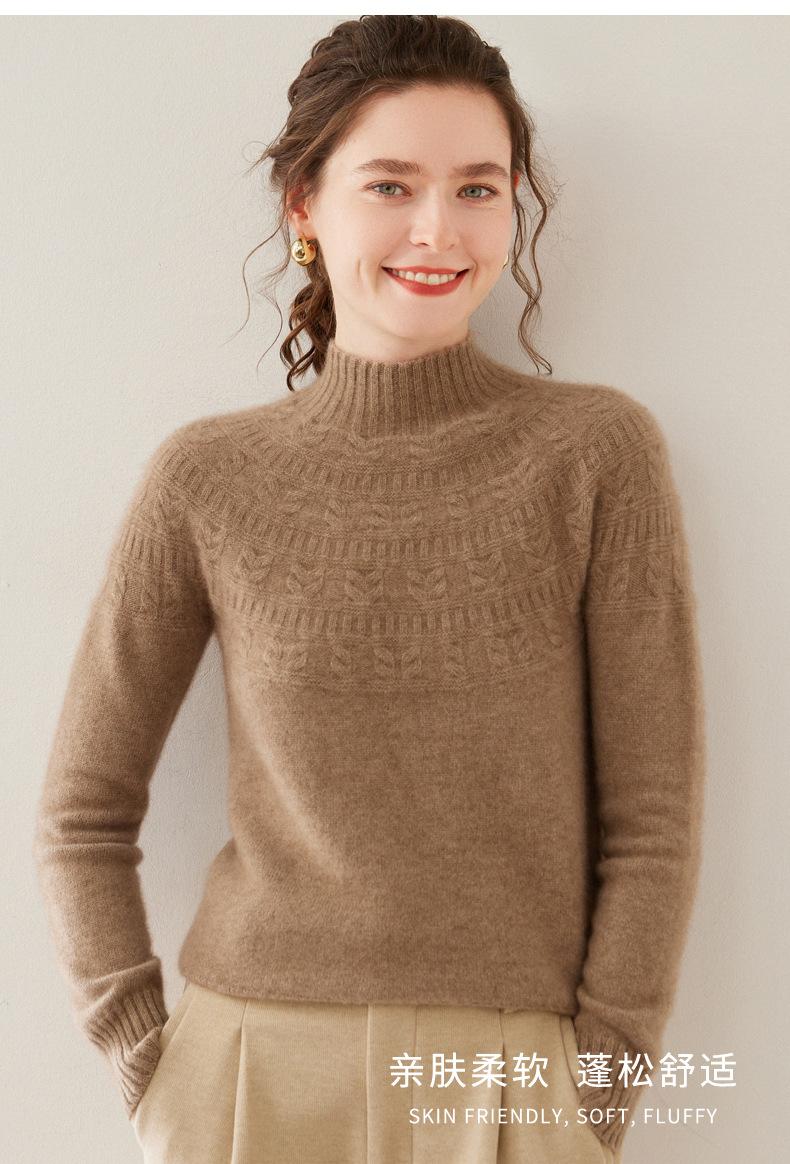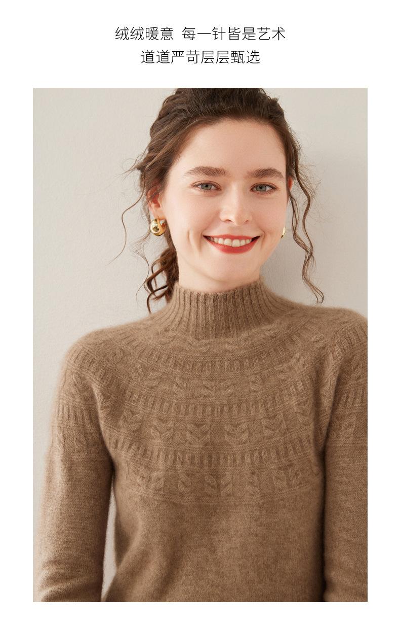 Ropa de Vanguardia Suéter de Punto de Cachemira para Mujer con Cuello Medio Alto con Flor Torcida Elegante para Viaje Casual Simple de Color Sólido Base