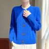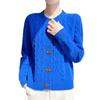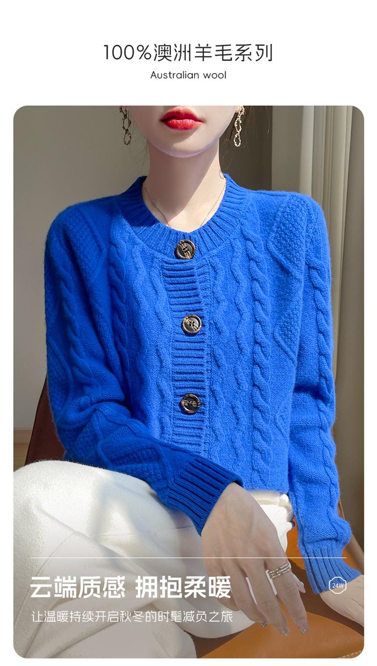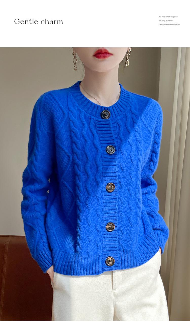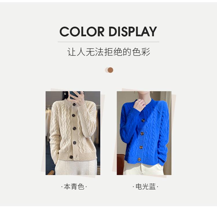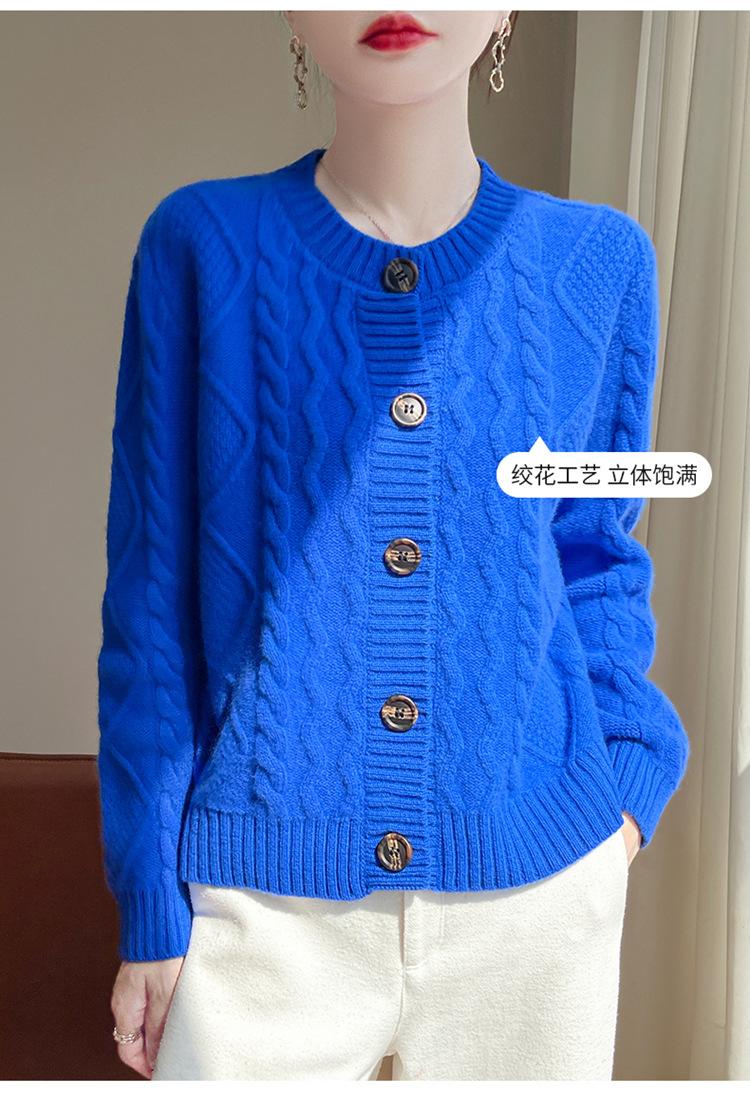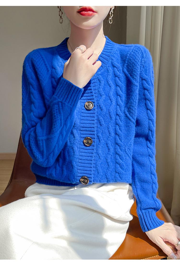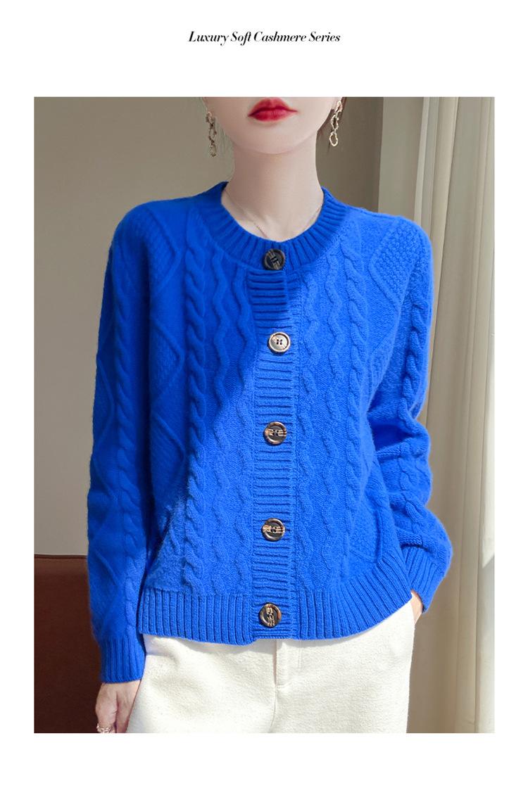 Cárdigan de lana de color liso con cuello redondo grueso para mujer, suéter de punto de lana con abrigo trenzado vintage, otoño e invierno, nuevo