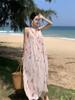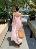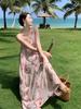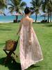 Vestido de tirantes floral suave de estilo francés para verano, para playa, vacaciones, vestido largo elegante y ajustado de estilo hada.