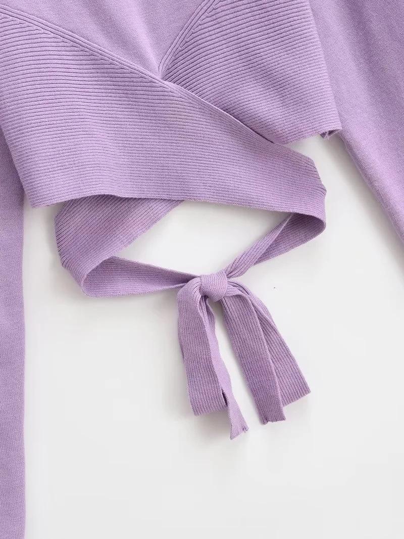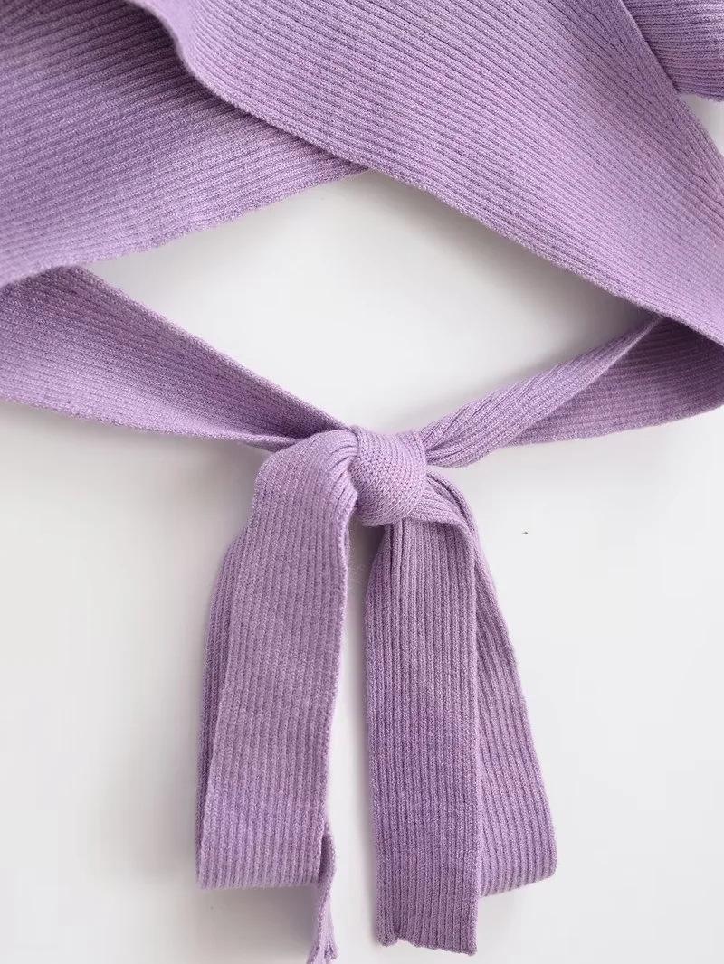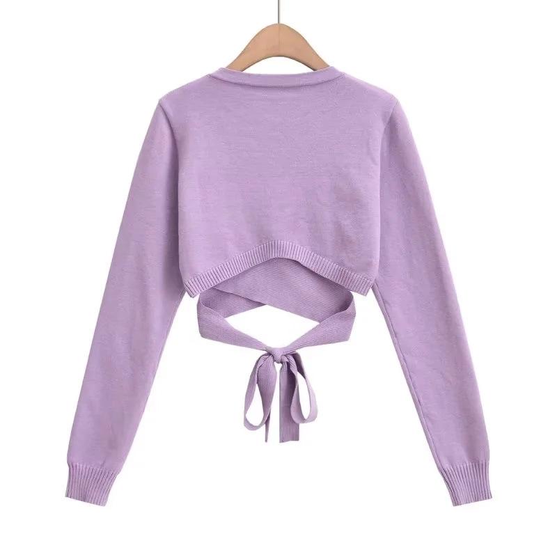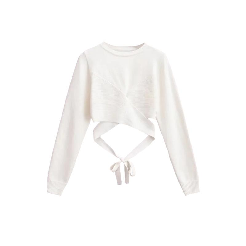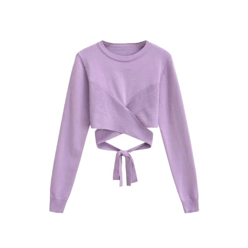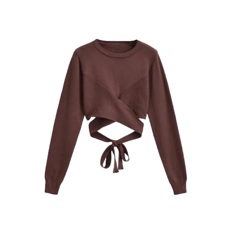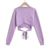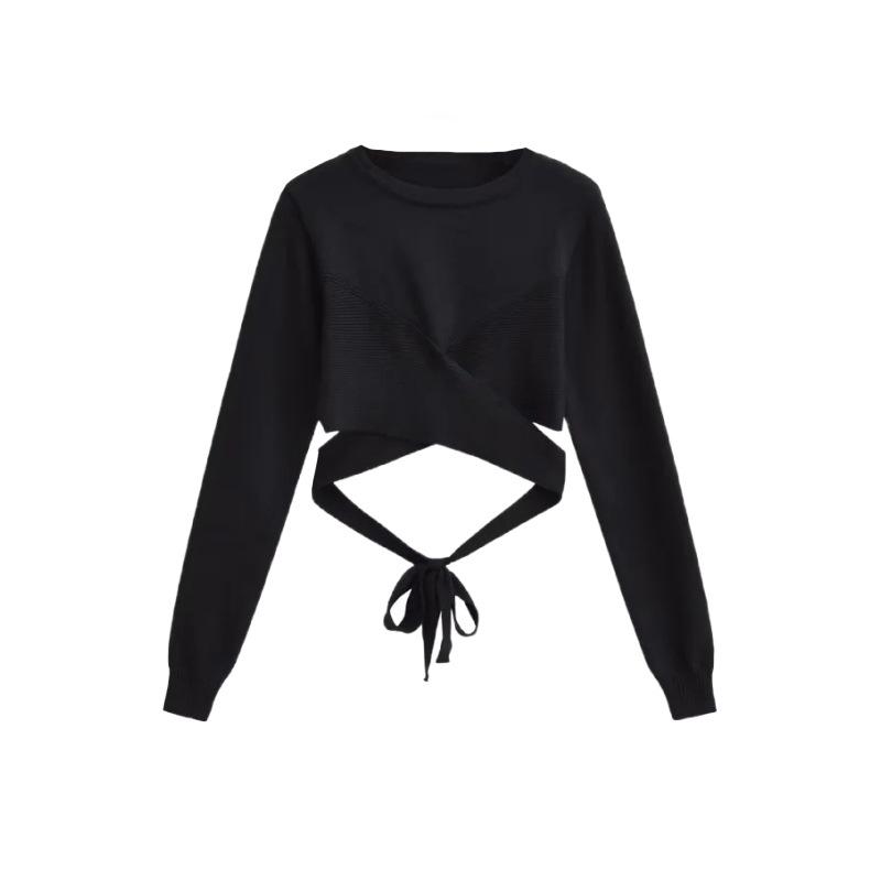 Jersey de manga larga con cuello redondo, diseño nicho europeo y americano, espalda cruzada con tirantes huecos, cintura alta, ombligo descubierto, top de punto