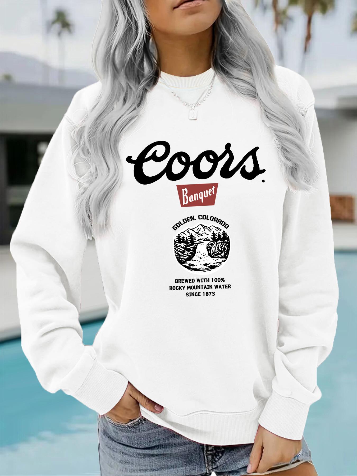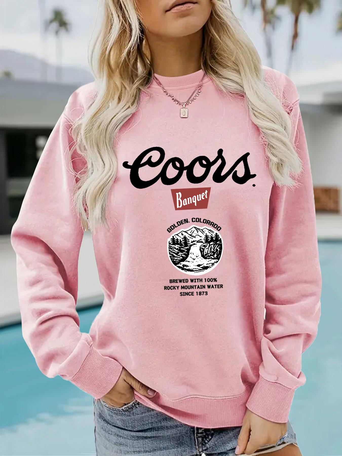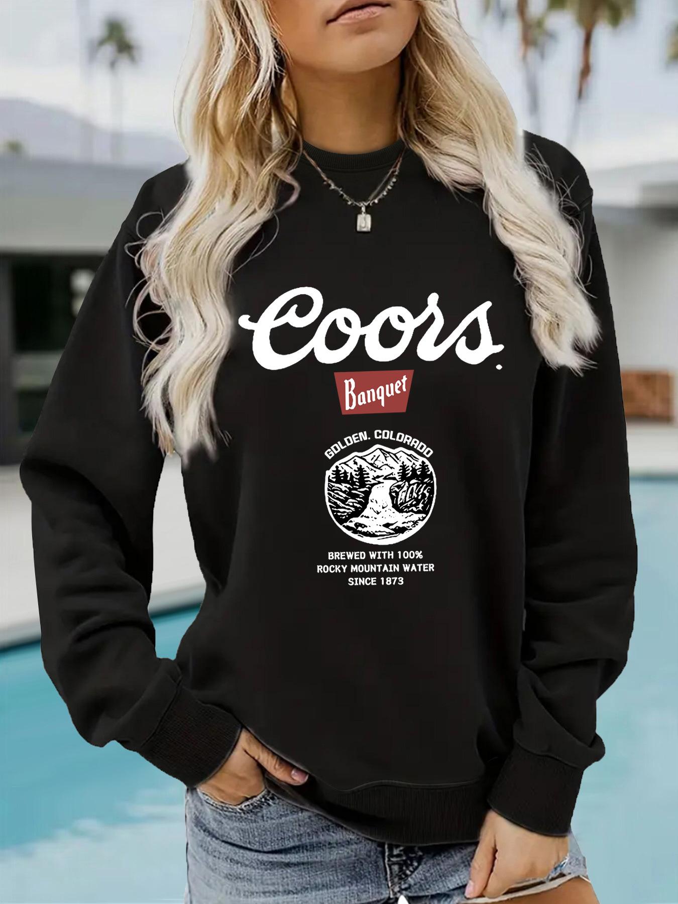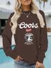 Suéter de Lote Europeo y Americano Transfronterizo de Otoño e Invierno para Mujer Casual de Manga Larga Cuello Redondo Estampado Coors Banquet