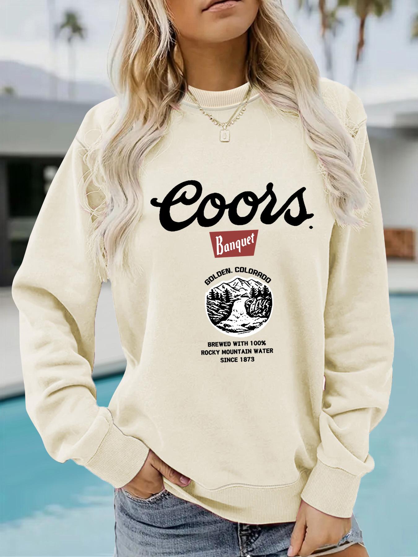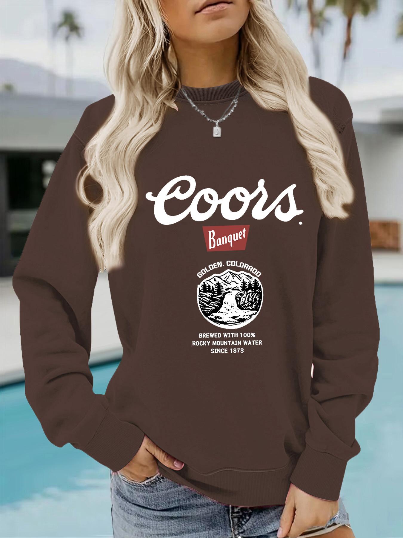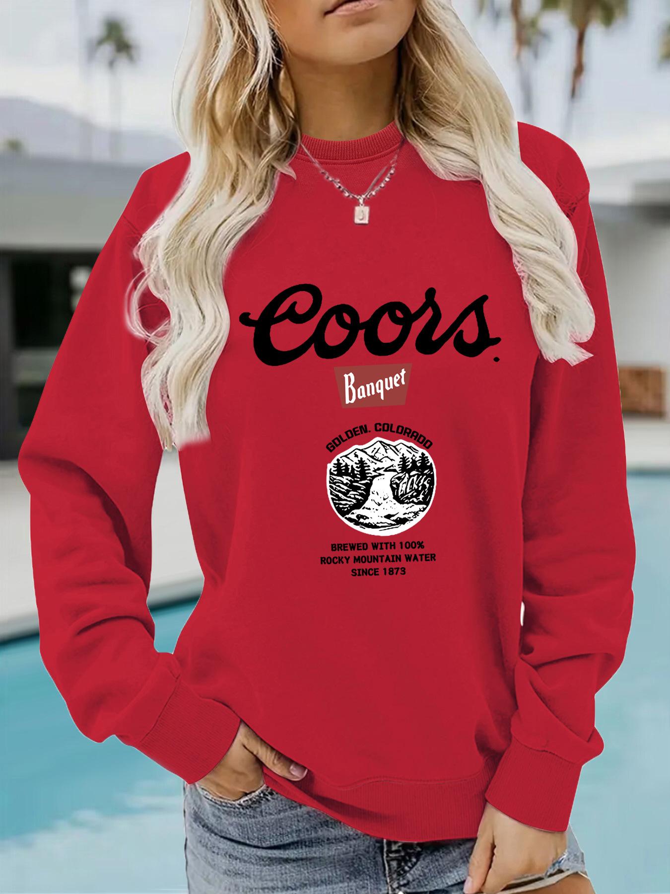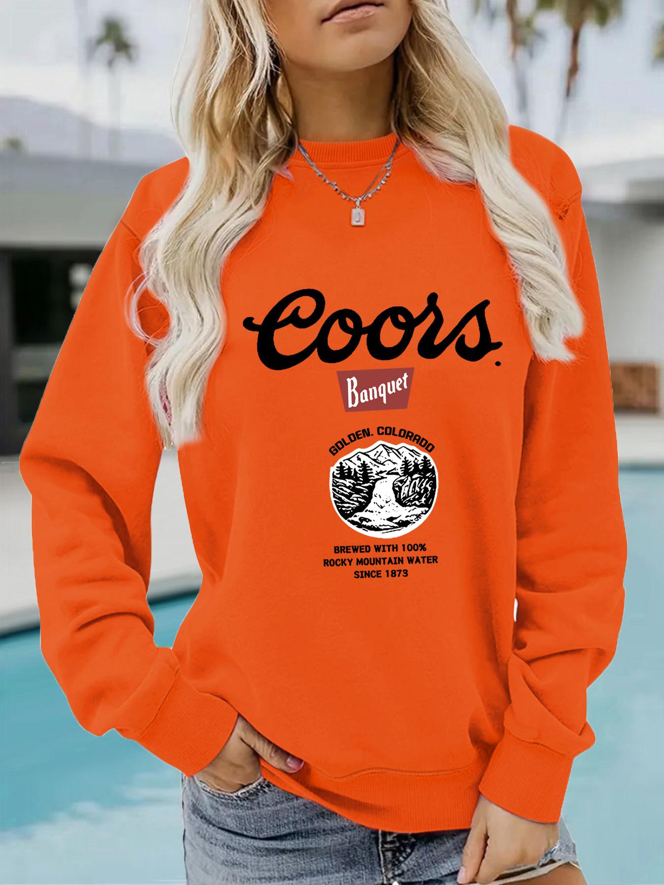 Suéter de Lote Europeo y Americano Transfronterizo de Otoño e Invierno para Mujer Casual de Manga Larga Cuello Redondo Estampado Coors Banquet
